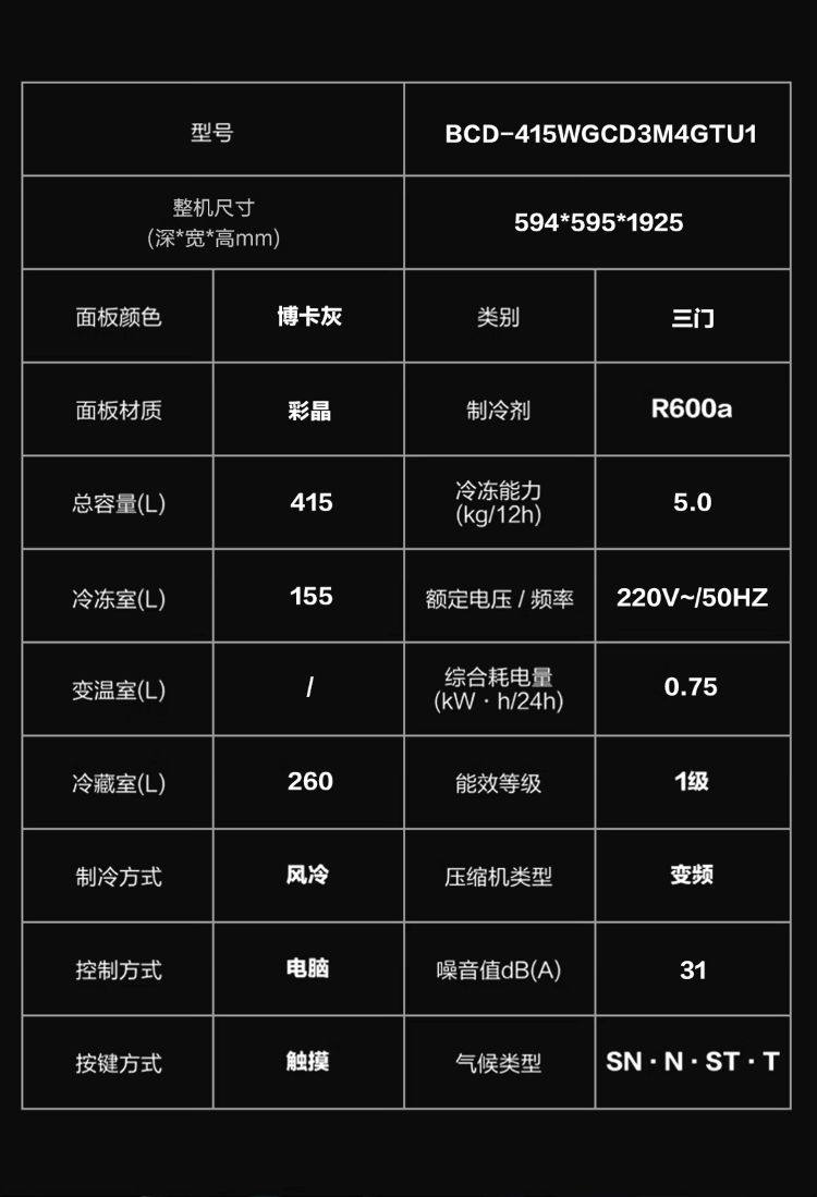 Casarte 415 Zhijing double combination three-door refrigerator BCD-415WGCD3M4/GTU1/WTU1 frost-free