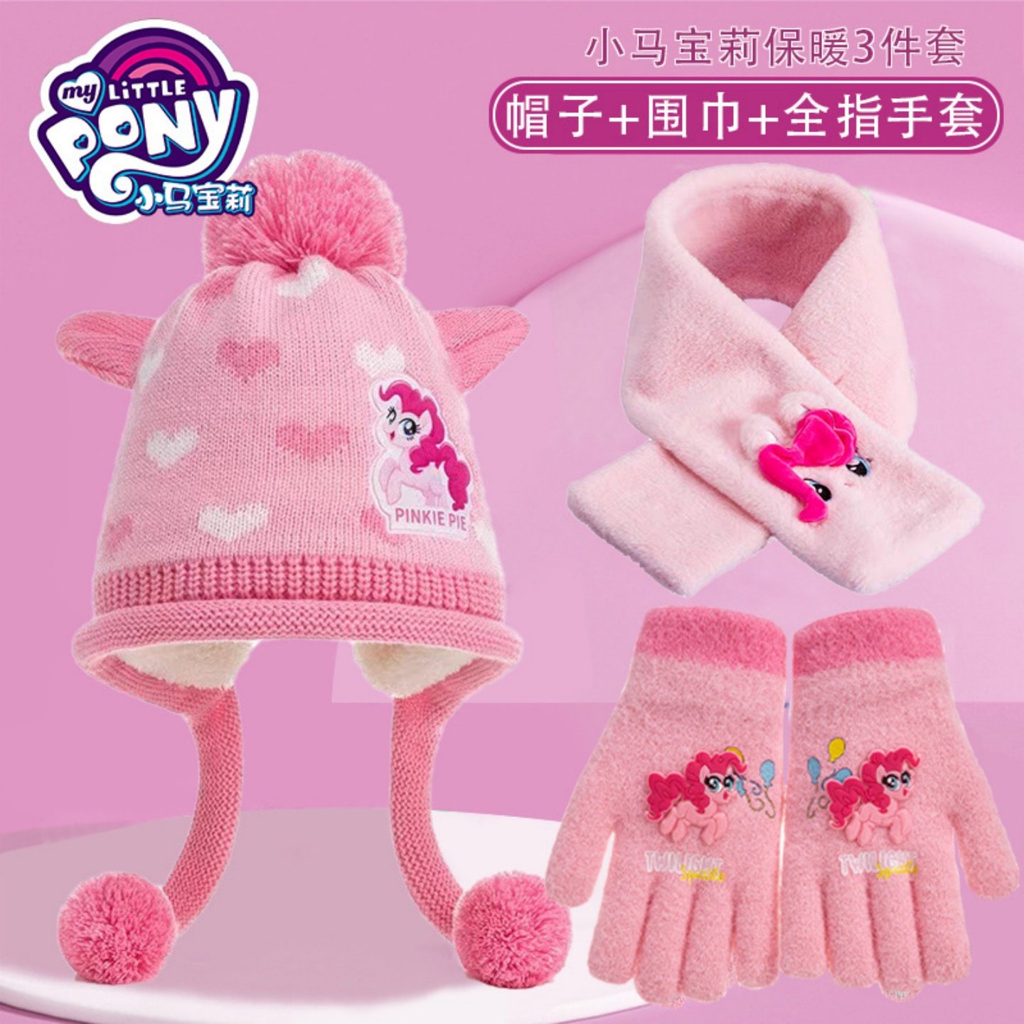 My Little Pony children's hat girl warm protection against cold autumn and winter baby hat scarf gloves three-piece set