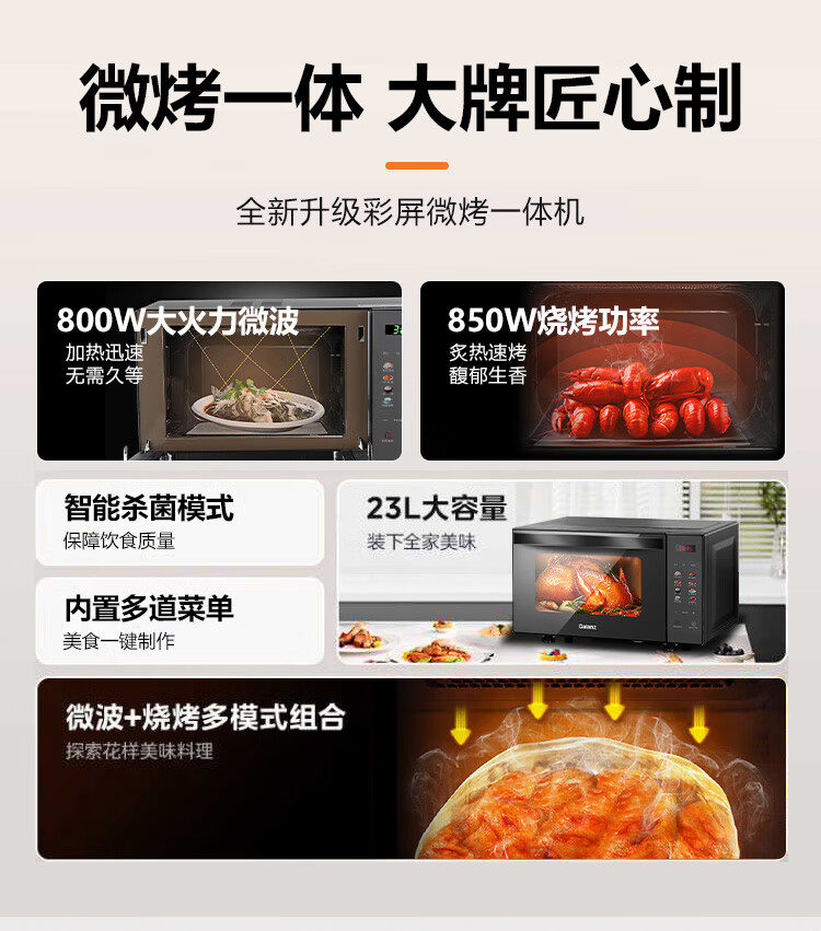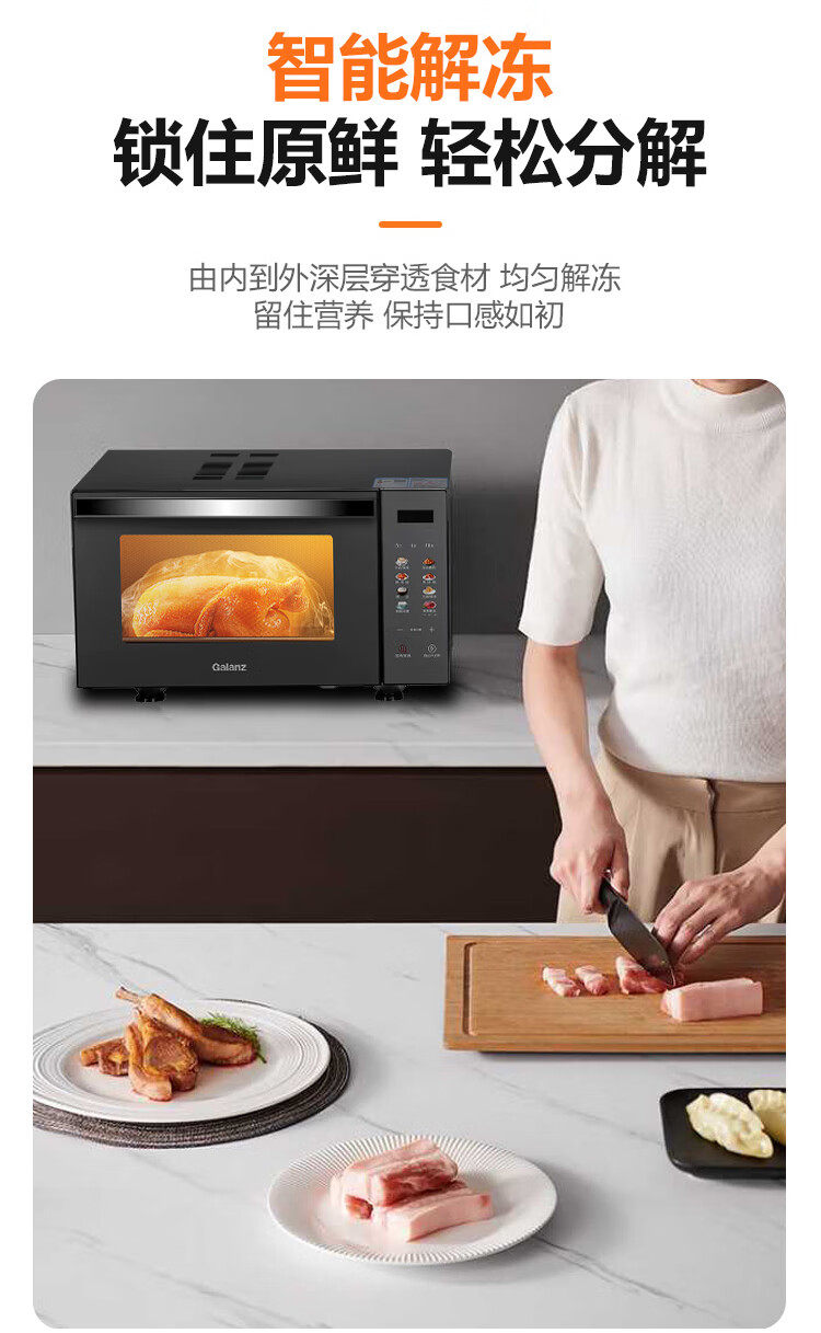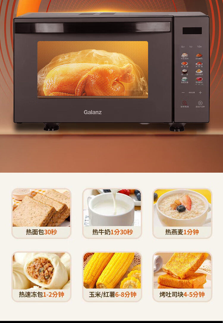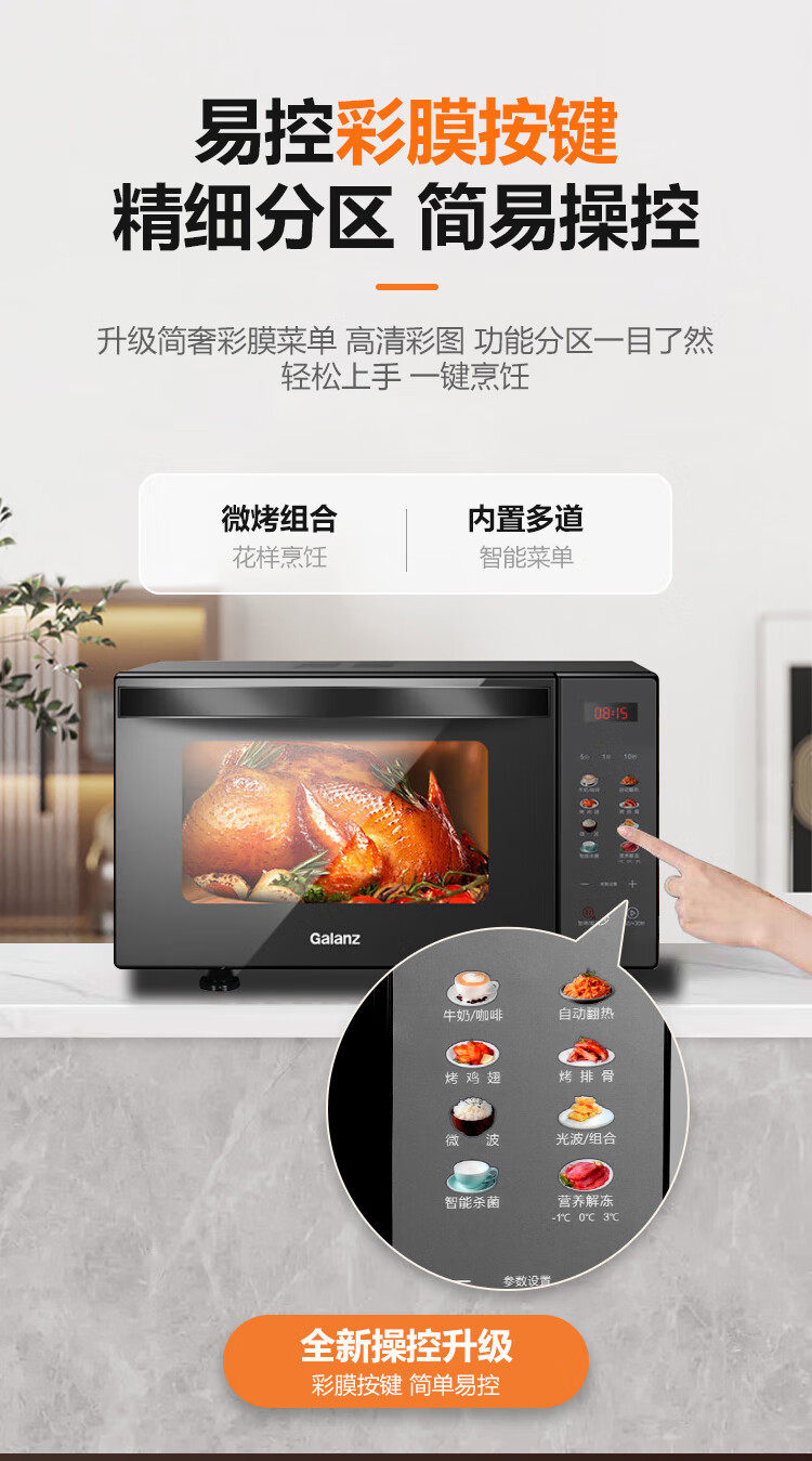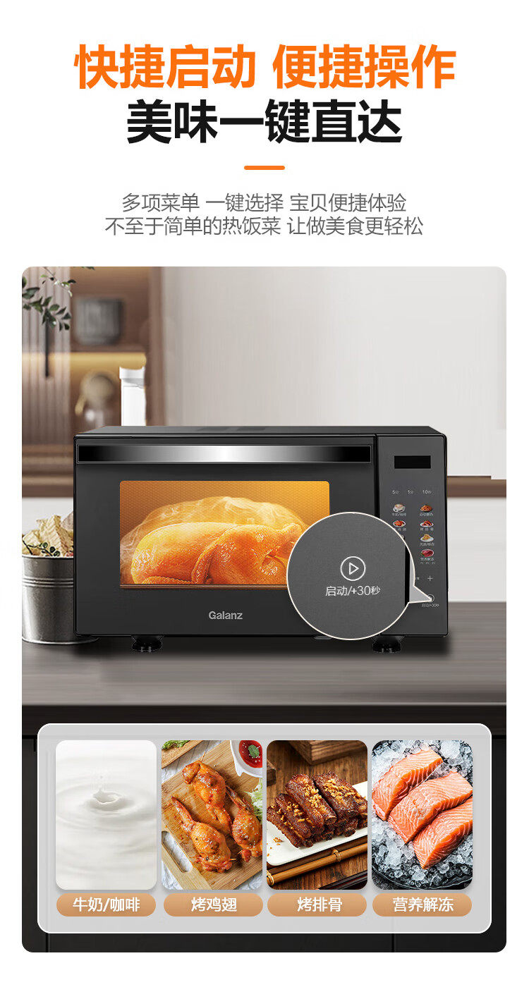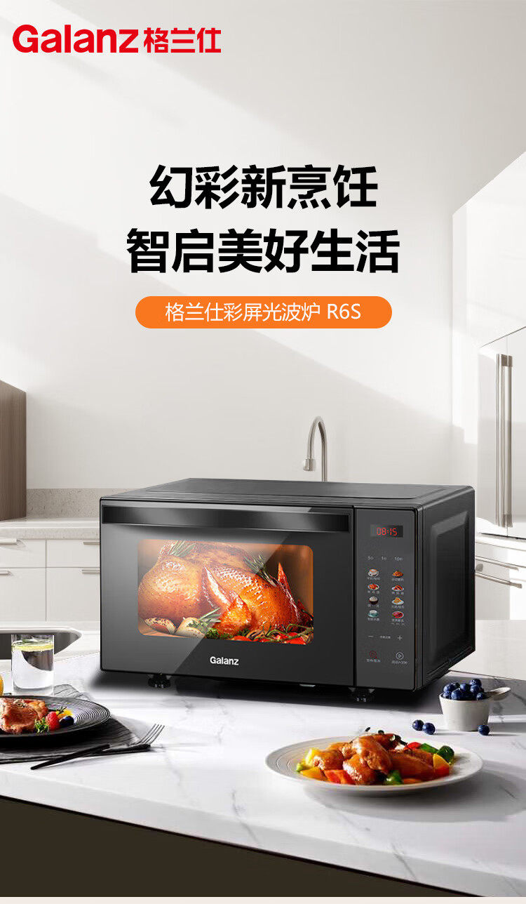 Galanz Microwave Oven, Micro-Steaming and Baking All-In-One Machine for Home Use, 23L Flat-Panel Light Wave Oven, Smart Color Screen Menu R6S