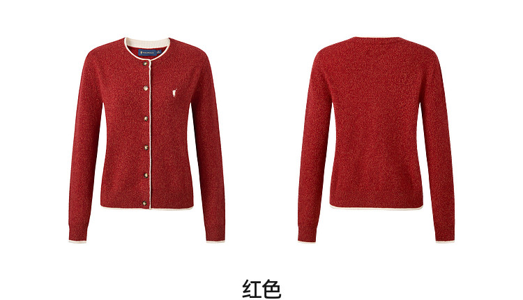 [Pure Wool Sweater] Polowalk Red Knitted Cardigan for Women 2025 Winter Style Paul Elegant Casual Sweater for Women
