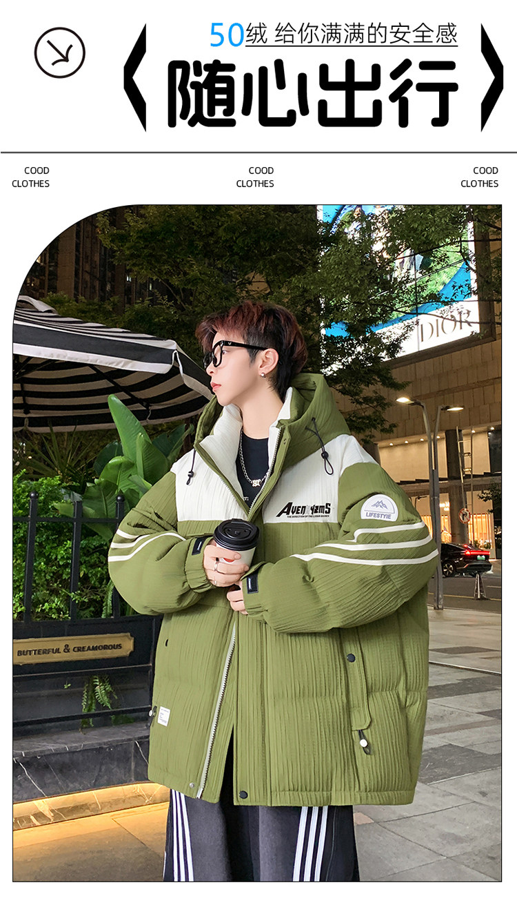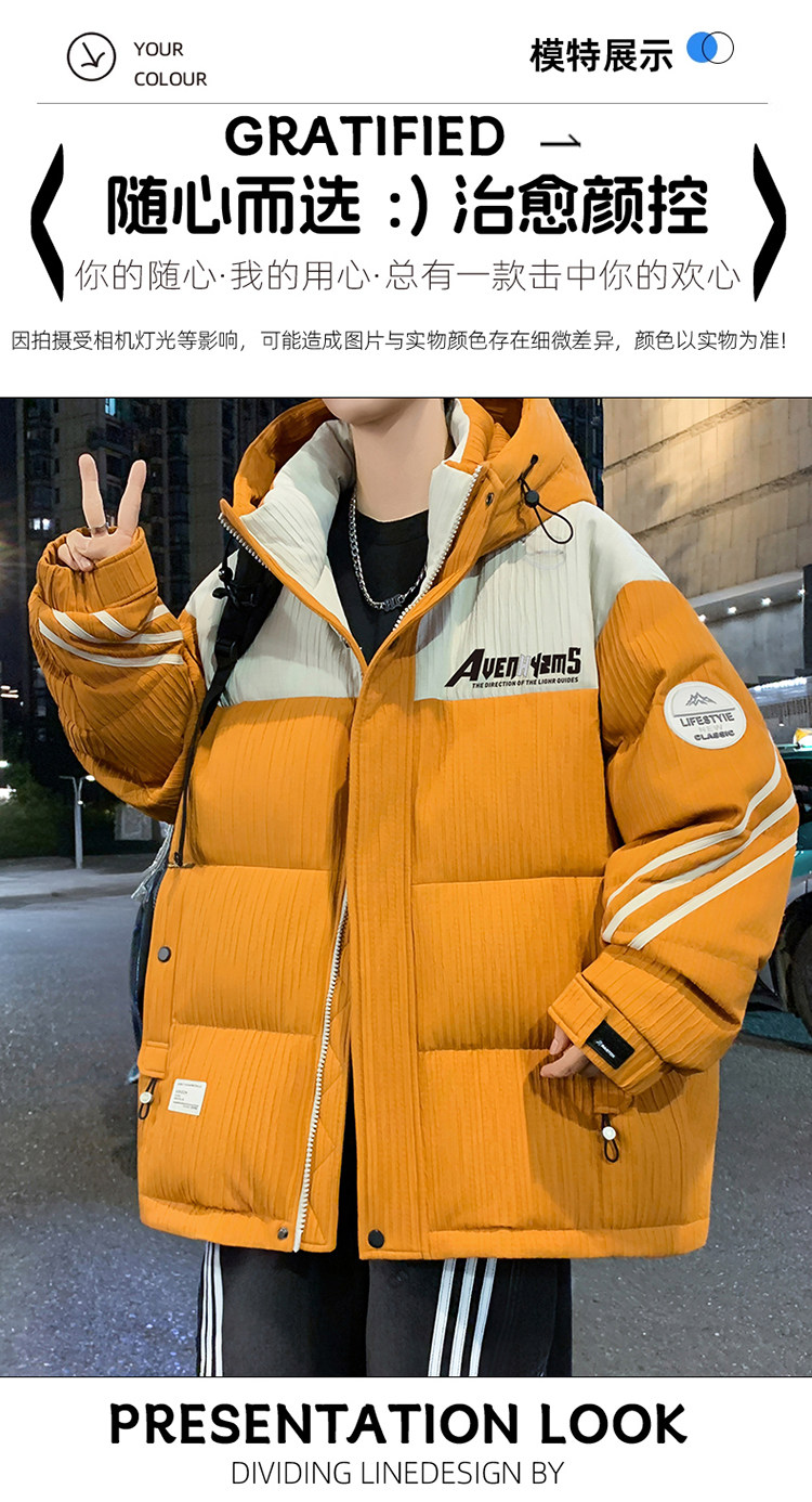 Teenagers' new down jacket men's winter thickened warm jacket junior high school students striped older children's handsome cold-proof clothing