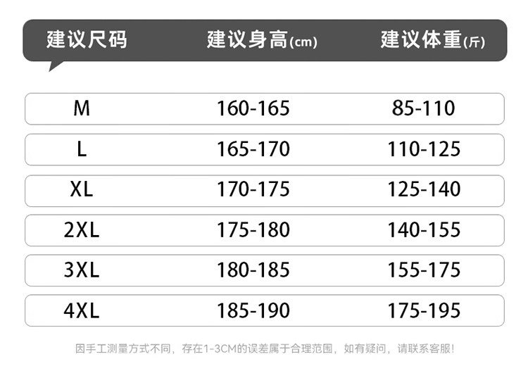 China (cm) 165 / 88-90 170 / 96-98 175 / 108-110 180 / 118-122 185 / 126-130