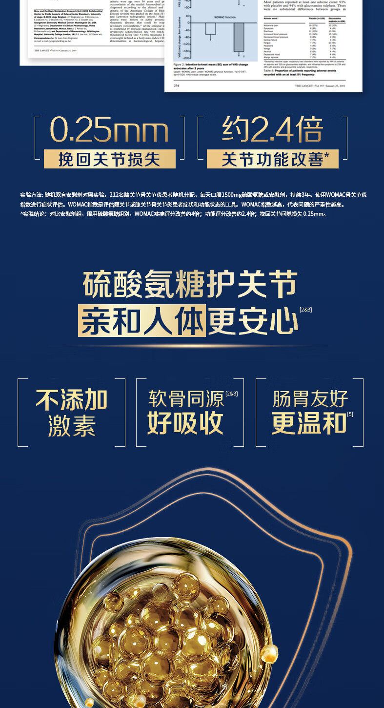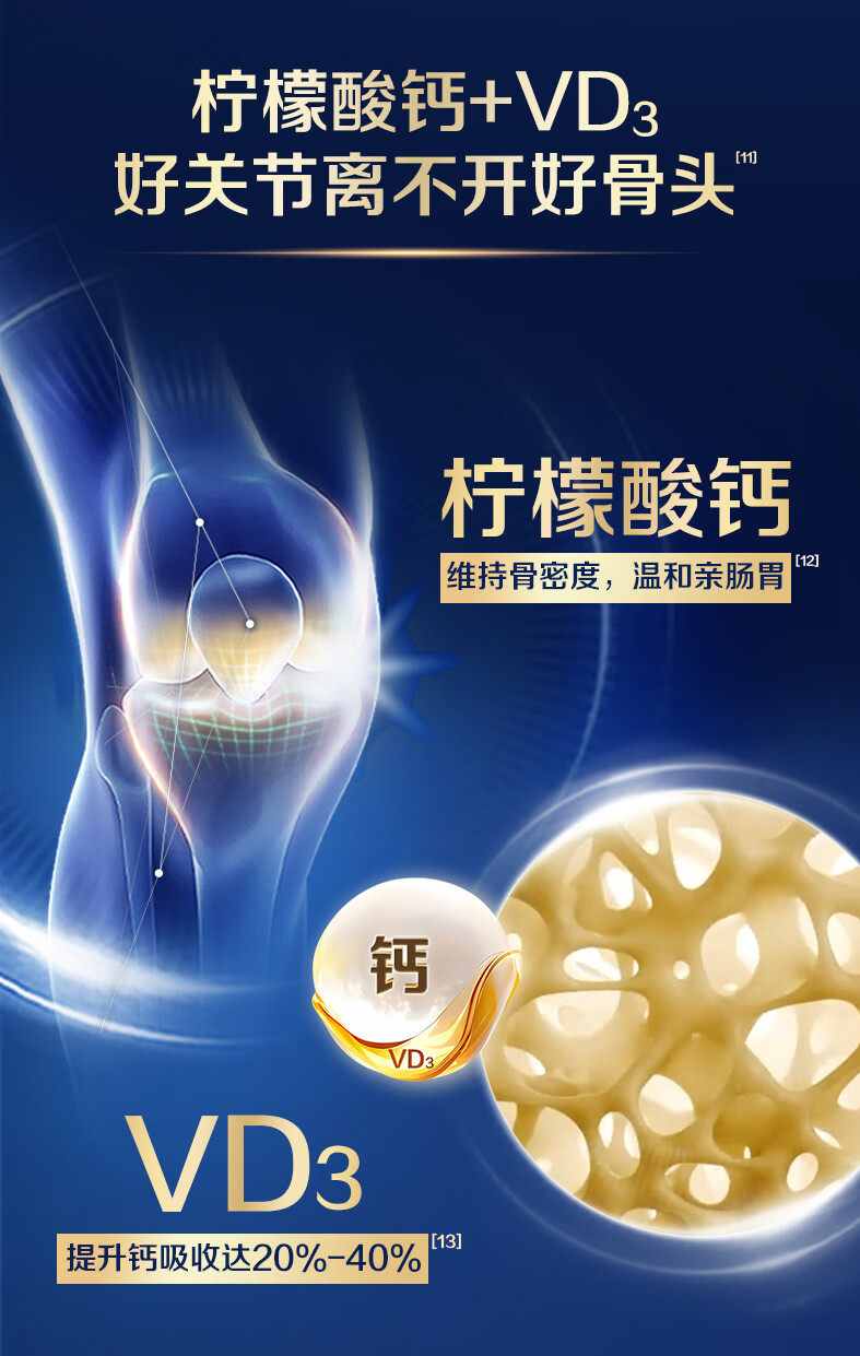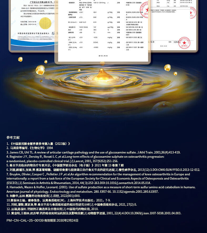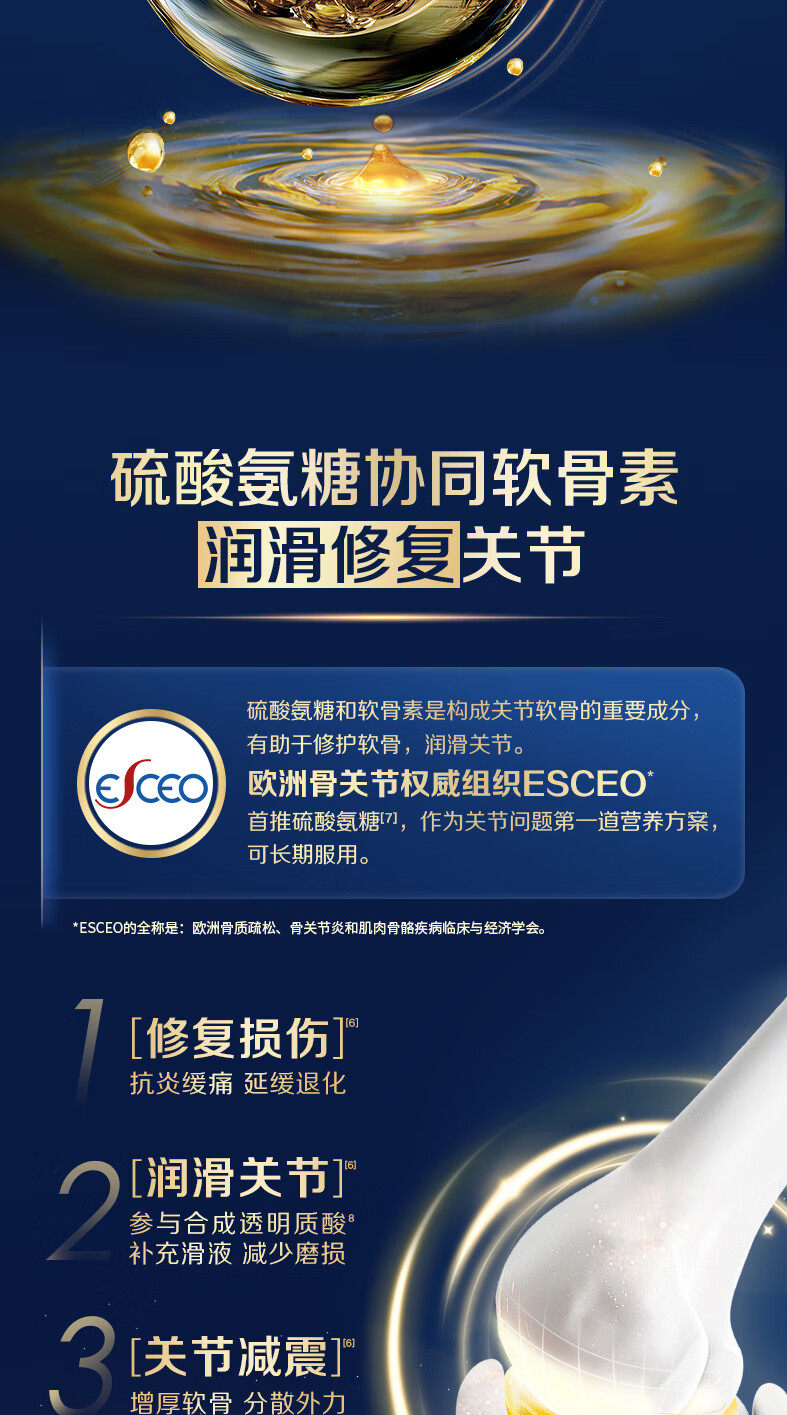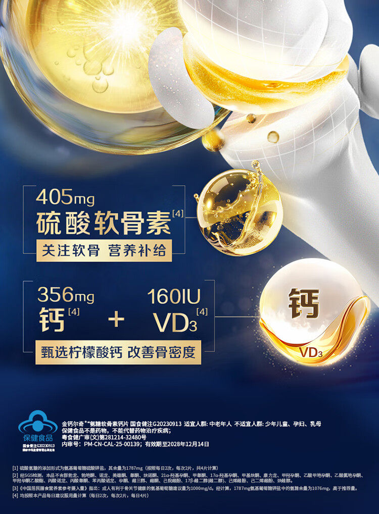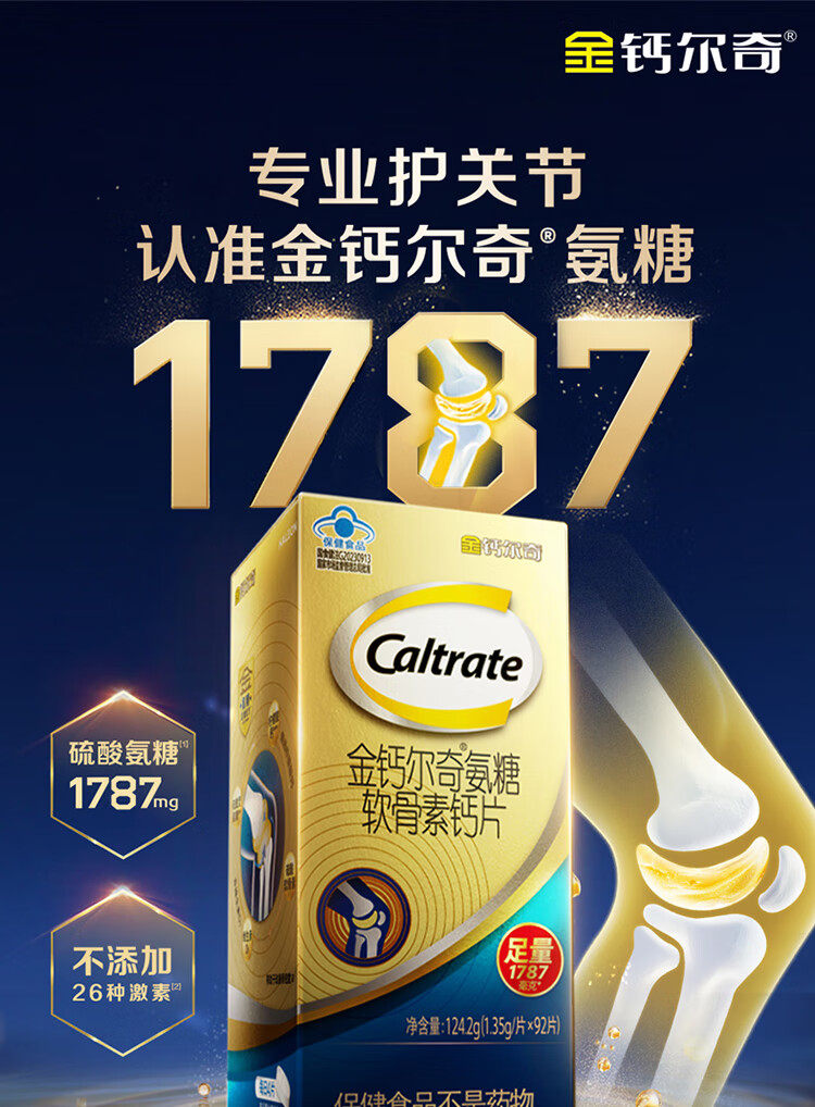 Golden Calcium 1787 Glucosamine Chondroitin Calcium Tablets Vitamin D Calcium Citrate Gift for Middle-Aged and Elderly People to Supplement Calcium