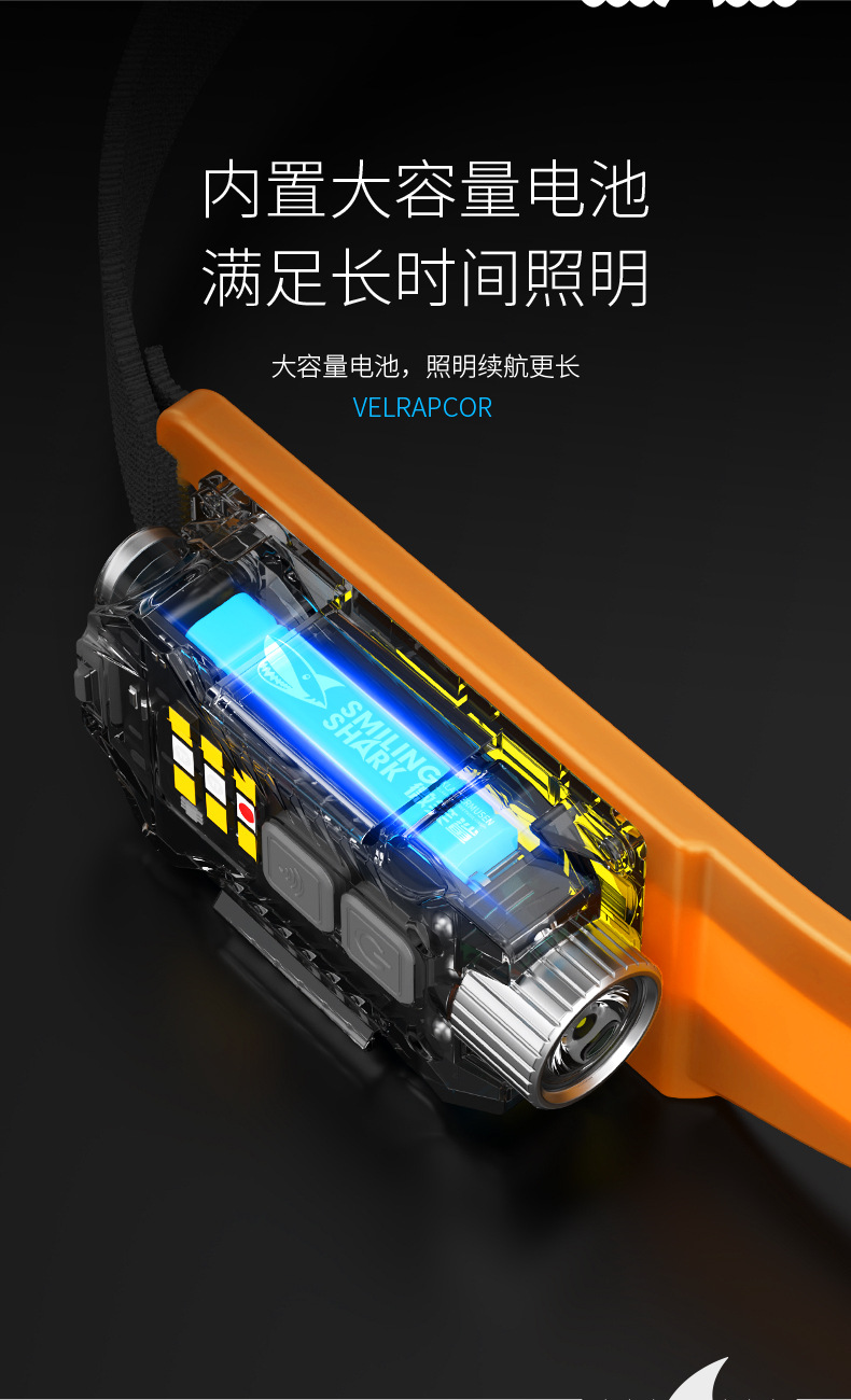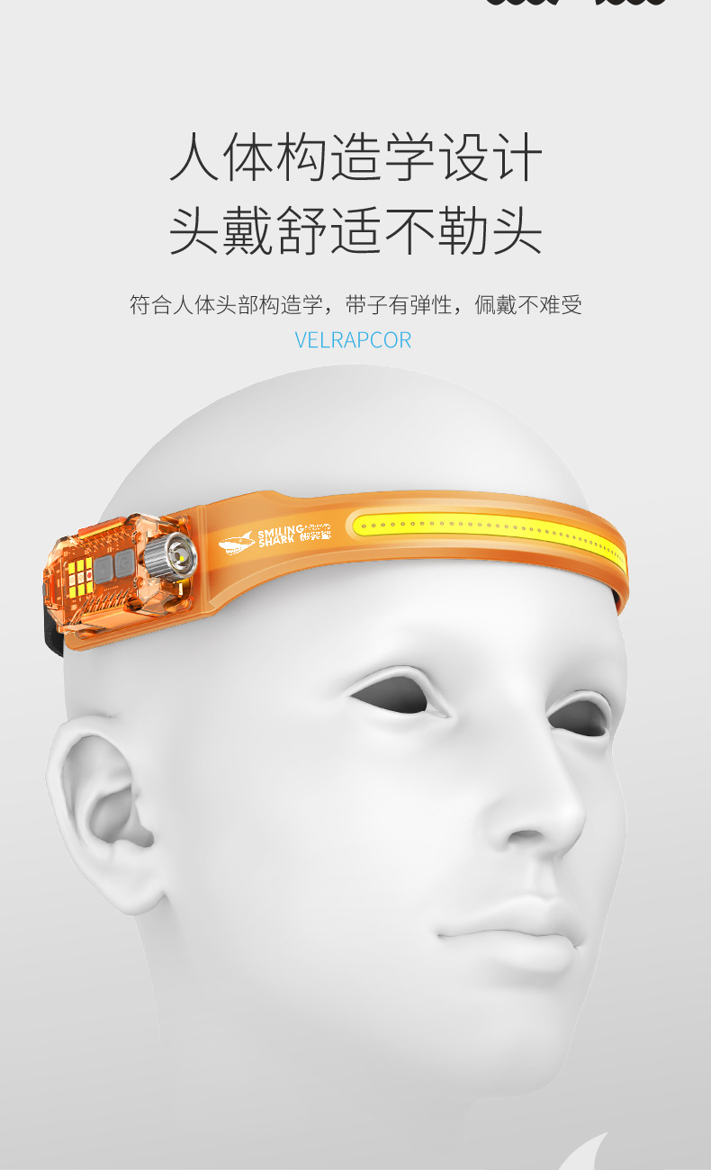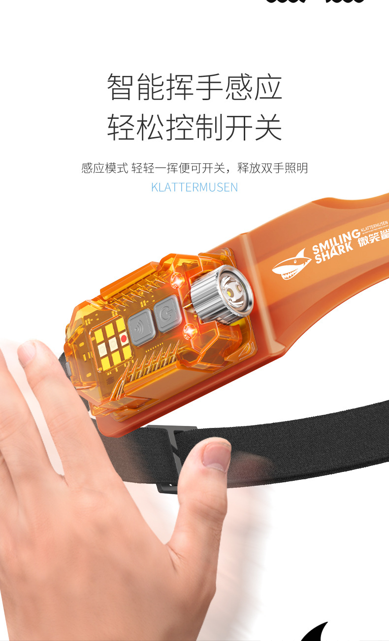 Smiling Shark Jupan dual-light sensor headlight outdoor night fishing bait lighting strong light long-range emergency detachable side light