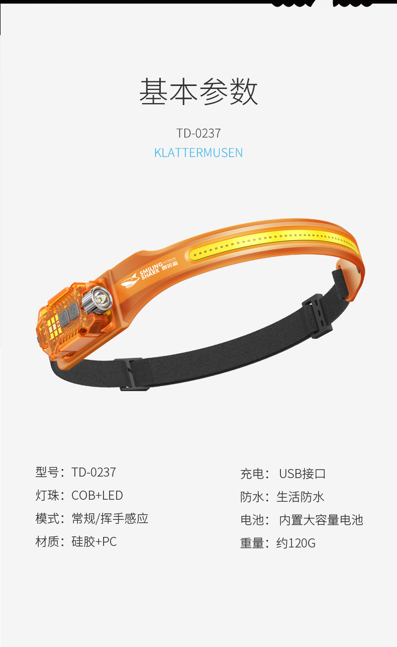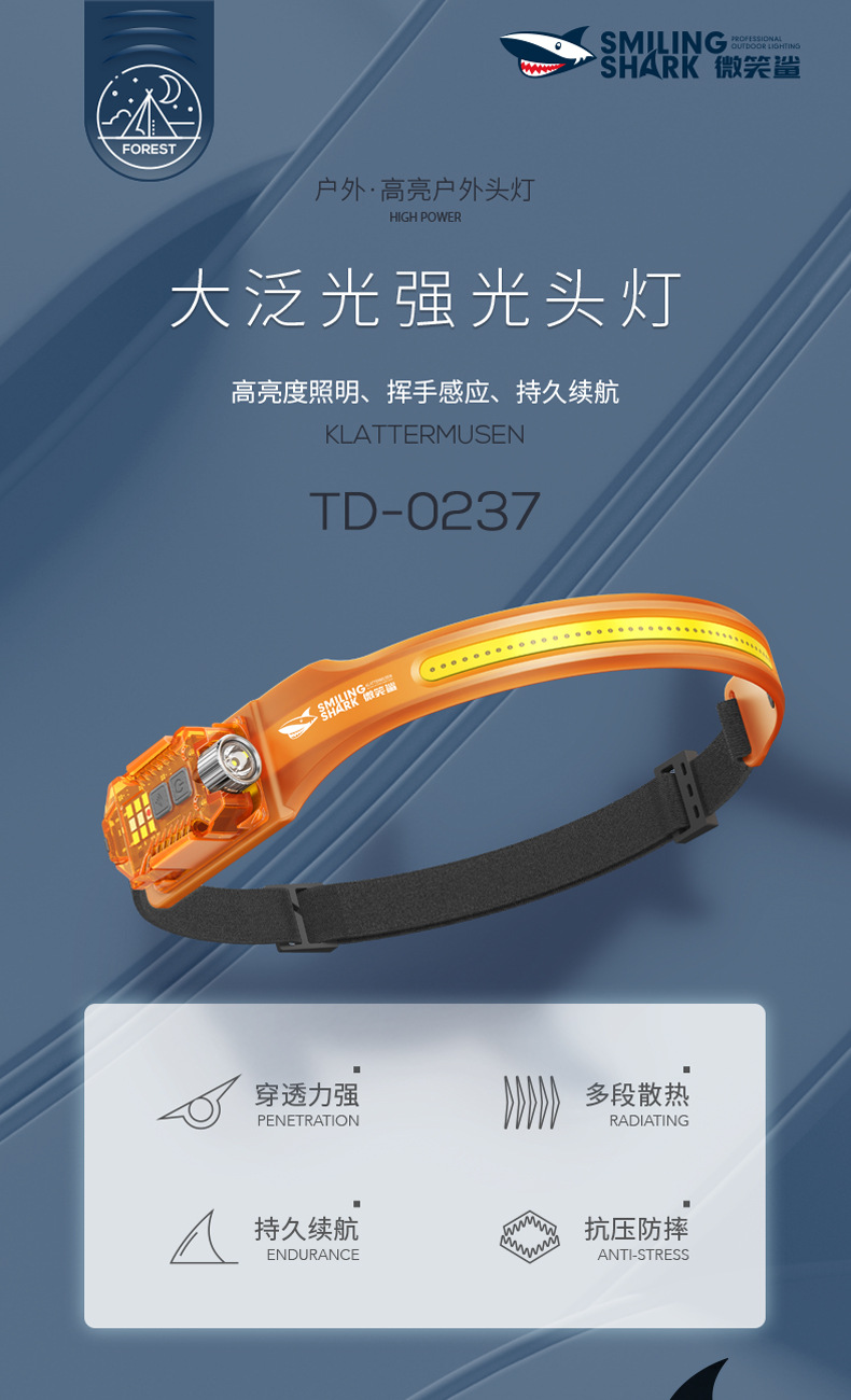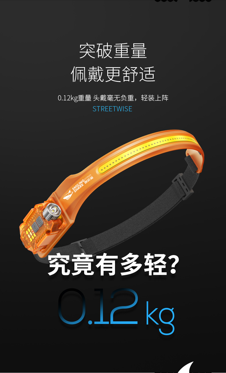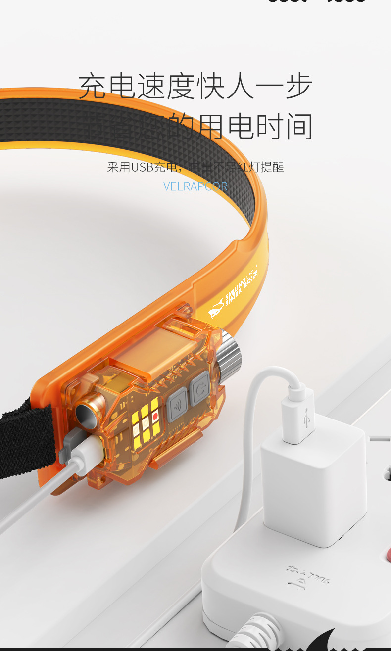 Smiling Shark Jupan dual-light sensor headlight outdoor night fishing bait lighting strong light long-range emergency detachable side light