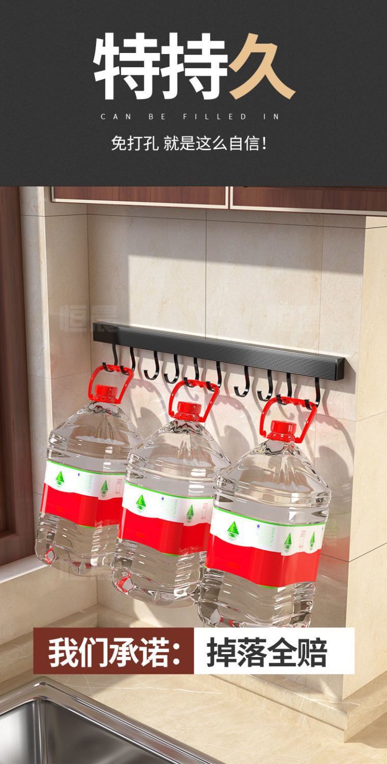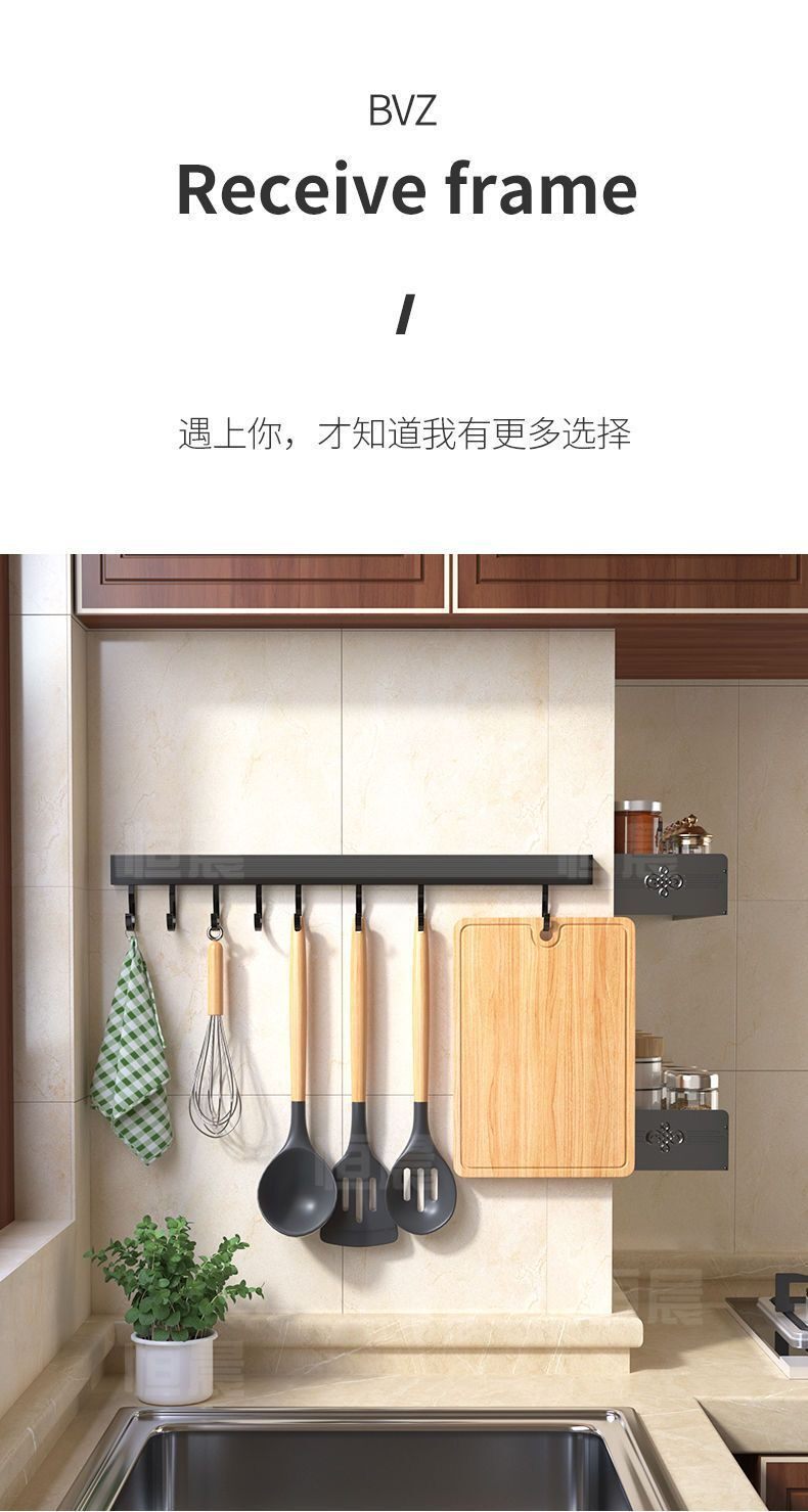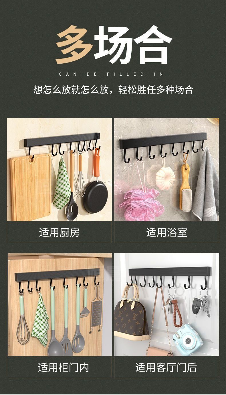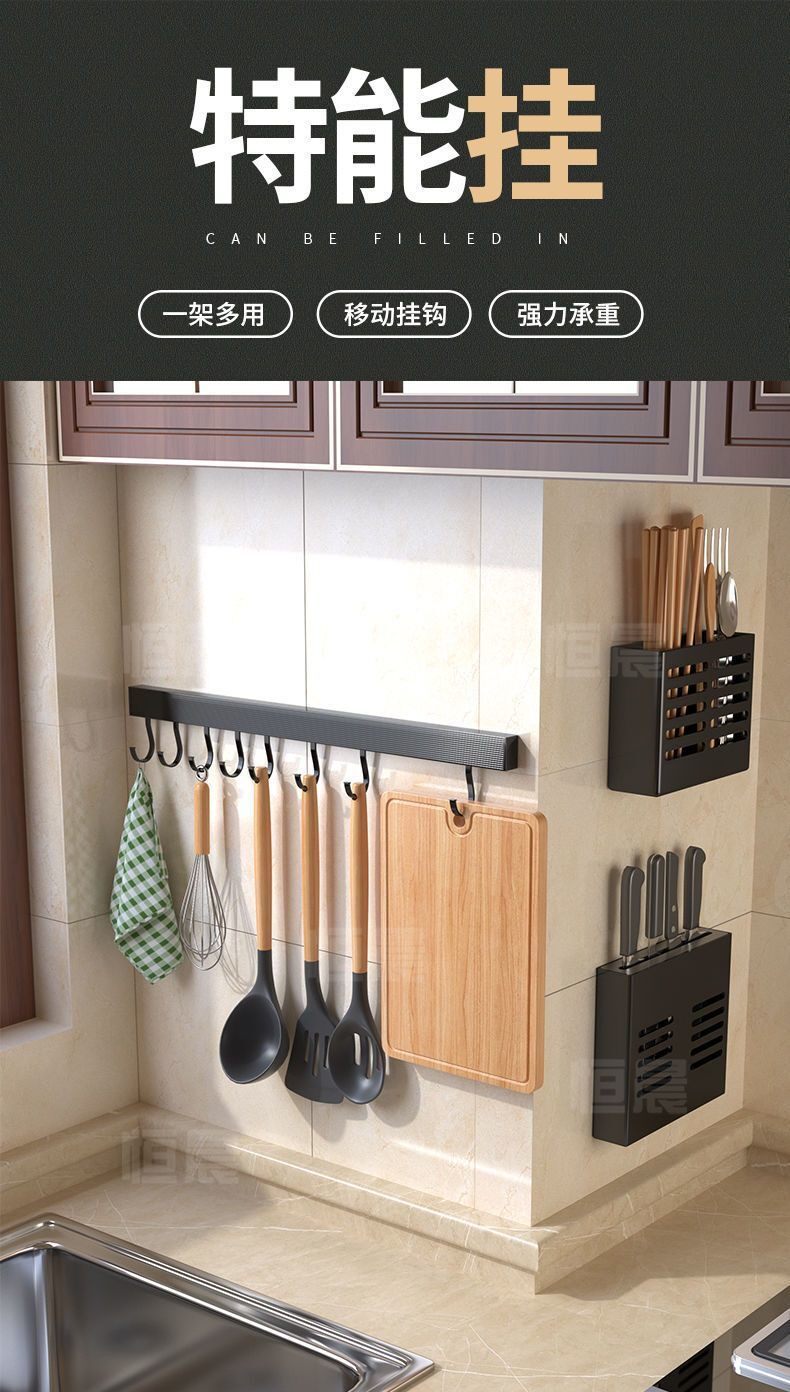 New Kitchen Hook Rack Wall-Mounted Space Aluminum Utensil Holder for Hanging Spoons and Spatulas, No-Drill Storage Rack