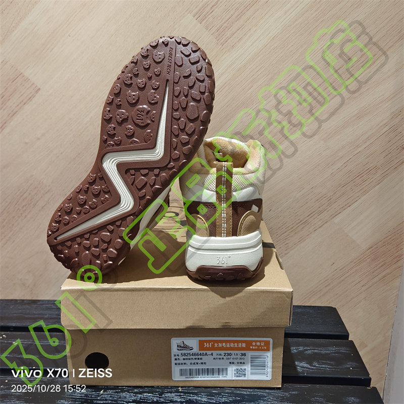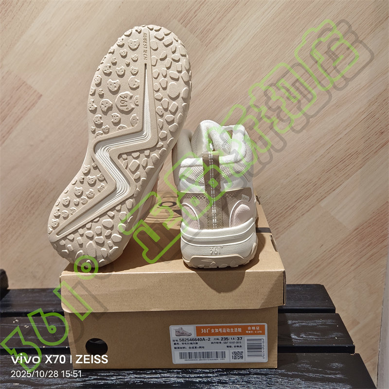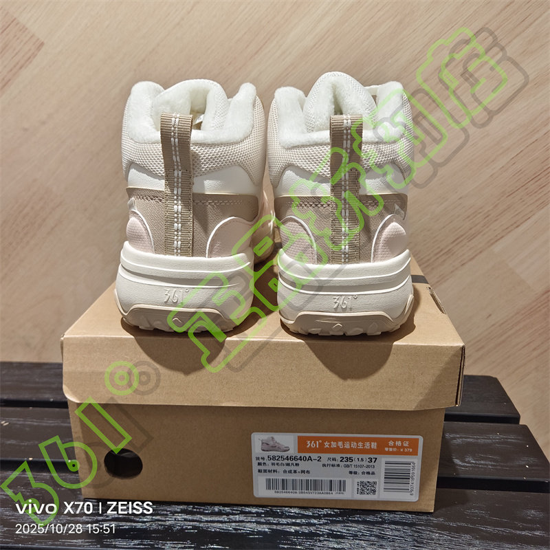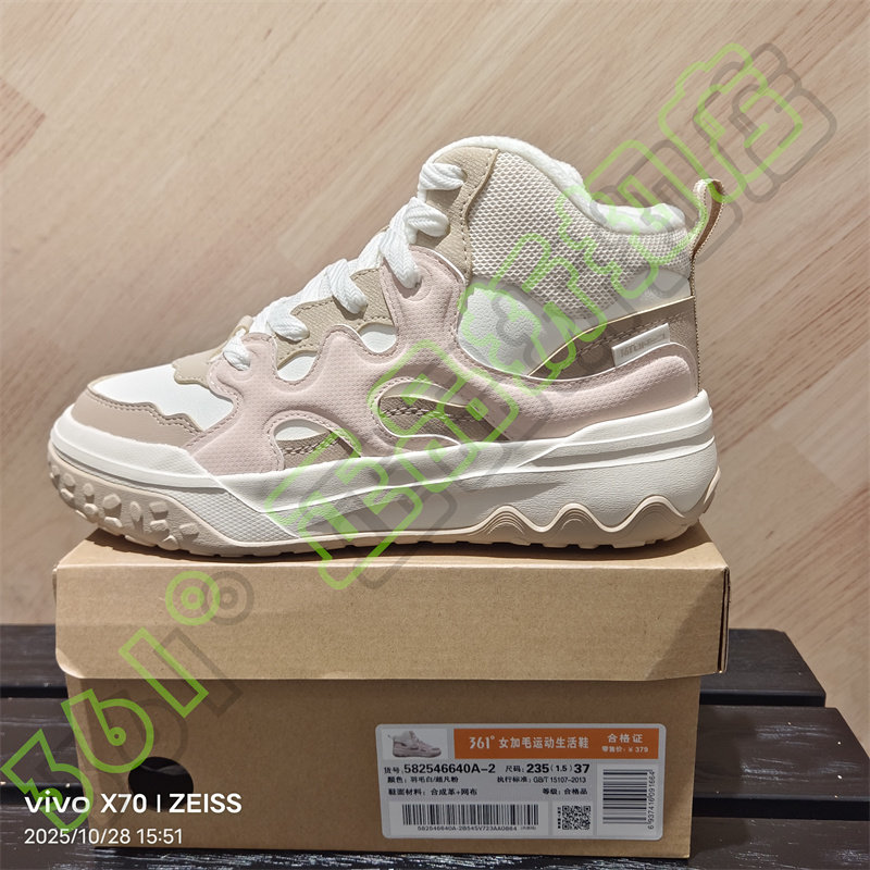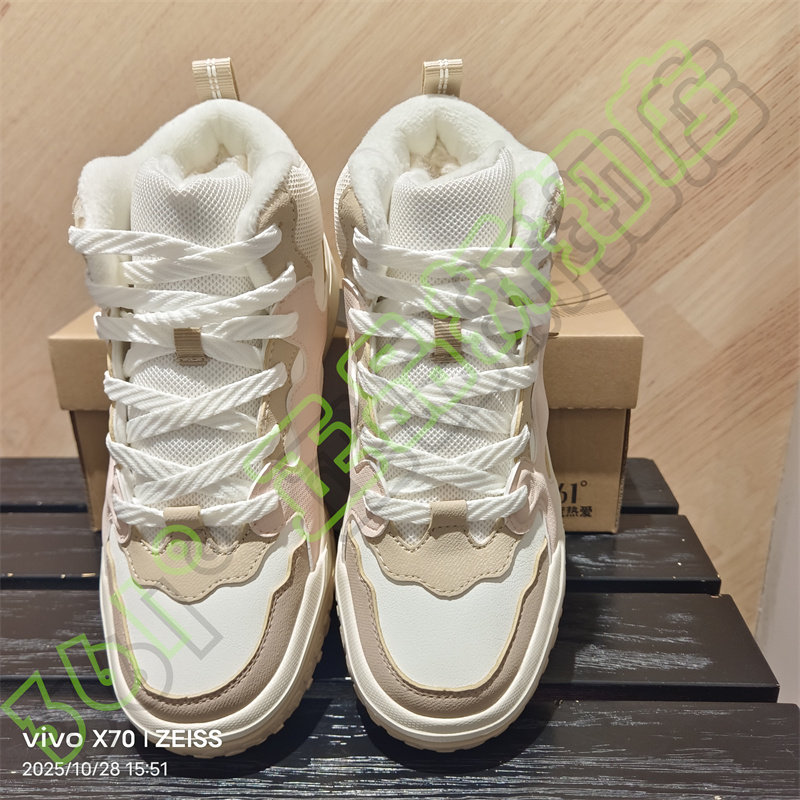 361 Degrees Women's New 2025 Winter Leather Casual Shoes with Fur Lining, Non-Slip Sports Shoes 58Z546640A