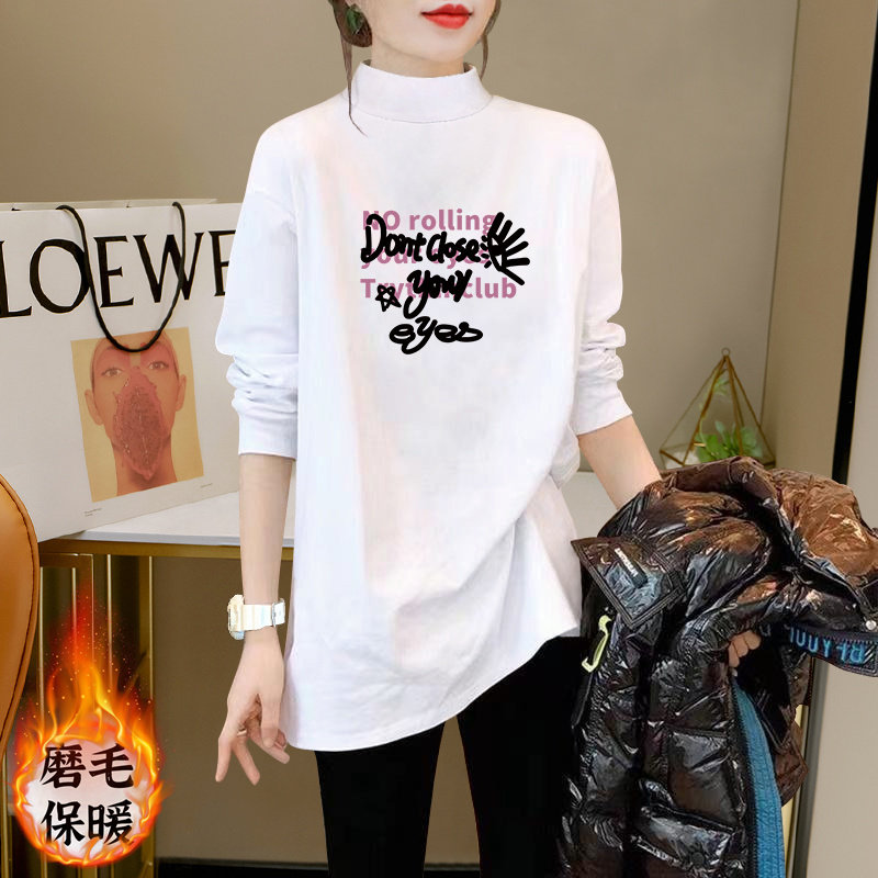 Half-High Collar Thickened Mid-Length Brushed Thermal Base Shirt for Women, Stylish Loose Long-Sleeve T-Shirt Top for Both Inner and Outer Wear