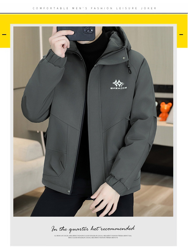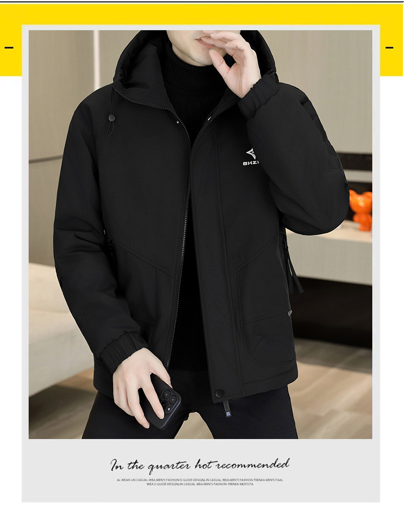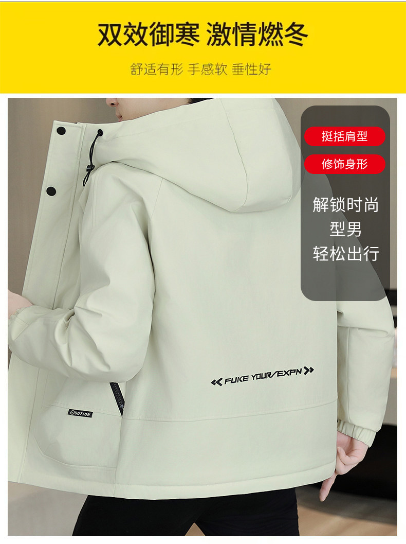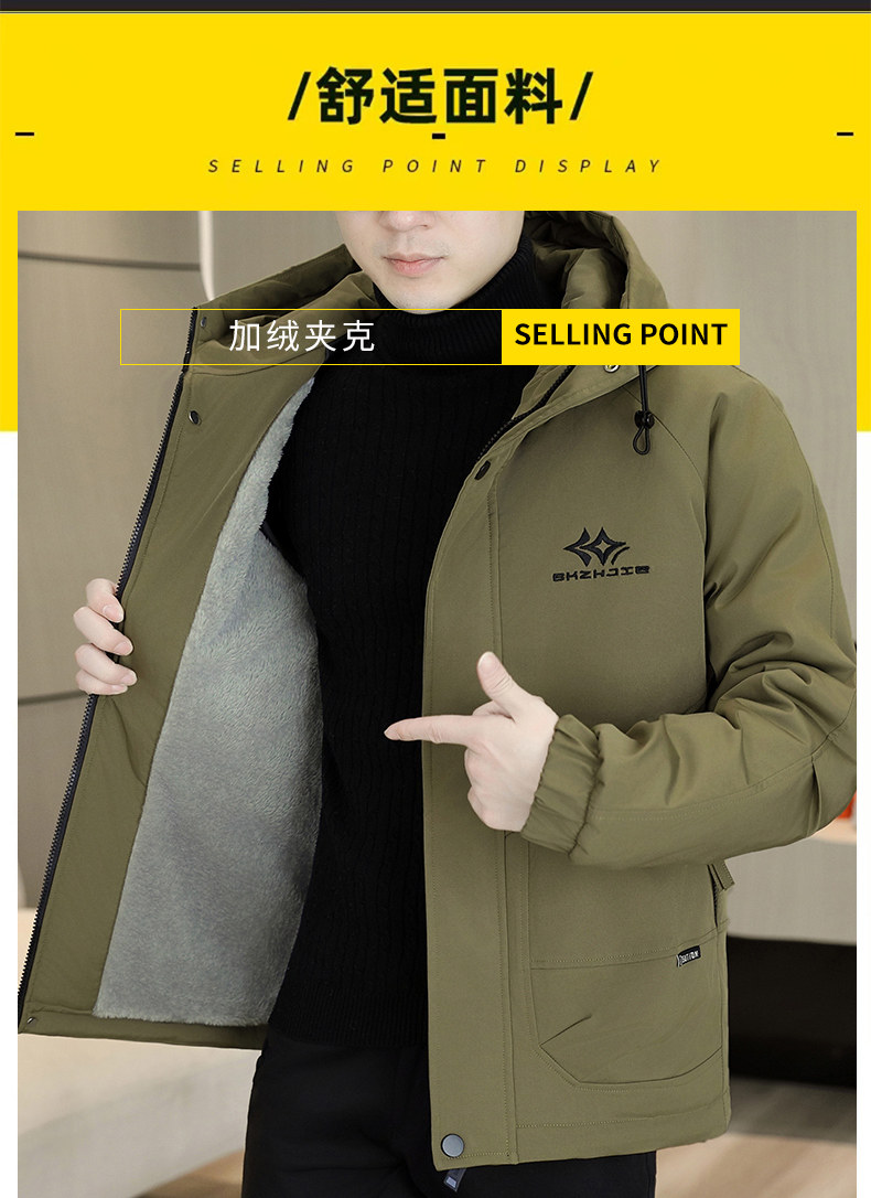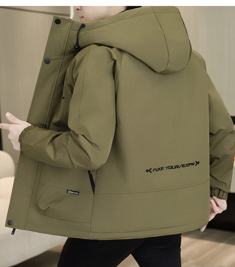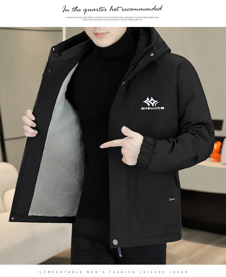 Winter Hooded Fleece Parka Men's Workwear Thickened Warm Cotton Jacket Trendy Casual Windbreaker Cotton Coat