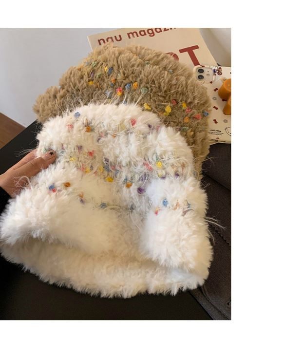Creative and Simple Small Candy Bean Plush Knitted Fisherman Hat for Women, Autumn and Winter Versatile, Large Head Circumference, Makes Face Look Smaller, Warm Woolen Hat