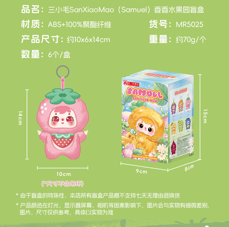 Samuel Three Little Miao Fragrant Fruit Garden Series Plush Pendant Blind Box Doll Girl's Gift