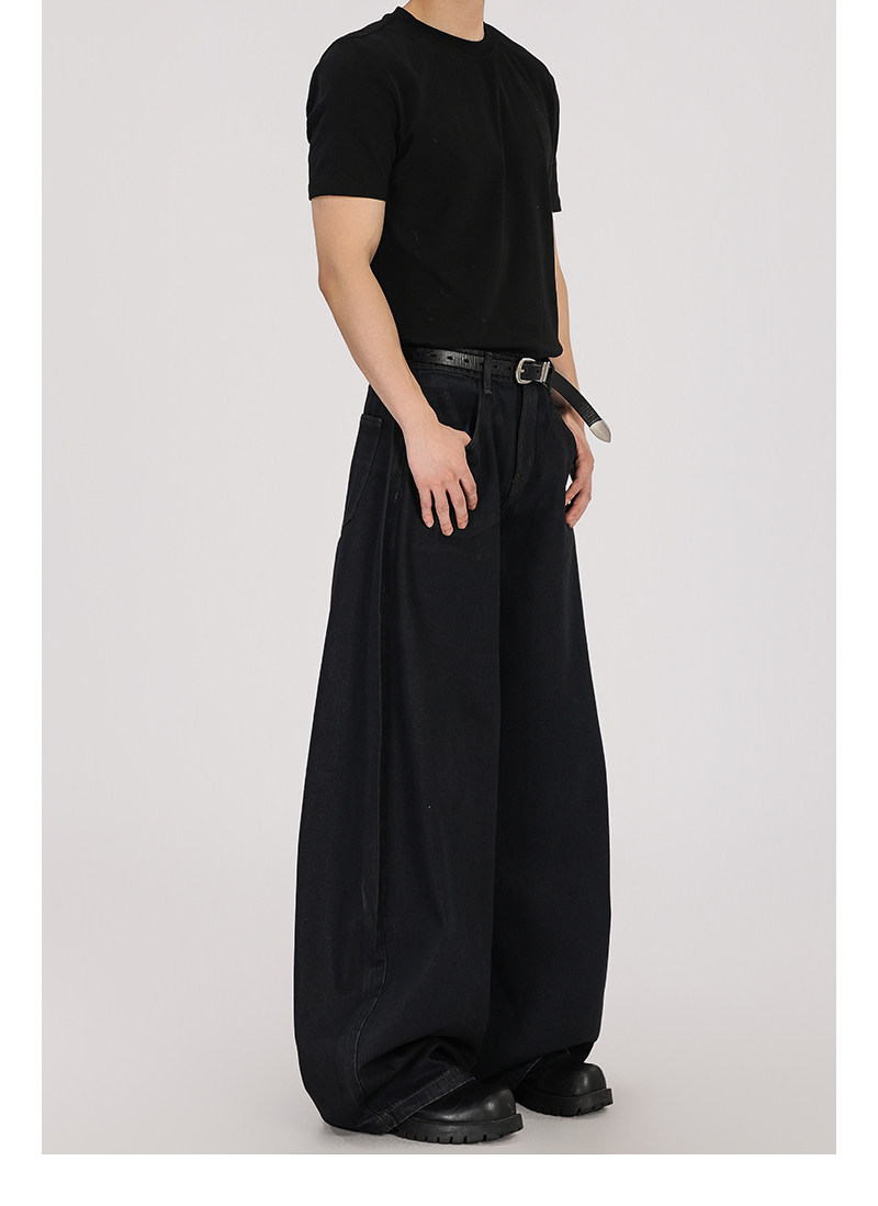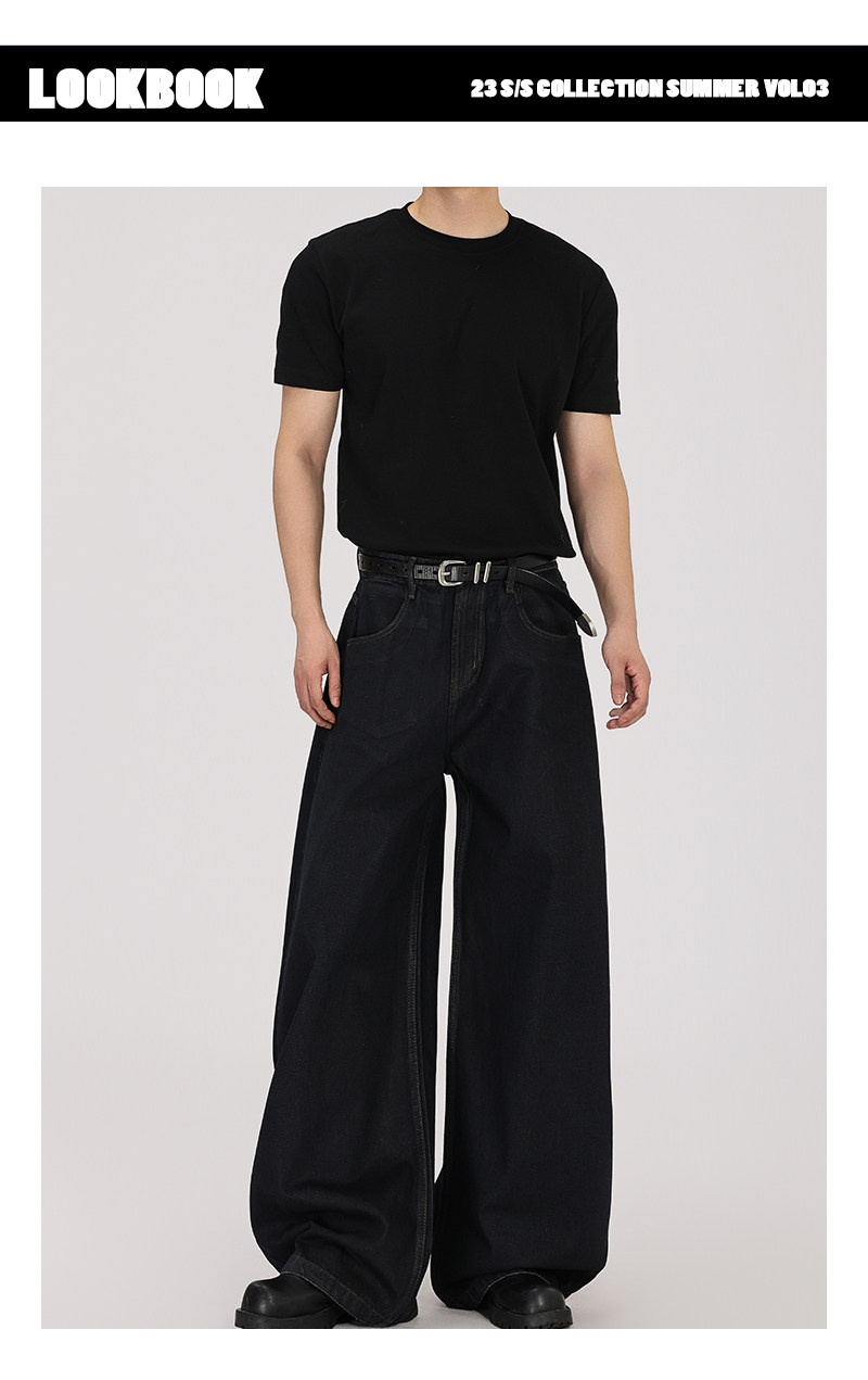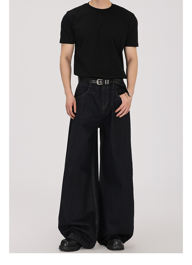 Acarton American Retro Distressed Scimitar Jeans for Men and Women, Loose Baggy Wide-Leg Casual Floor-Length Pants, Trendy