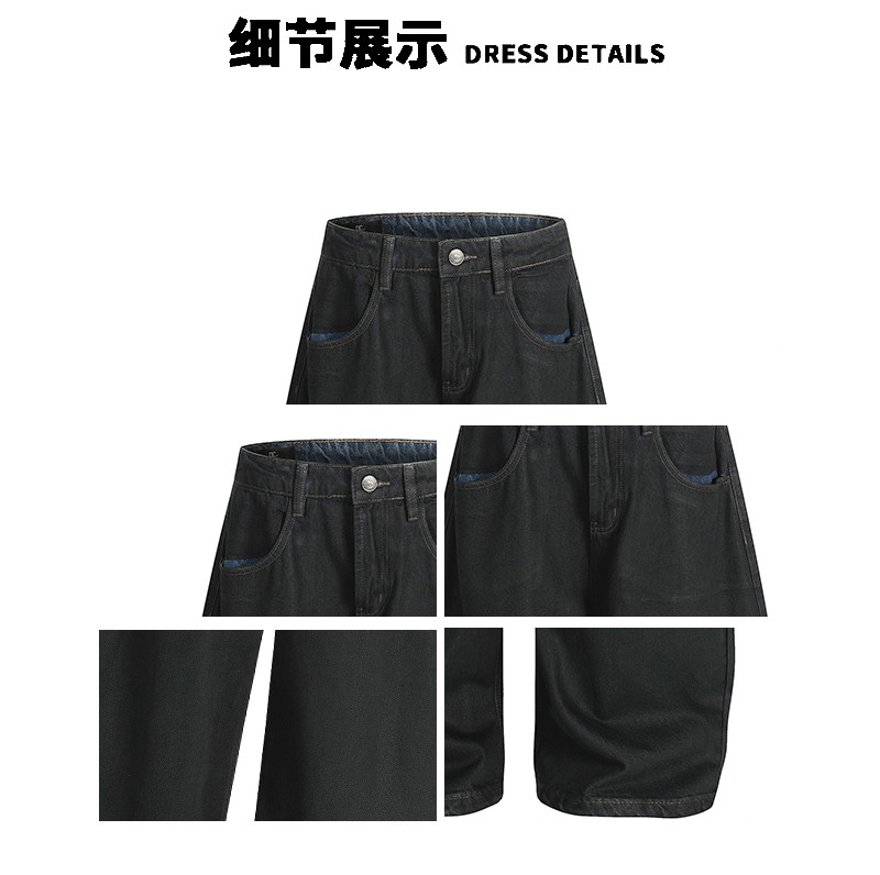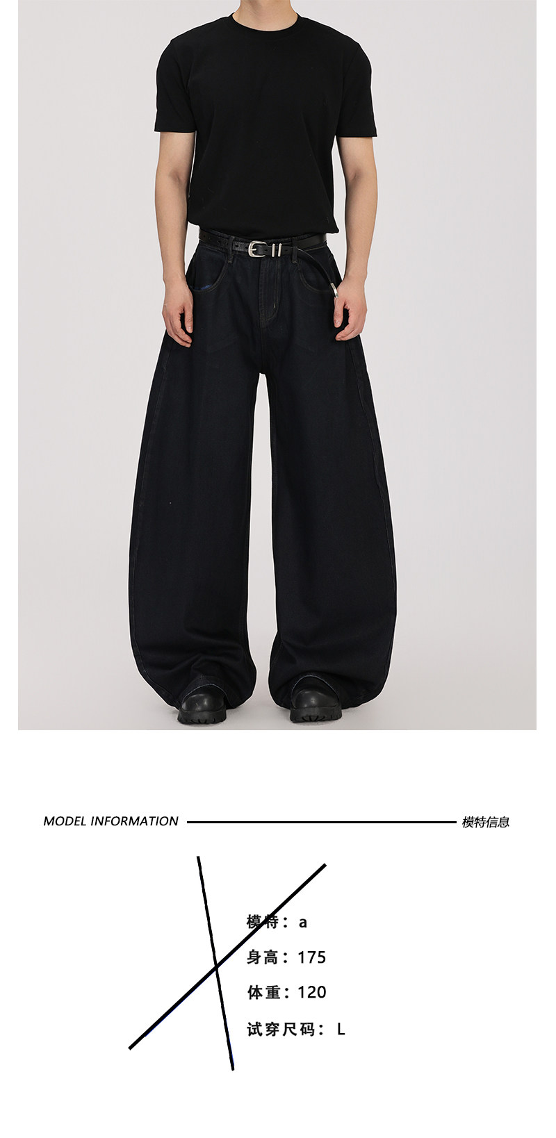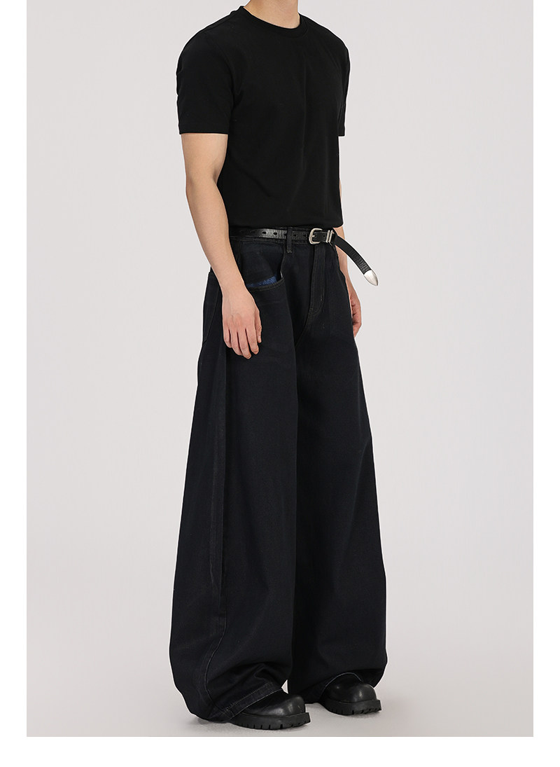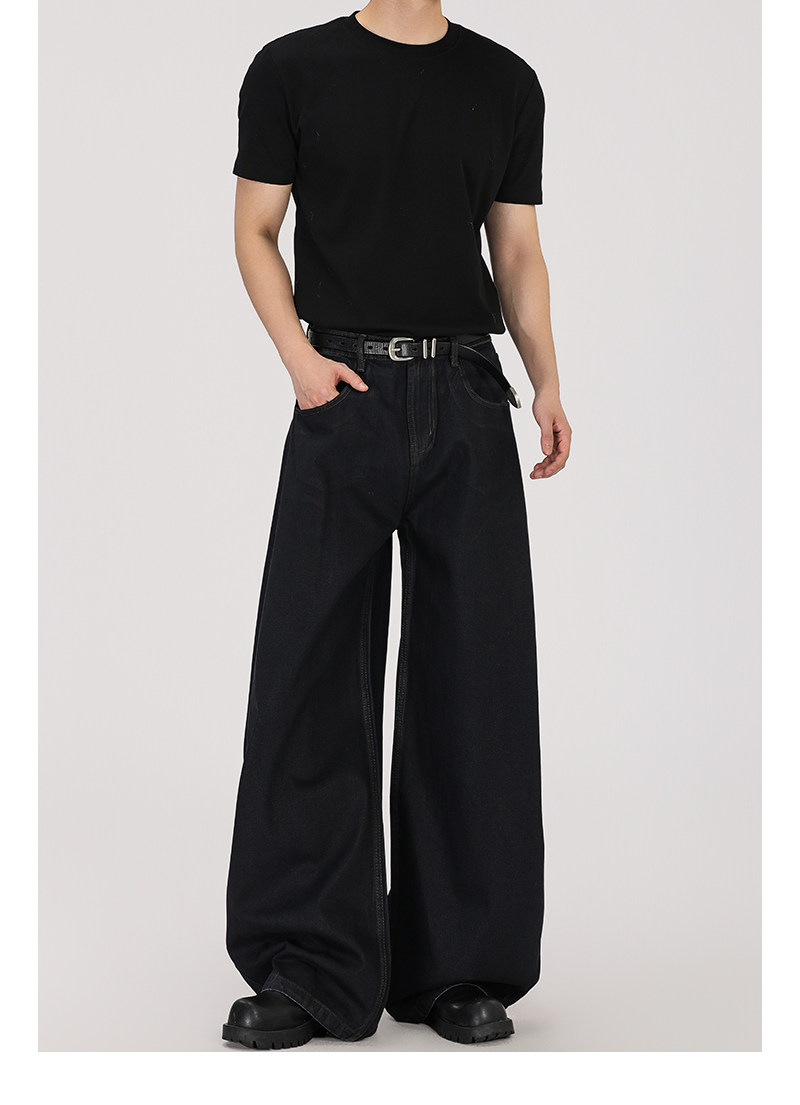 Acarton American Retro Distressed Scimitar Jeans for Men and Women, Loose Baggy Wide-Leg Casual Floor-Length Pants, Trendy