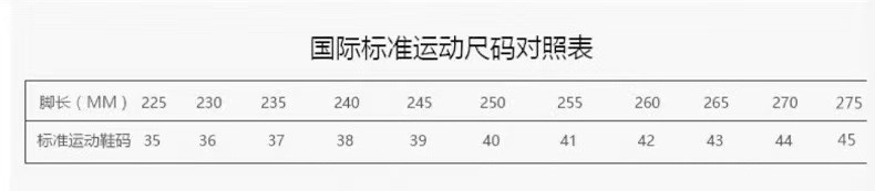 China (cm) 36 - 37 38 - 39 40 - 42 43 - 44 45 - 47