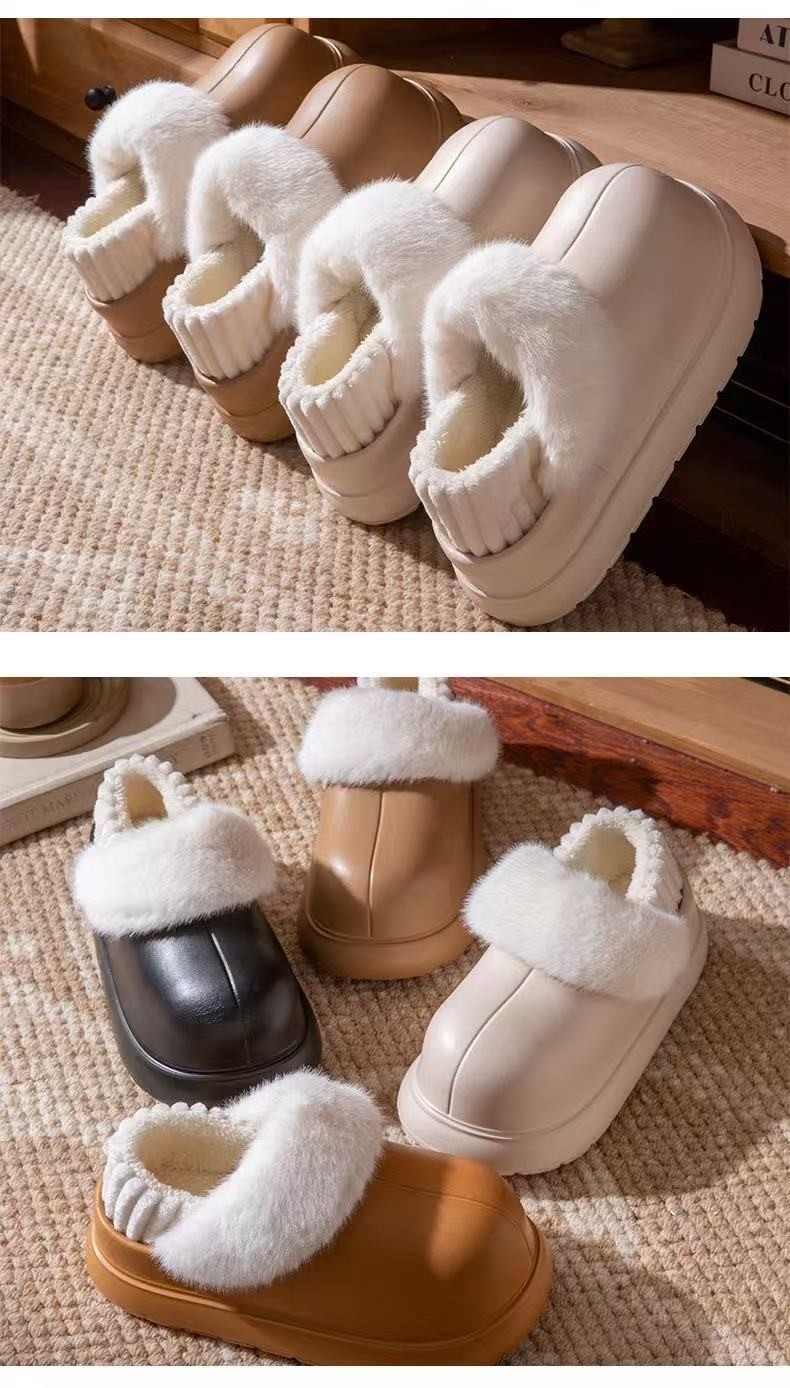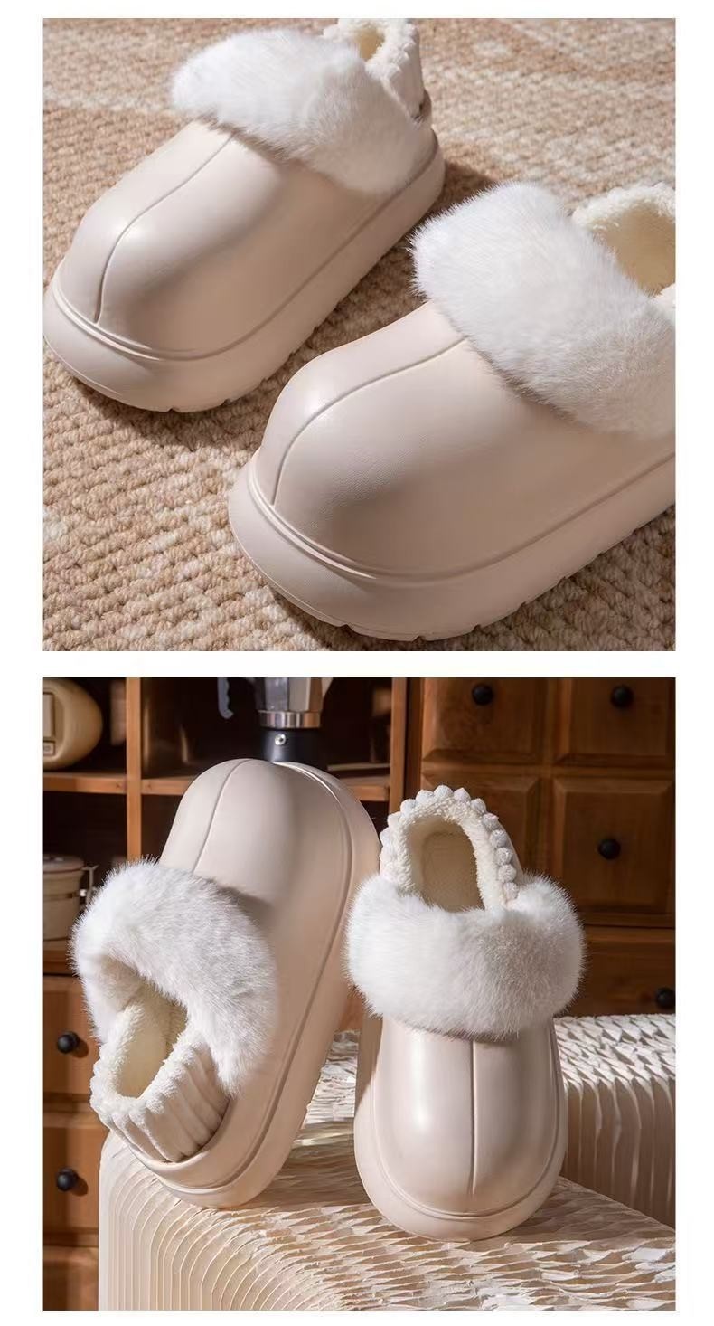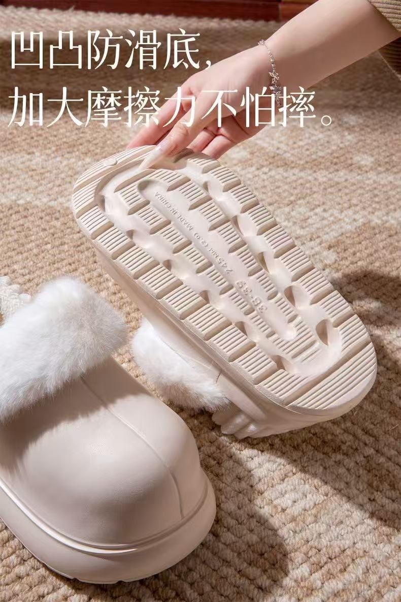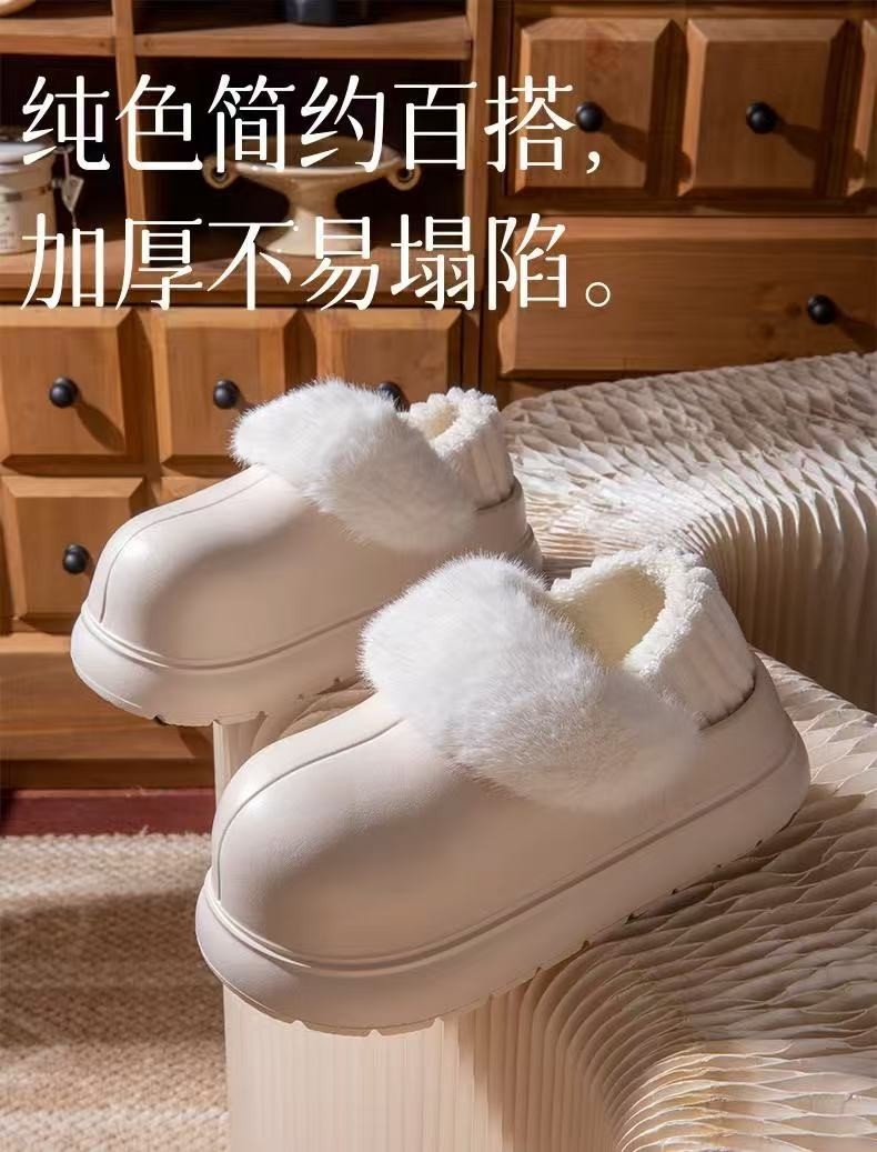 Thick-Soled Height-Increasing Detachable and Washable Cotton Slippers for Women, 2025 New Popular Model for Autumn and Winter, Outdoor Wear, Fleece-Lined, Closed-Back, Waterproof Cotton Shoes for Women