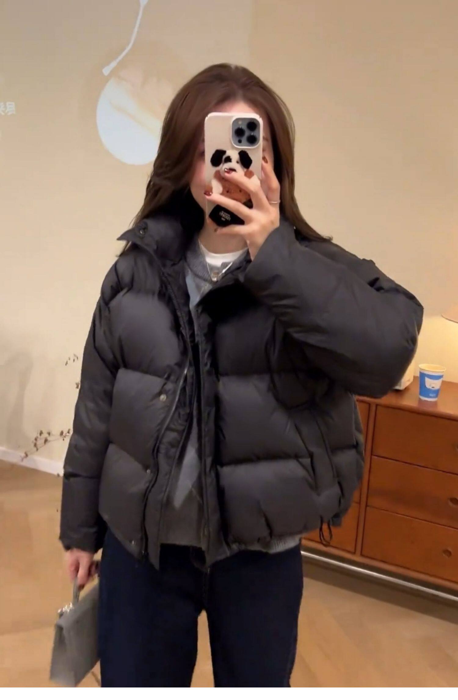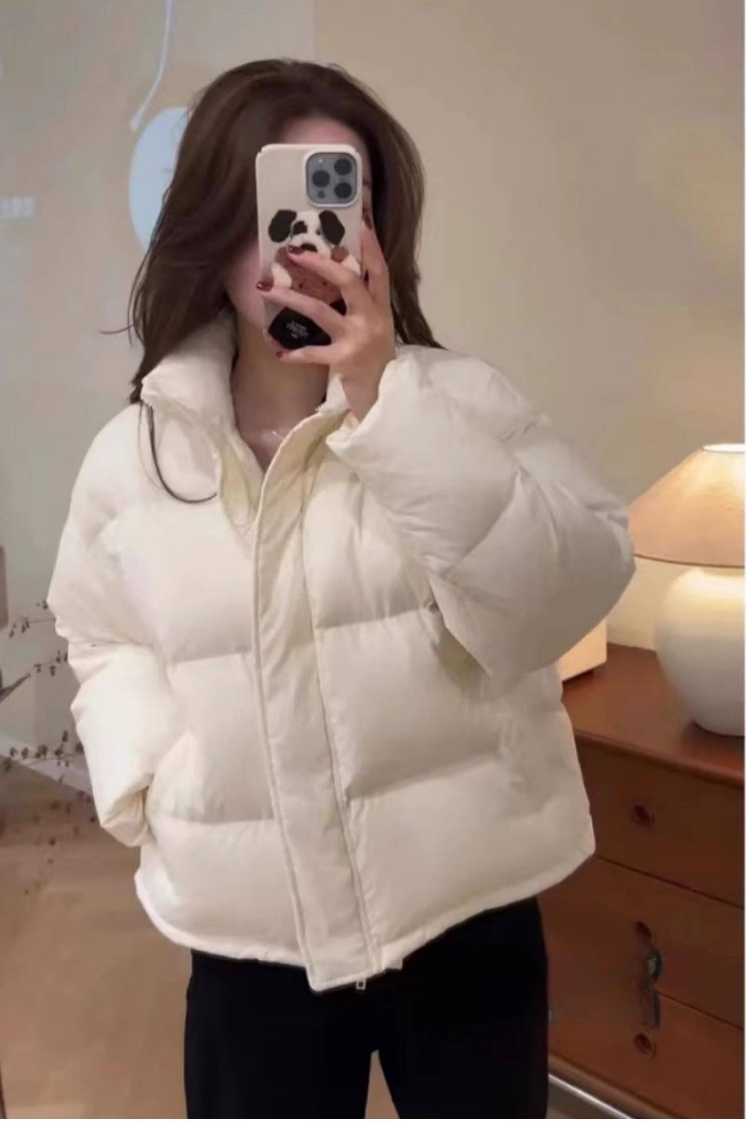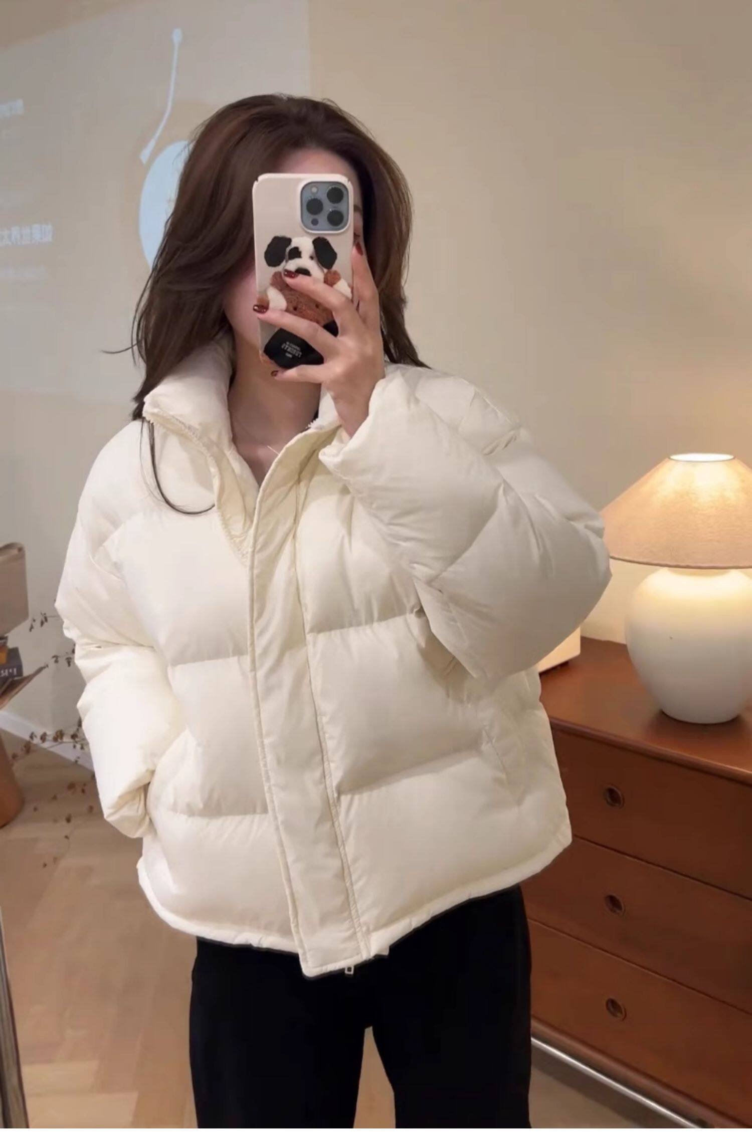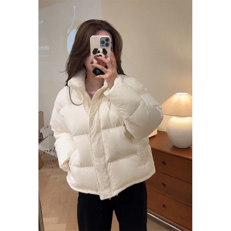 Down jacket for women 2024 new winter short style small white duck down Korean style stand collar thickened bread jacket