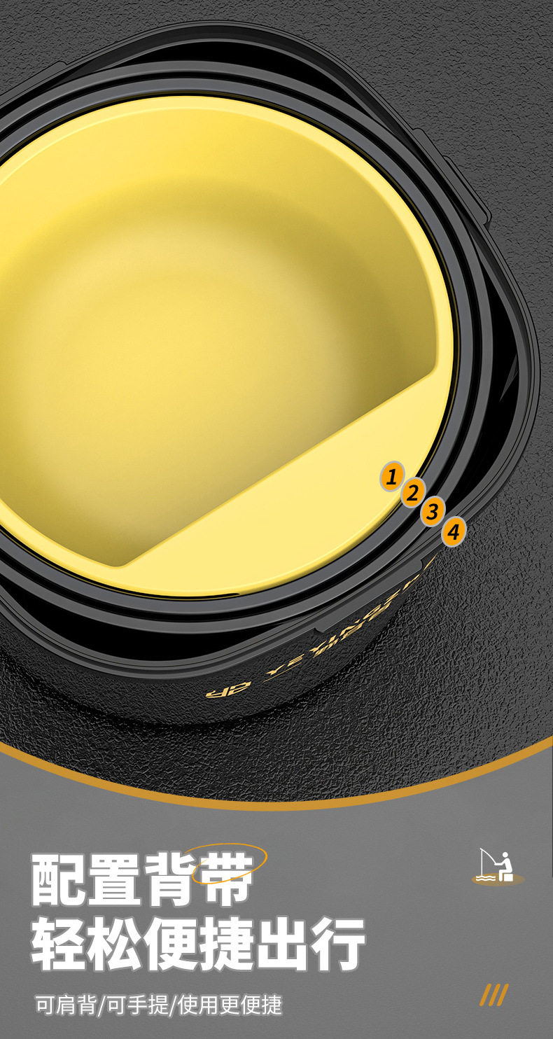 Color Classification Abs—4-Piece Set of Bait Buckets That Can Be Sat on and Opened + Free Strap (Black Gold)