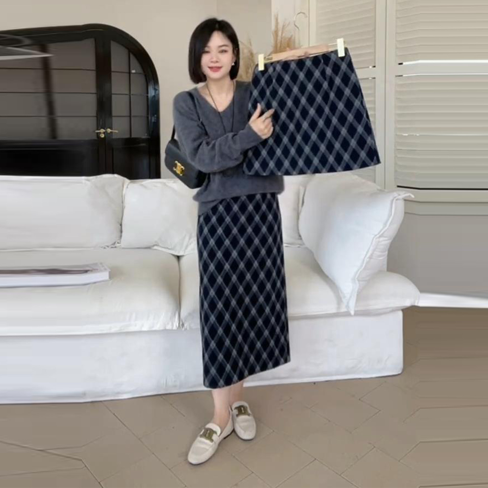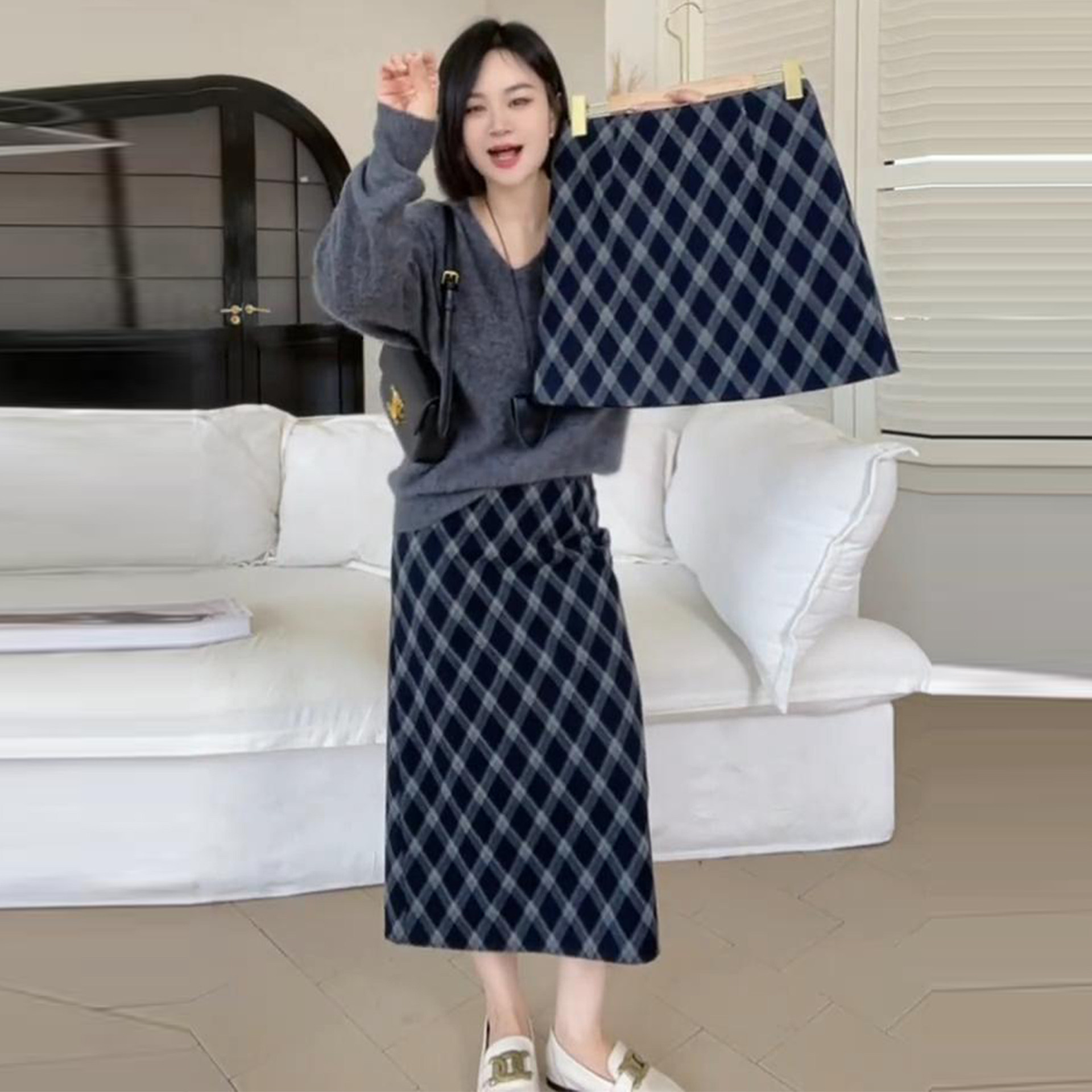 Plus-Size Retro Plaid Woolen Skirt for Women, Autumn and Winter, Flattering for Slightly Chubby Figures, Mid-Length, High-Waisted A-Line Elegant Skirt