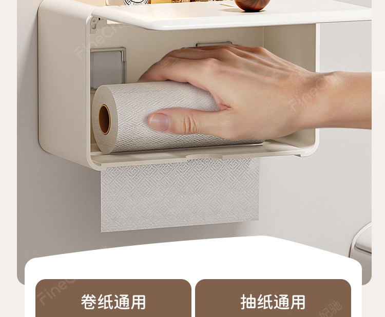 Finechi Bathroom Toilet Paper Holder Wall-Mounted No-Drill Waterproof Vintage Style Toilet Tissue Box Storage Shelf