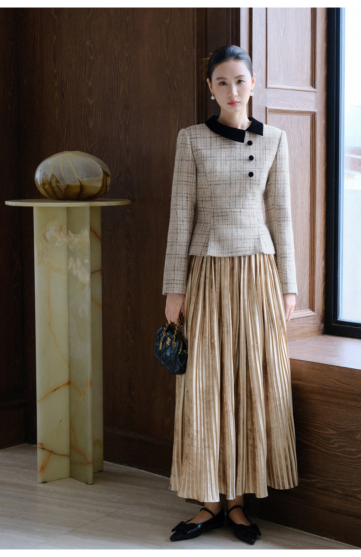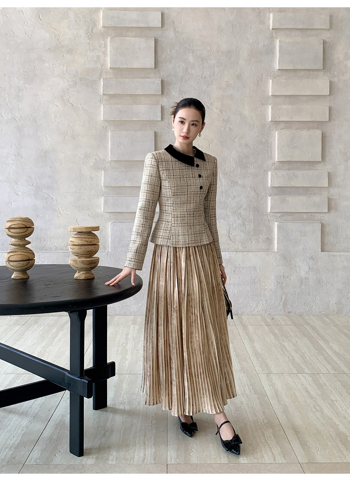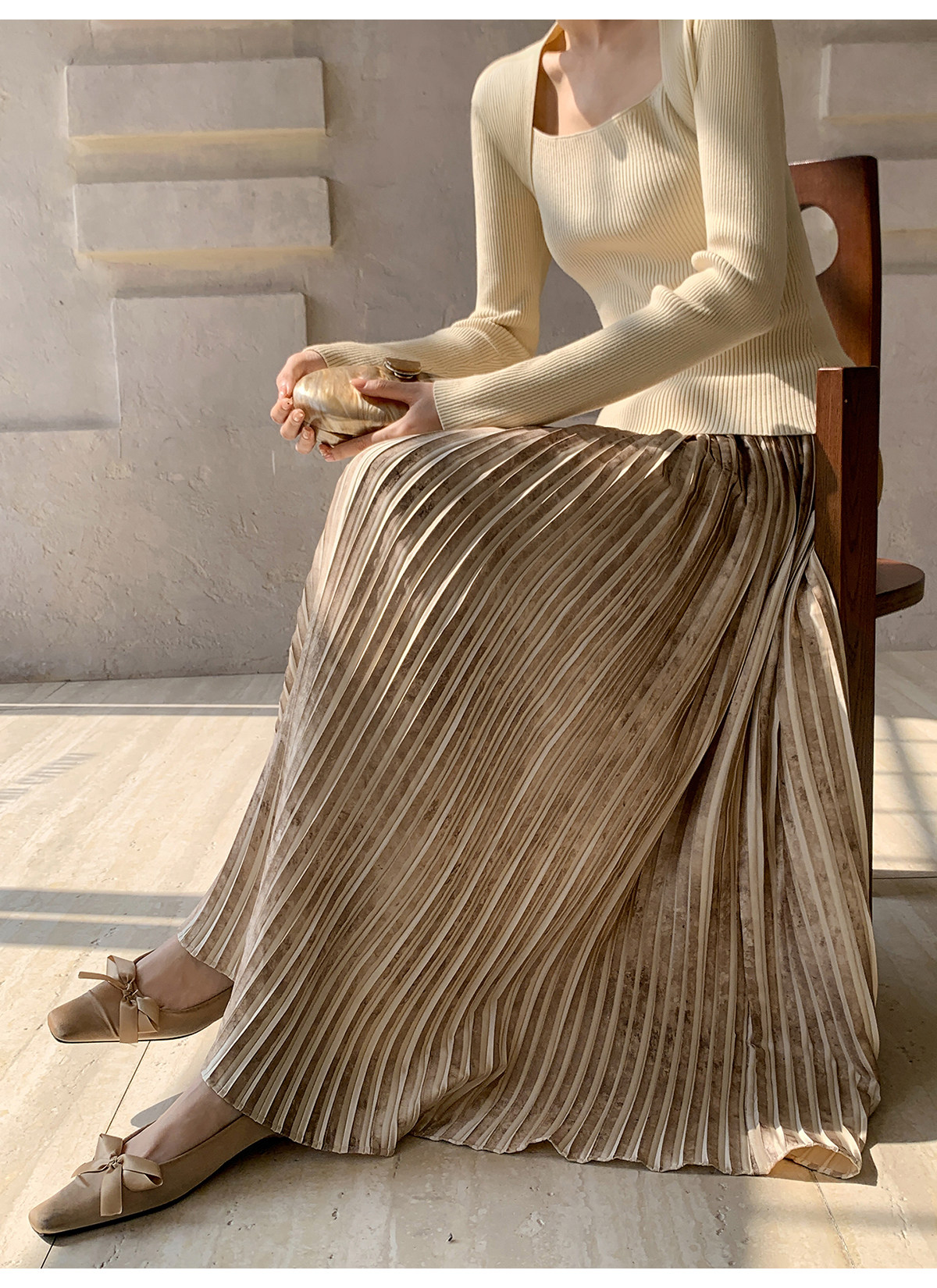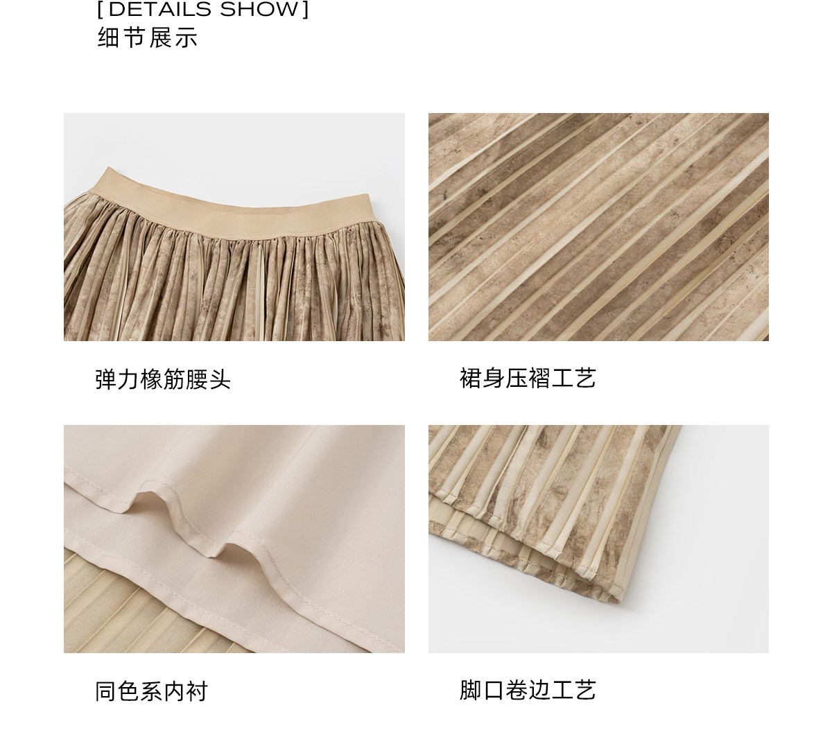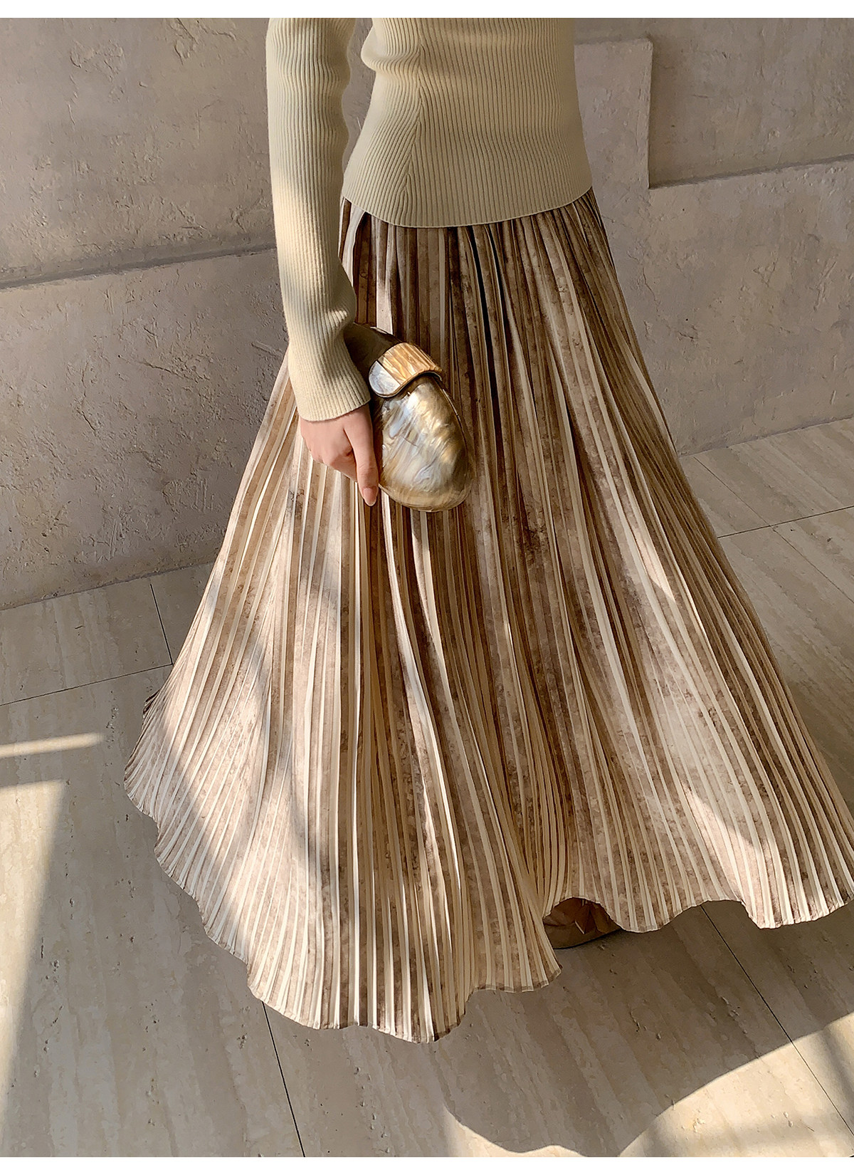 Xxning French-Style Pleated Printed Skirt for Women, New Winter High-Waisted Slimming A-Line Elegant Mid-Length Skirt