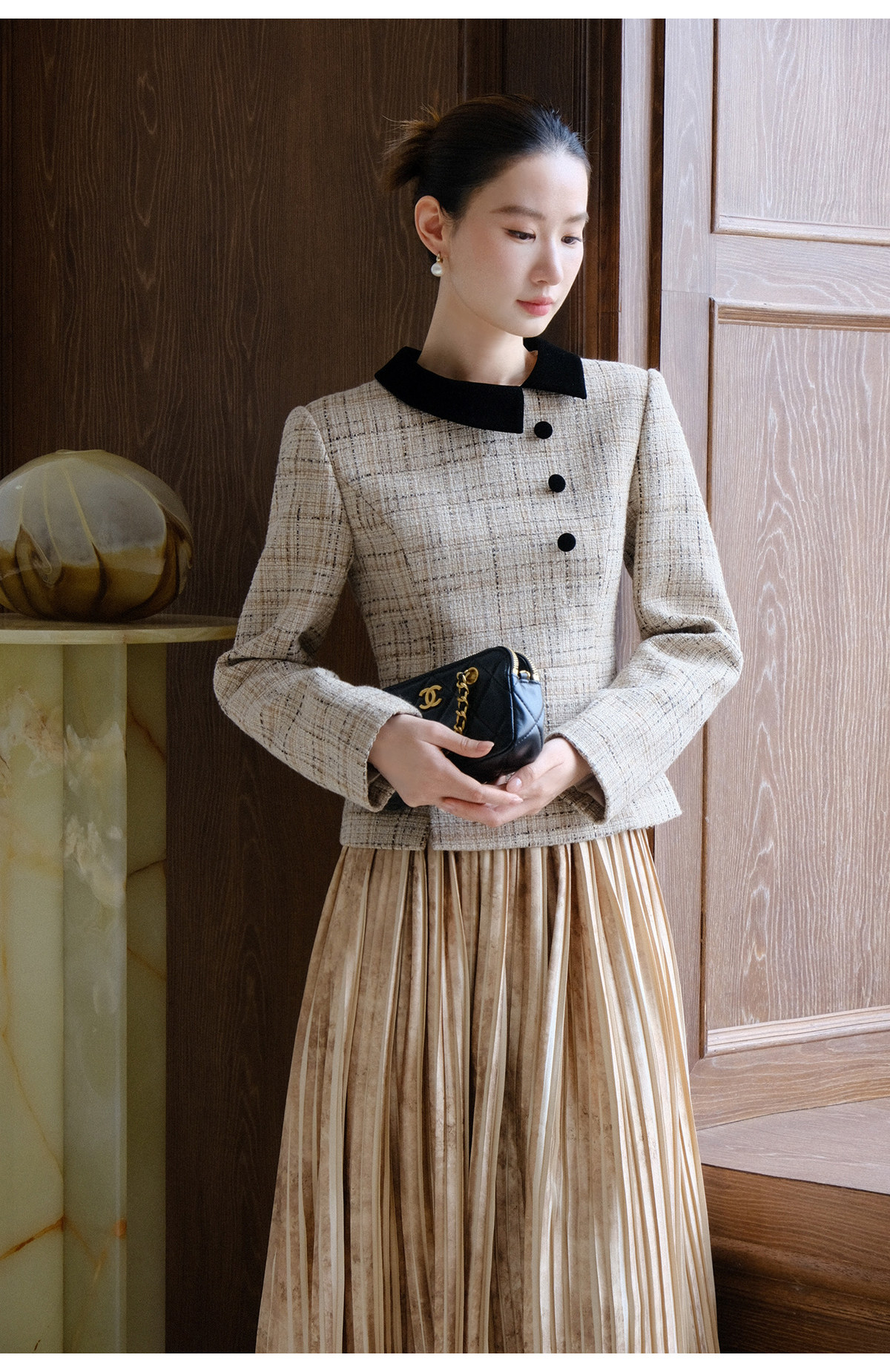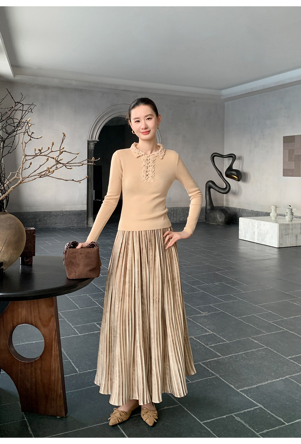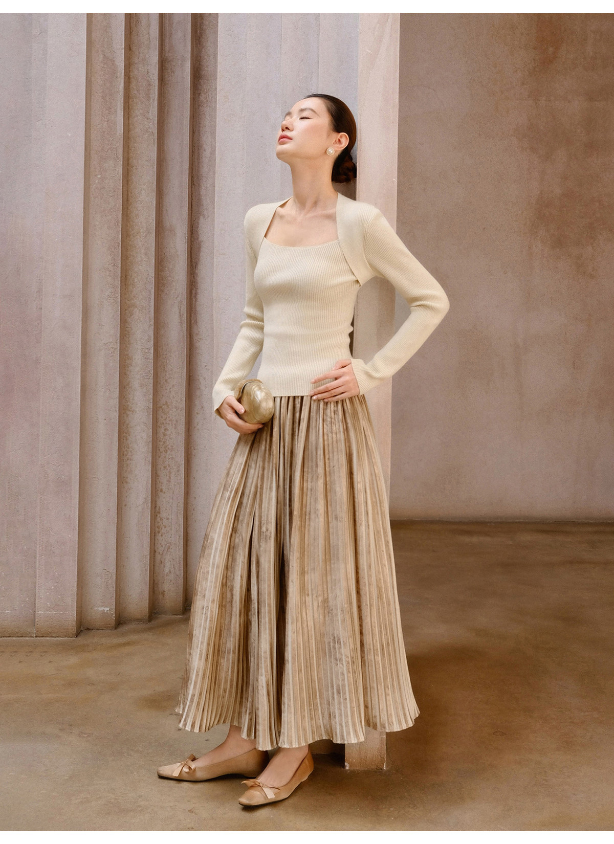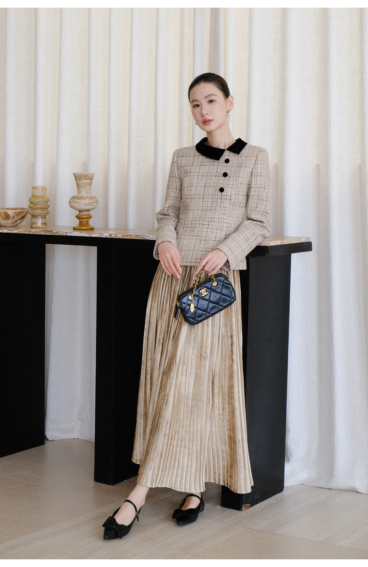 Xxning French-Style Pleated Printed Skirt for Women, New Winter High-Waisted Slimming A-Line Elegant Mid-Length Skirt