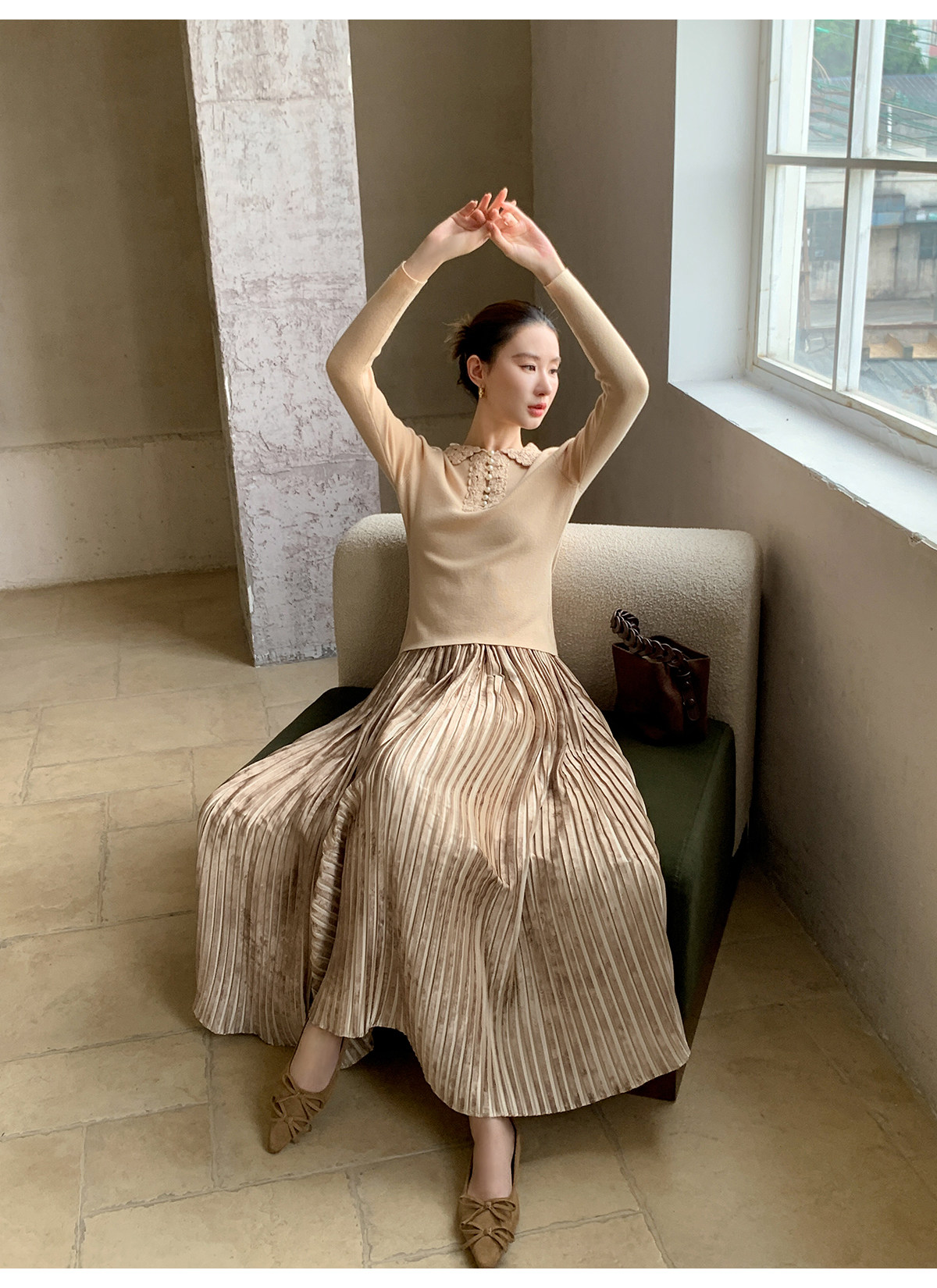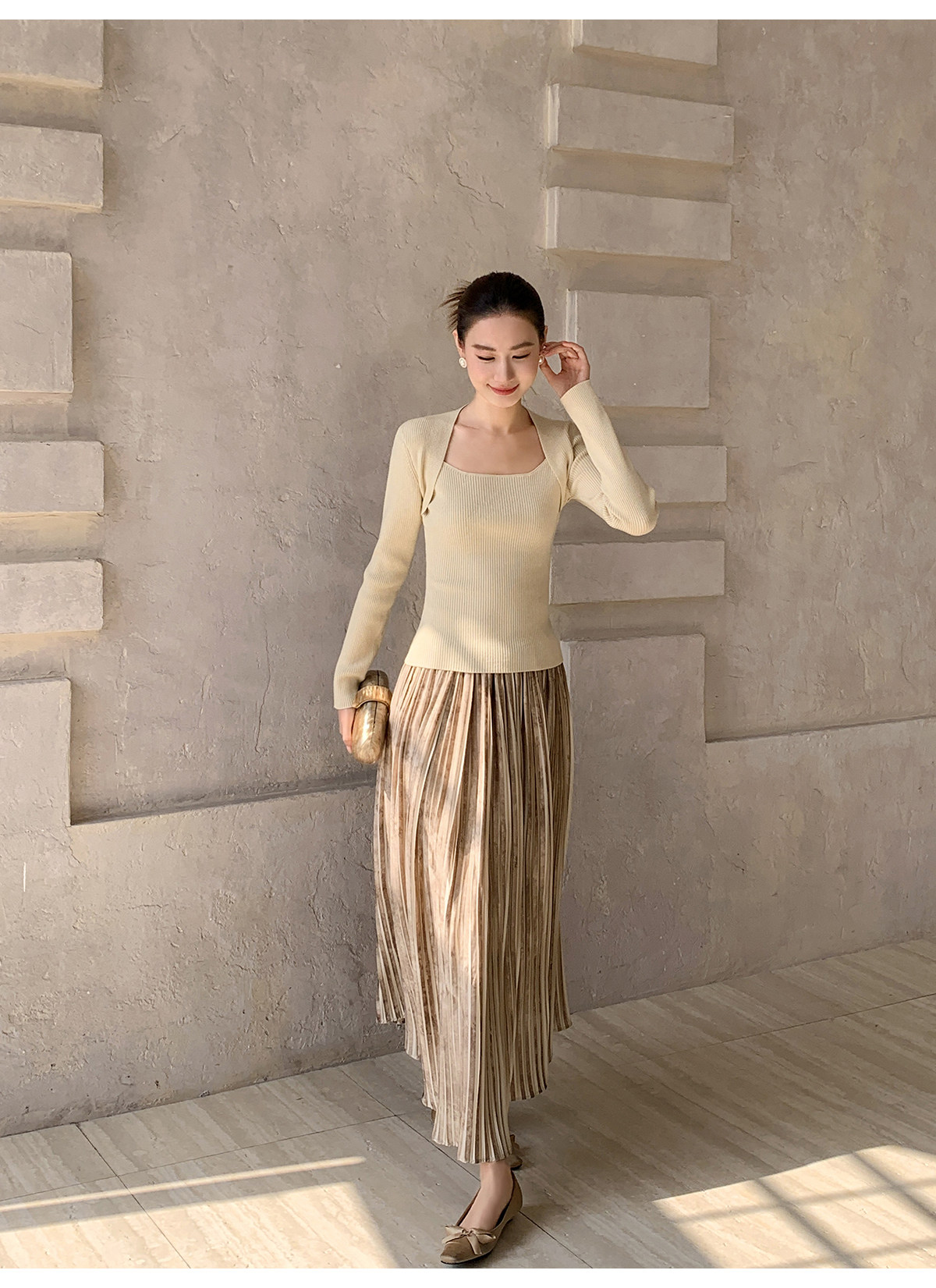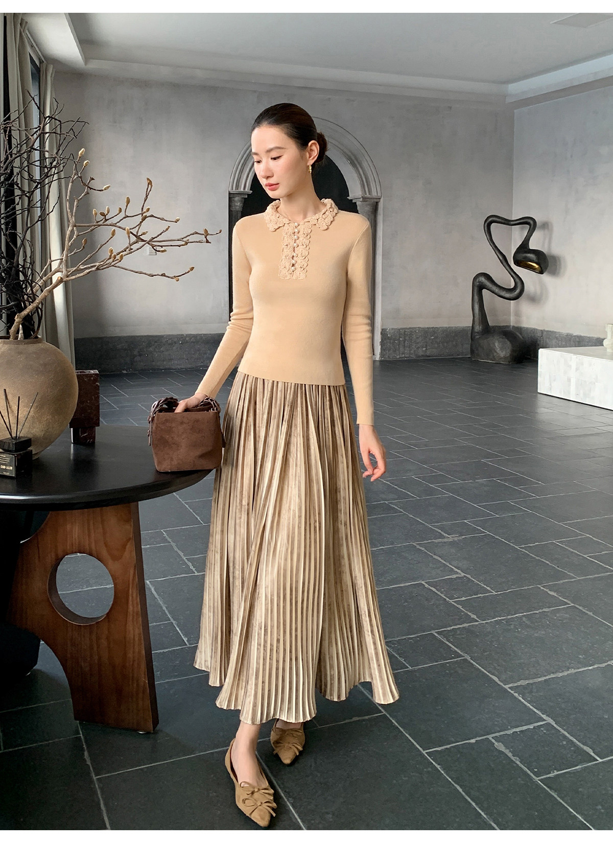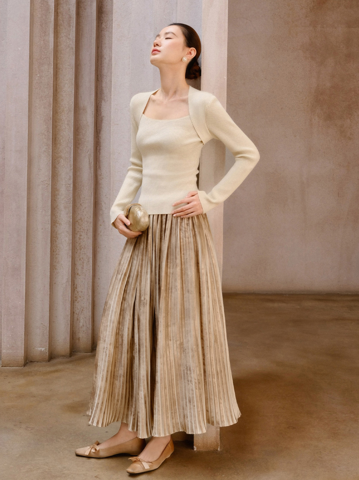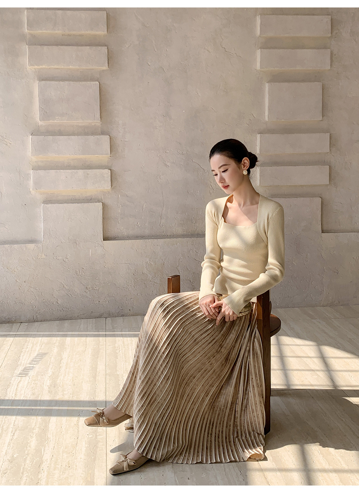 Xxning French-Style Pleated Printed Skirt for Women, New Winter High-Waisted Slimming A-Line Elegant Mid-Length Skirt