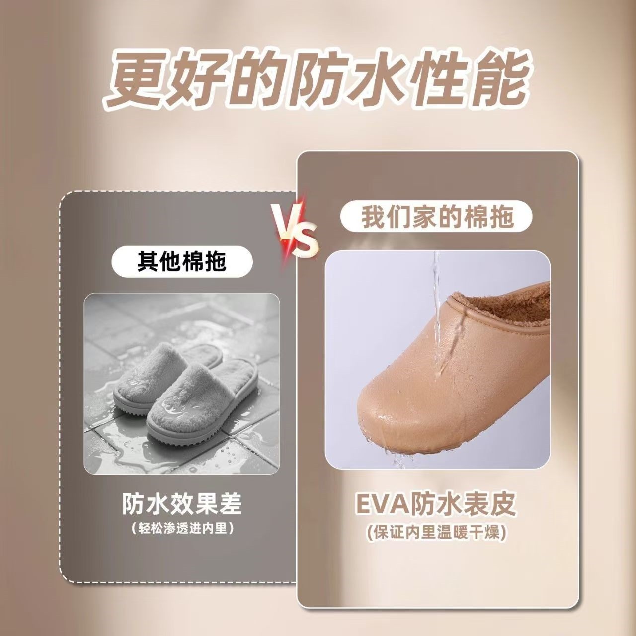 Waterproof Cotton Slippers for Women, 2025 New Autumn and Winter Models, Warm and Non-Slip, with Covered Heels, Suitable for Outdoor Wear, Couple's Thick-Soled Cotton Slippers