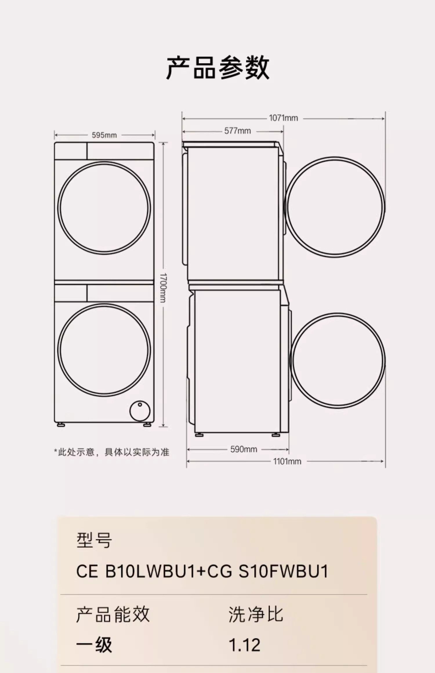 Casarte Ce B10Lwbu1+Cg S10Fwbu1 Washing Machine and Dryer 10kg Washing and Drying Set Languang Wb
