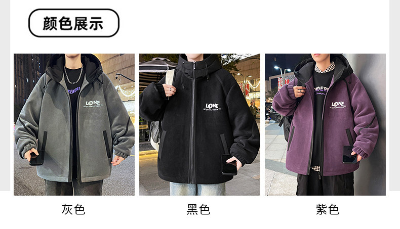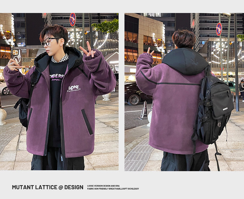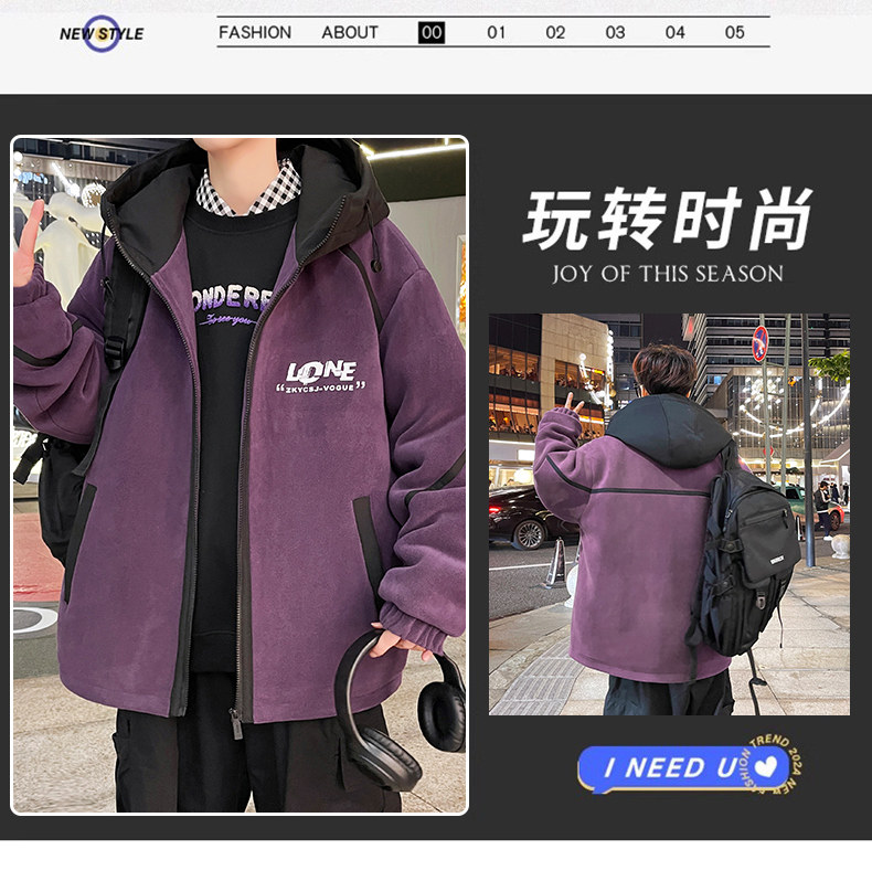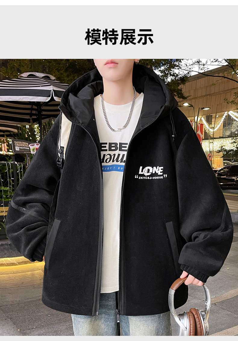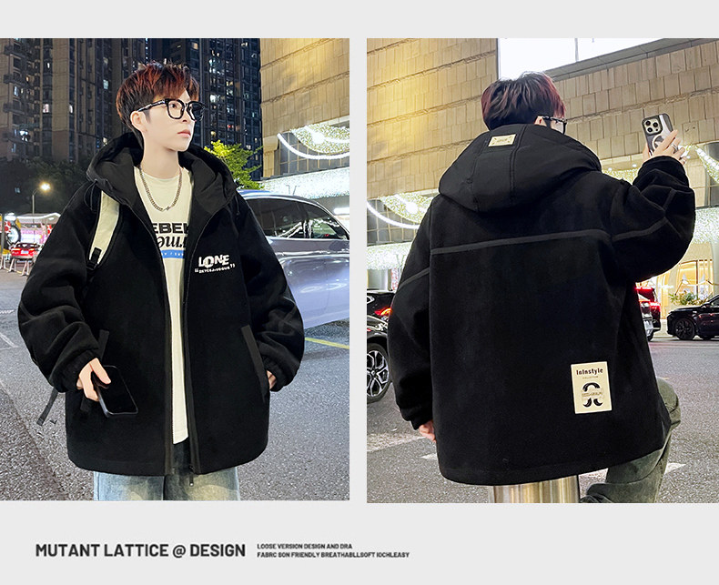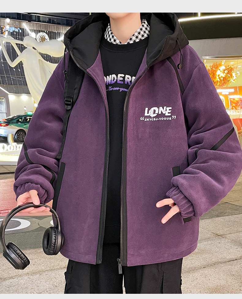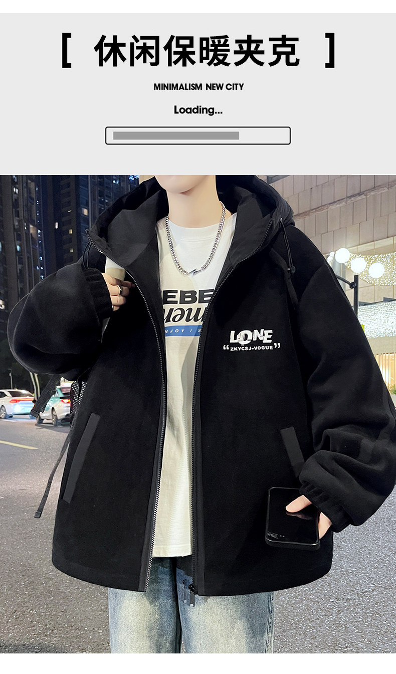 Teenagers' Fleece-Lined Cotton Jacket for Men, Winter Trendy Brand Loose Hooded Cotton Coat, Student Winter Clothing Top