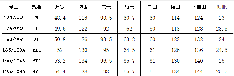 Size 170,175,180,185,190,195