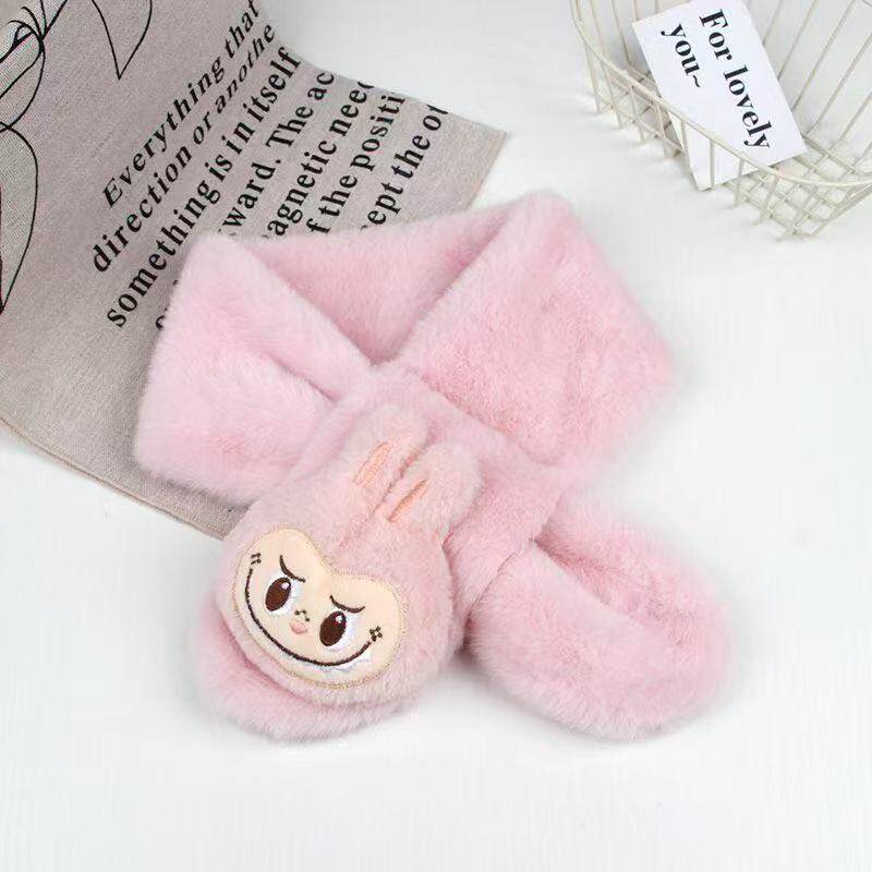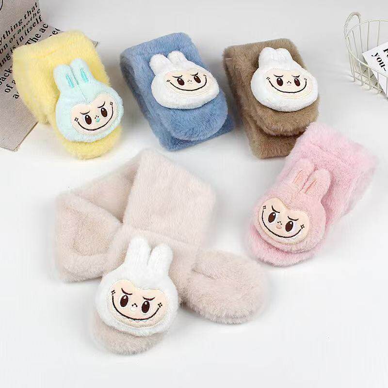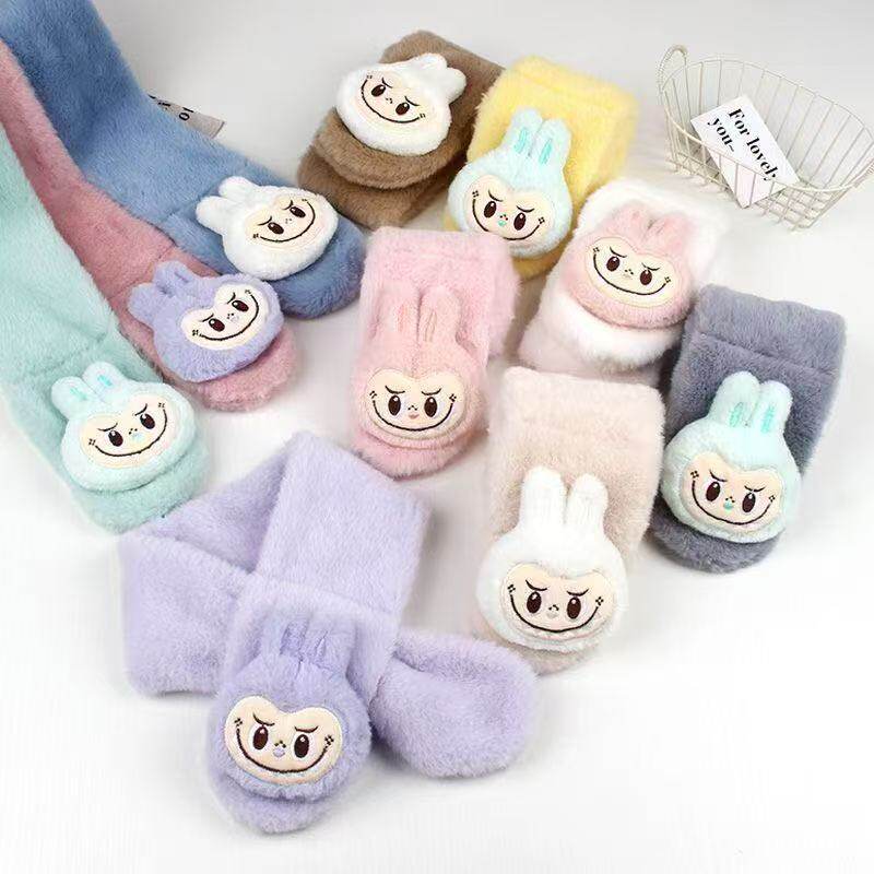 Labubu children's gloves girl cartoon cute five finger gloves winter girls warm baby scarf earmuffs set