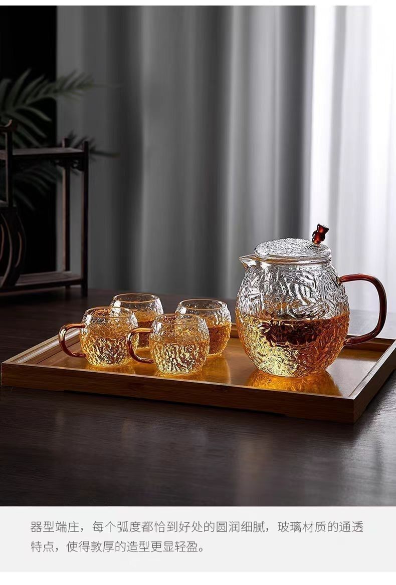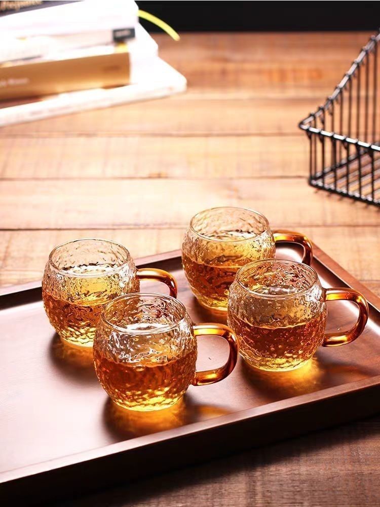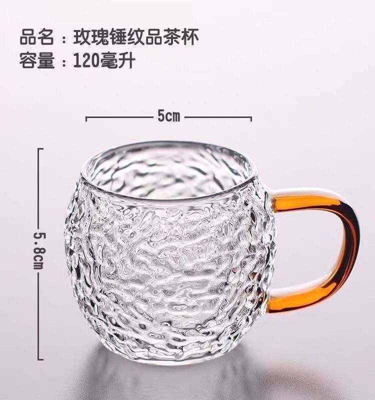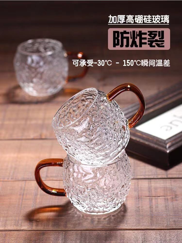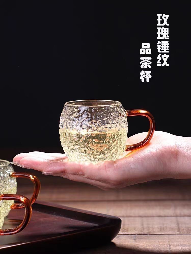 Japanese-Style Heat-Resistant Hammered Glass Small Tea Cup, High-Temperature Resistant, Explosion-Proof High Borosilicate Glass Tasting Cup with Handle, Kung Fu Tea Cup