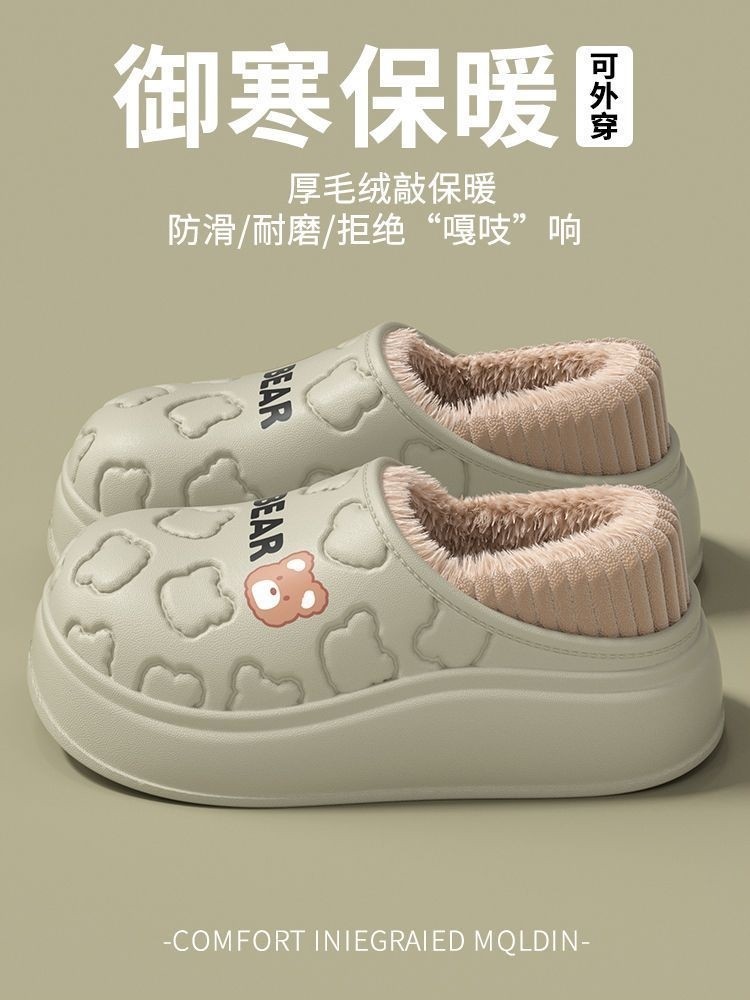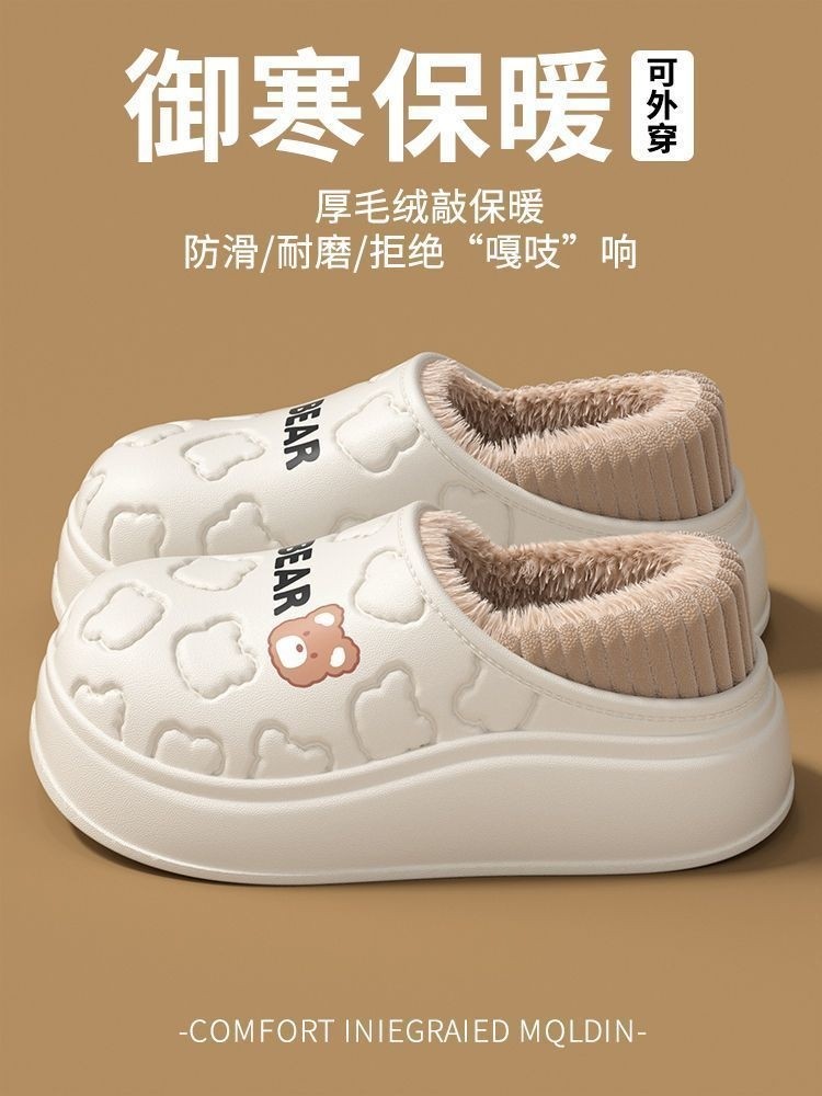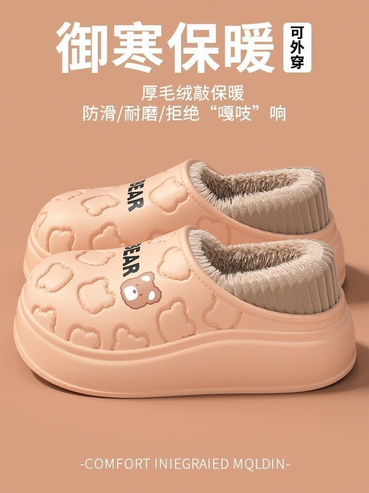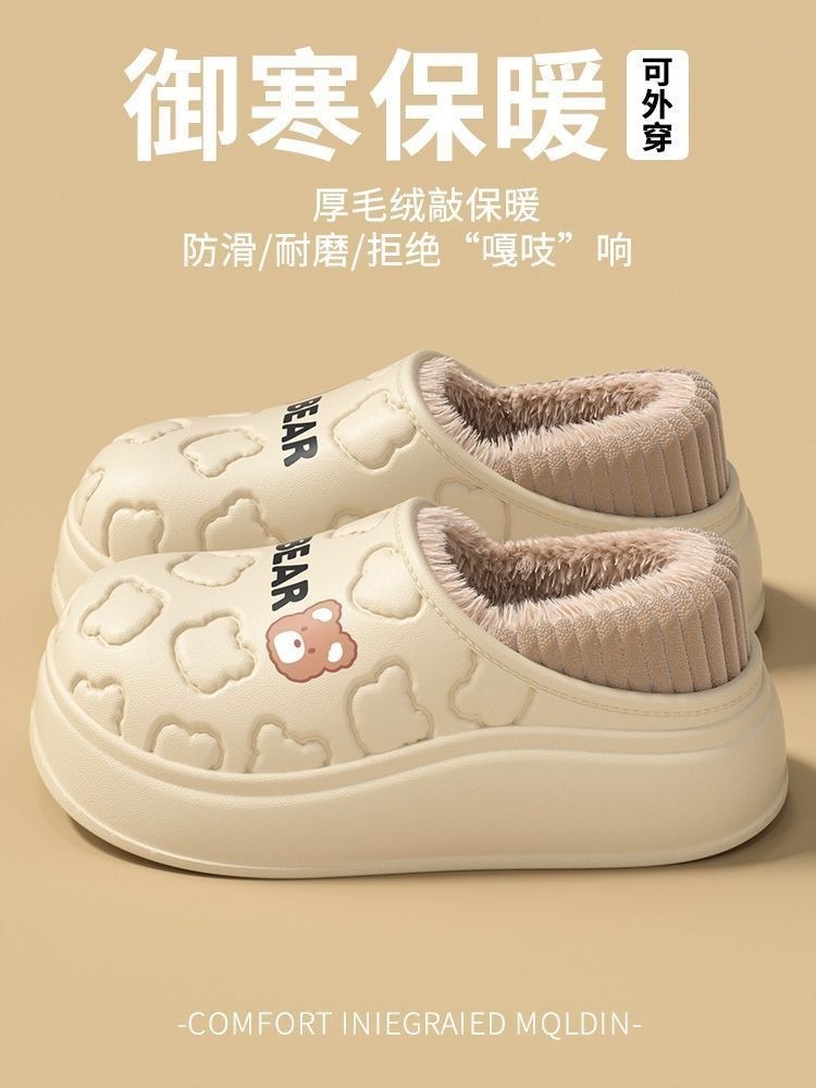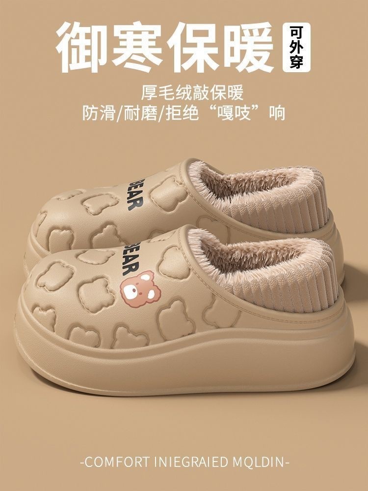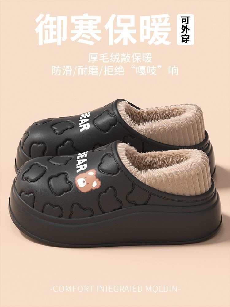 Waterproof Warm Cotton Slippers for Women, Autumn and Winter 2025 New Style, Cartoon Bear, Sweet and Versatile, Indoor Non-Slip and Odor-Resistant Men's Shoes