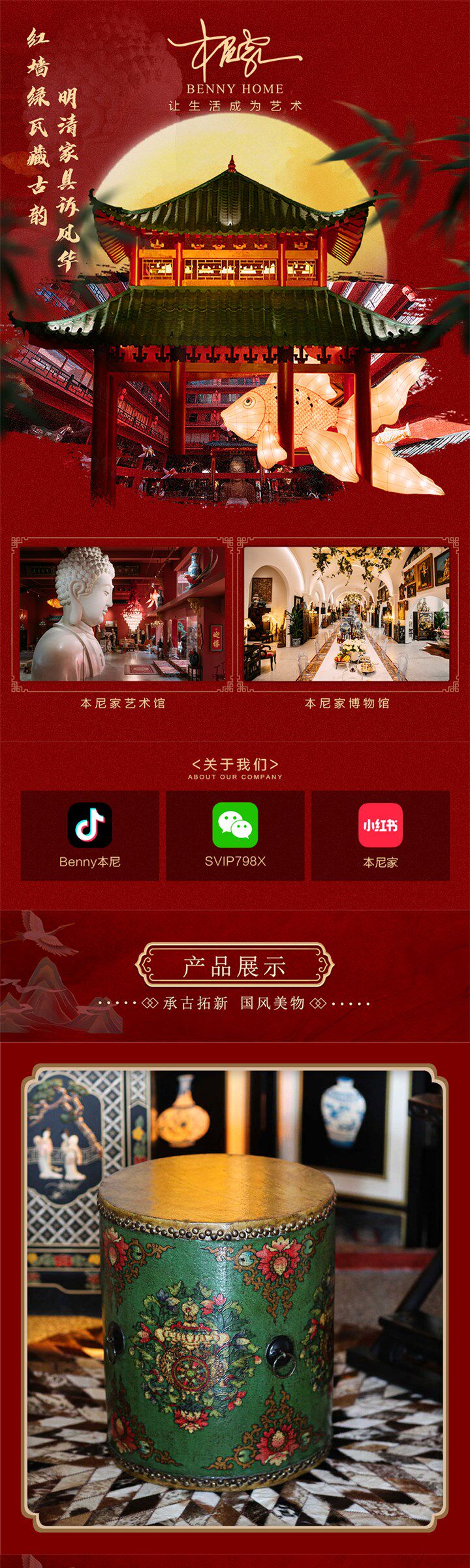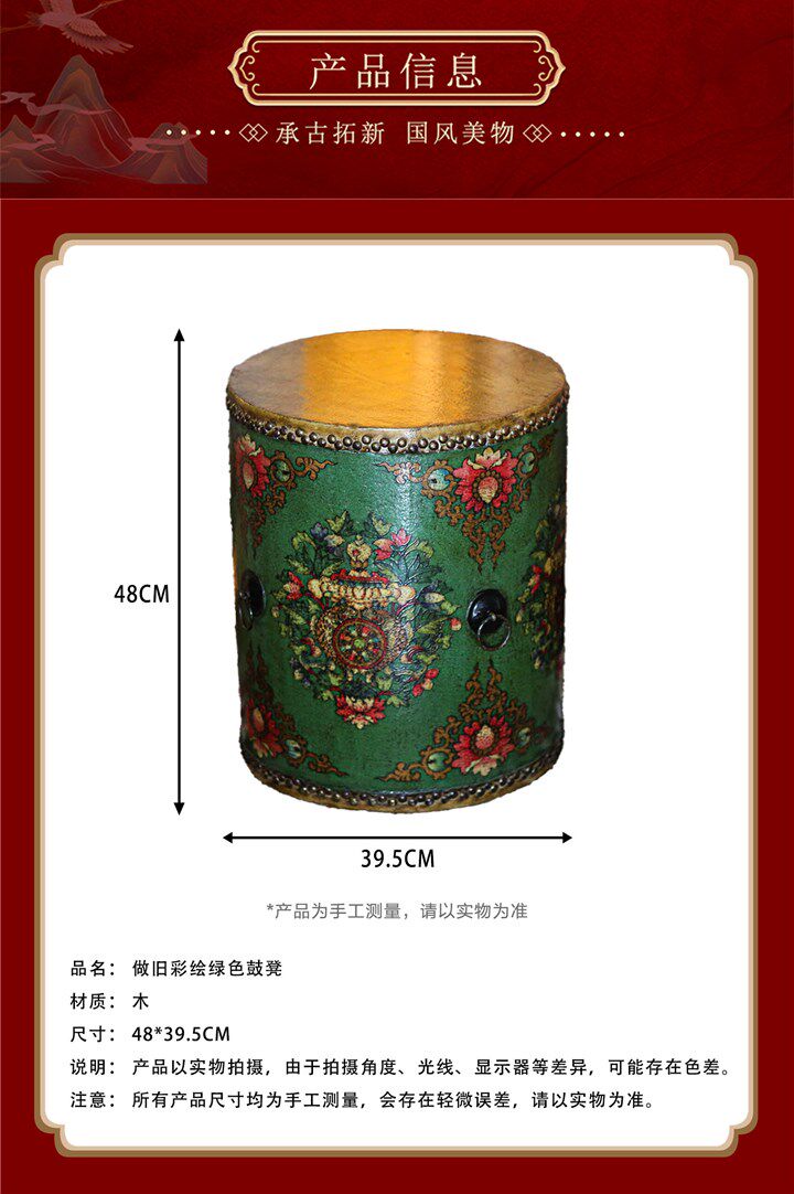 Hot-Selling Item[Benny's Home]Green Chinese-Style Drum-Shaped Stool with Vintage Painted Decoration, Home Decor Floor Ornament