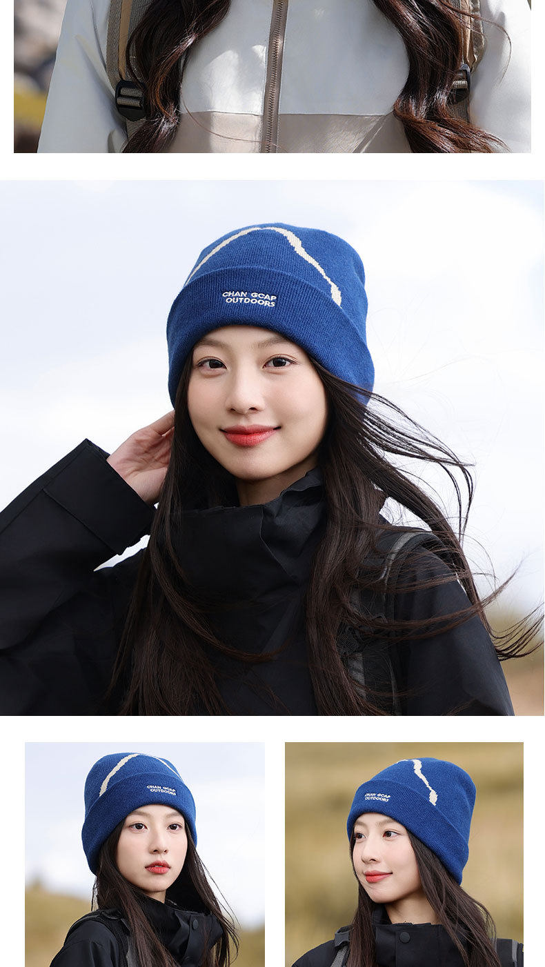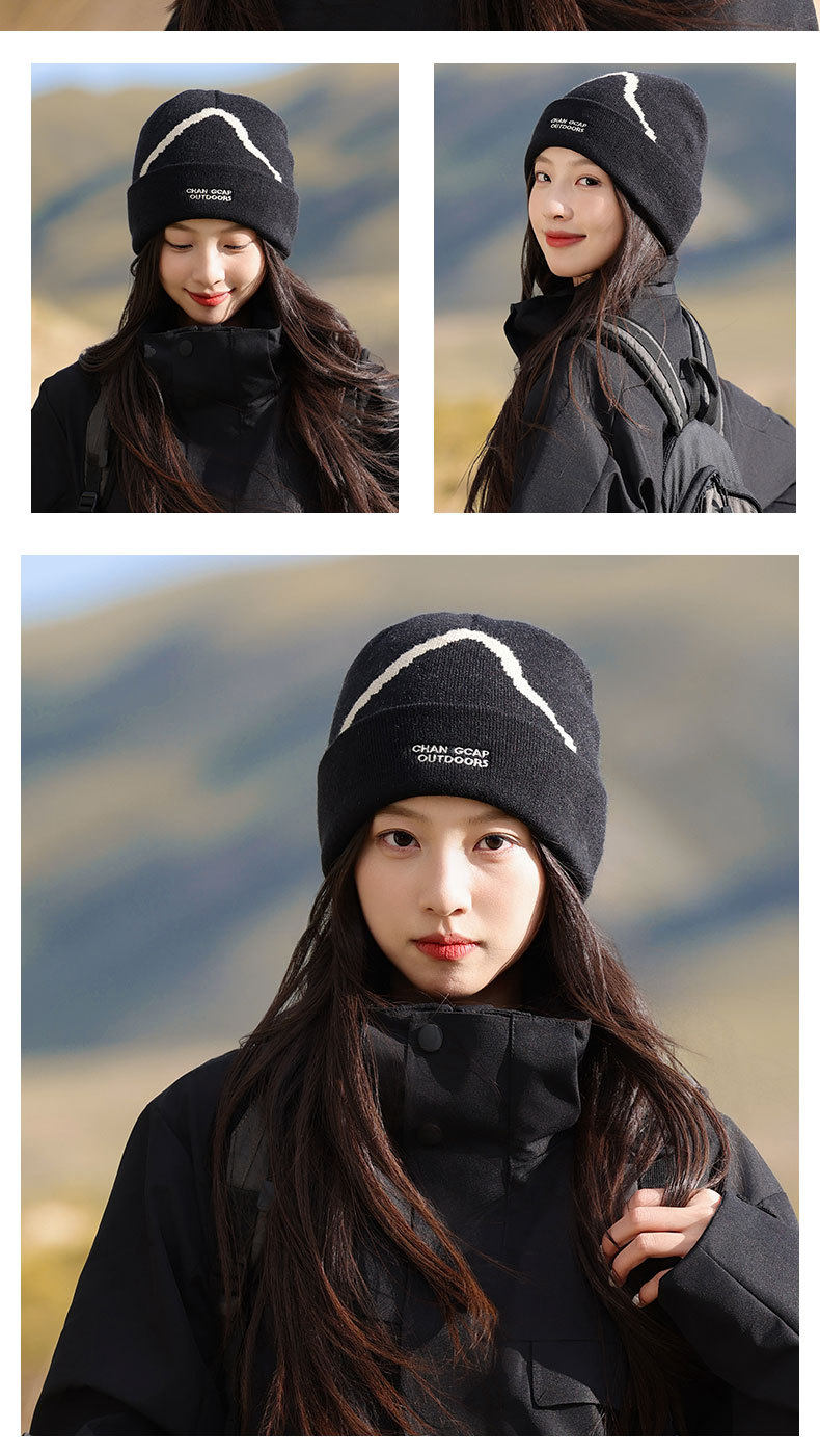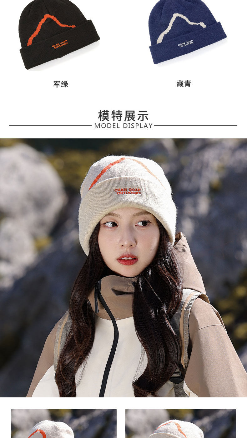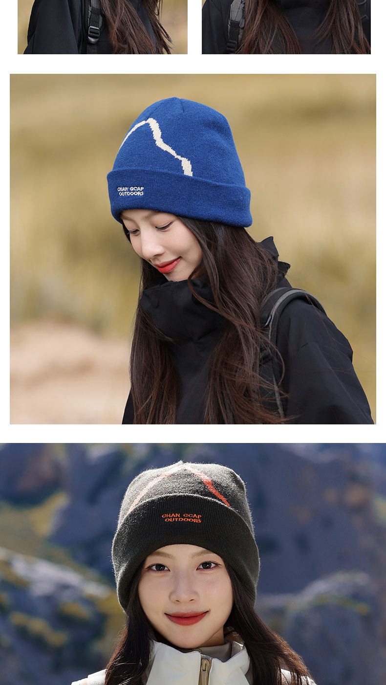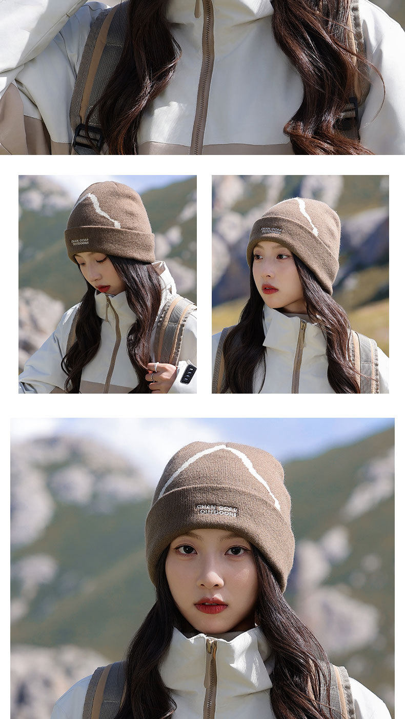 Mountaineering wool hat snow mountain hat women autumn and winter outdoor warm knitted ear protection cold hat sports ski pullover hat