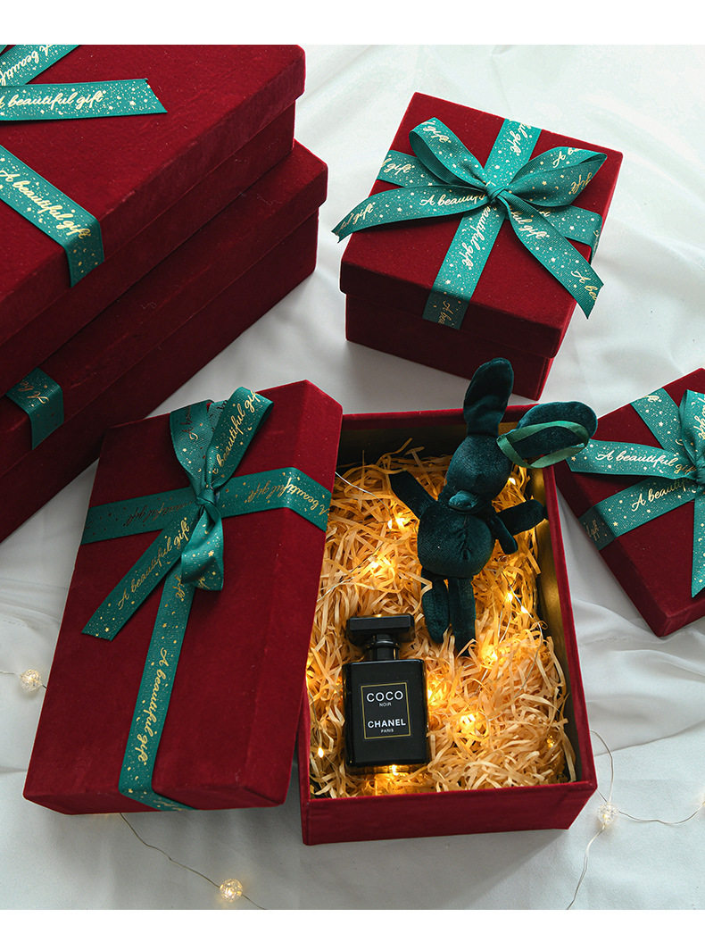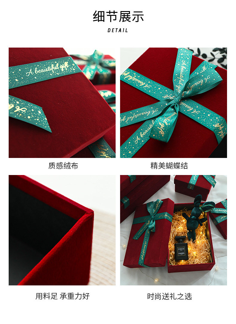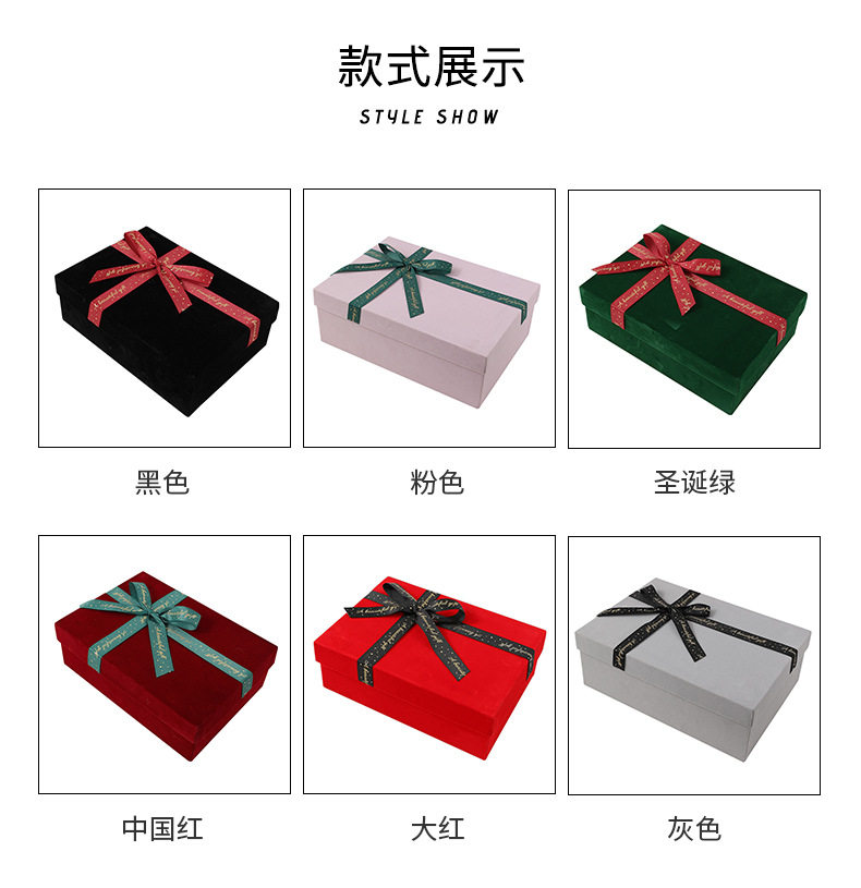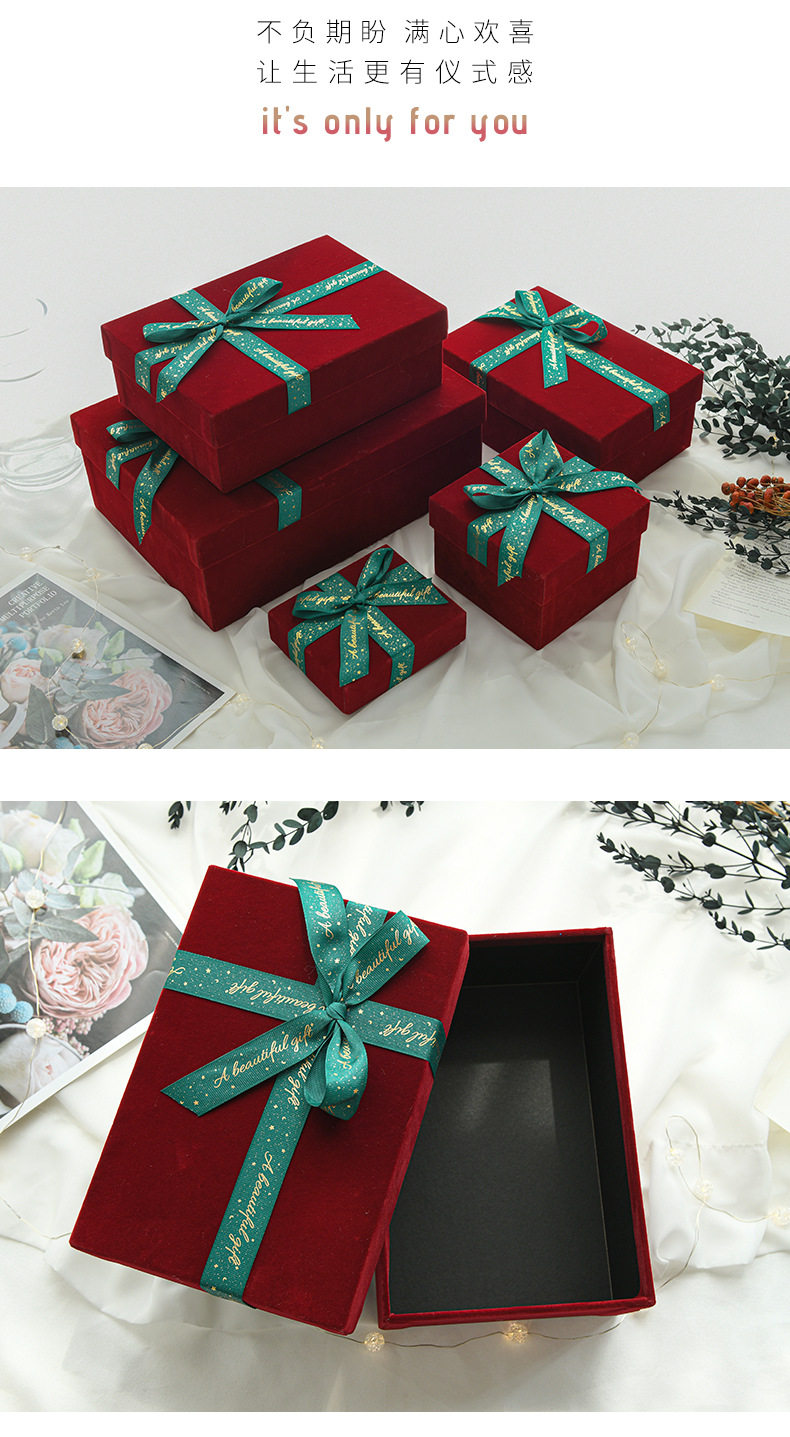 New Year Gift Box Velvet Gift Box Gift Box with Bowknot Rectangular Lid and Base Empty Box Birthday Gift Box Packaging Box