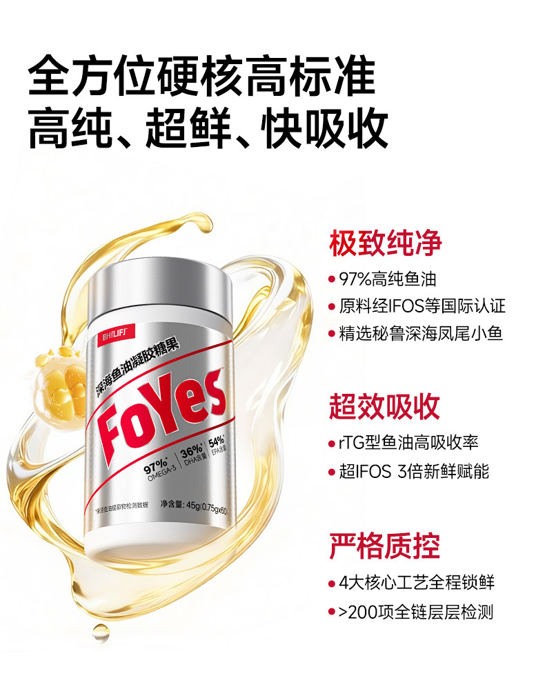 [Stock-Up Pack] Foyes Deep Sea Fish Oil Fitness 97% High Purity Epa Fish Oil Omega3 for Adults