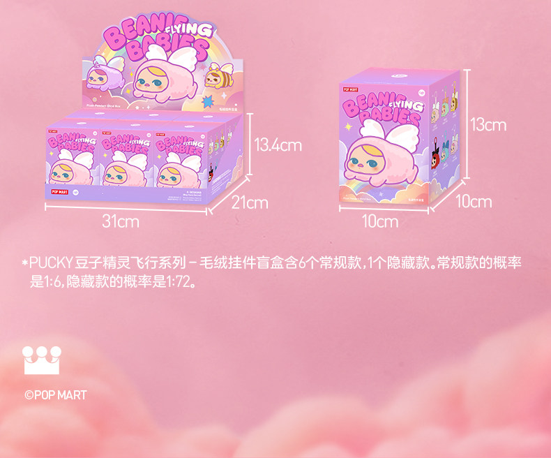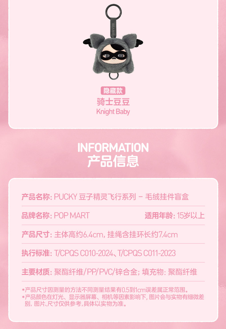 Style Description Brand New, Unopened, Single Random Blind Box.,Kewpie Doudou,Pegasus Doudou,Bee Doudou,Qinglong Doudou,Devil Doudou,Butterfly Bean,Hidden Style-Knight Doudou,6 Basic Models Unboxed but Not Bagged,Full Box - Pucky Bean Elf Flying Series - Plush Keychain Blind Box