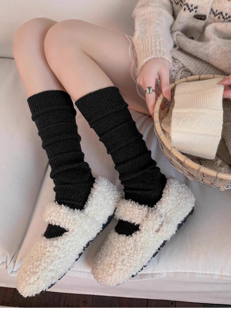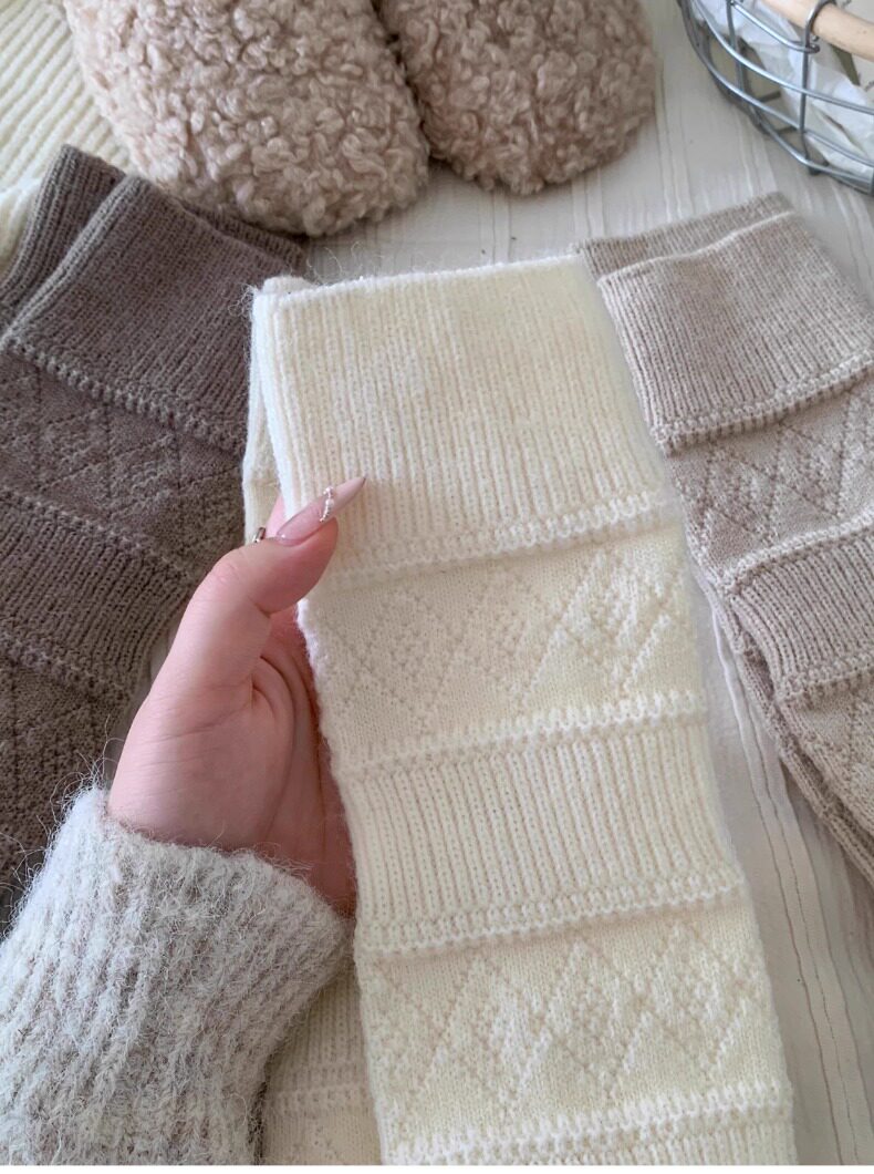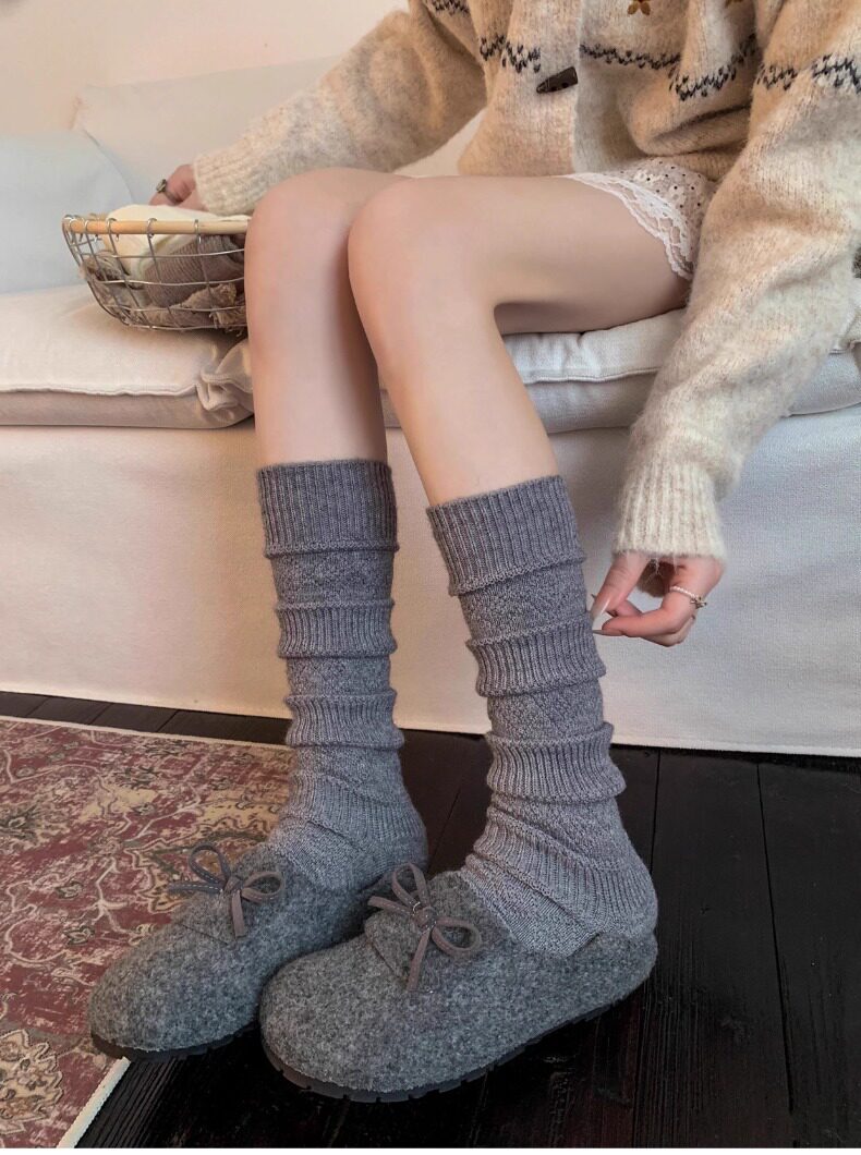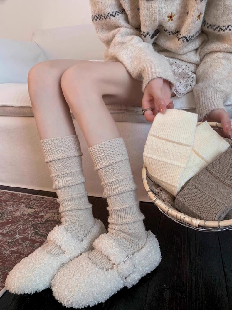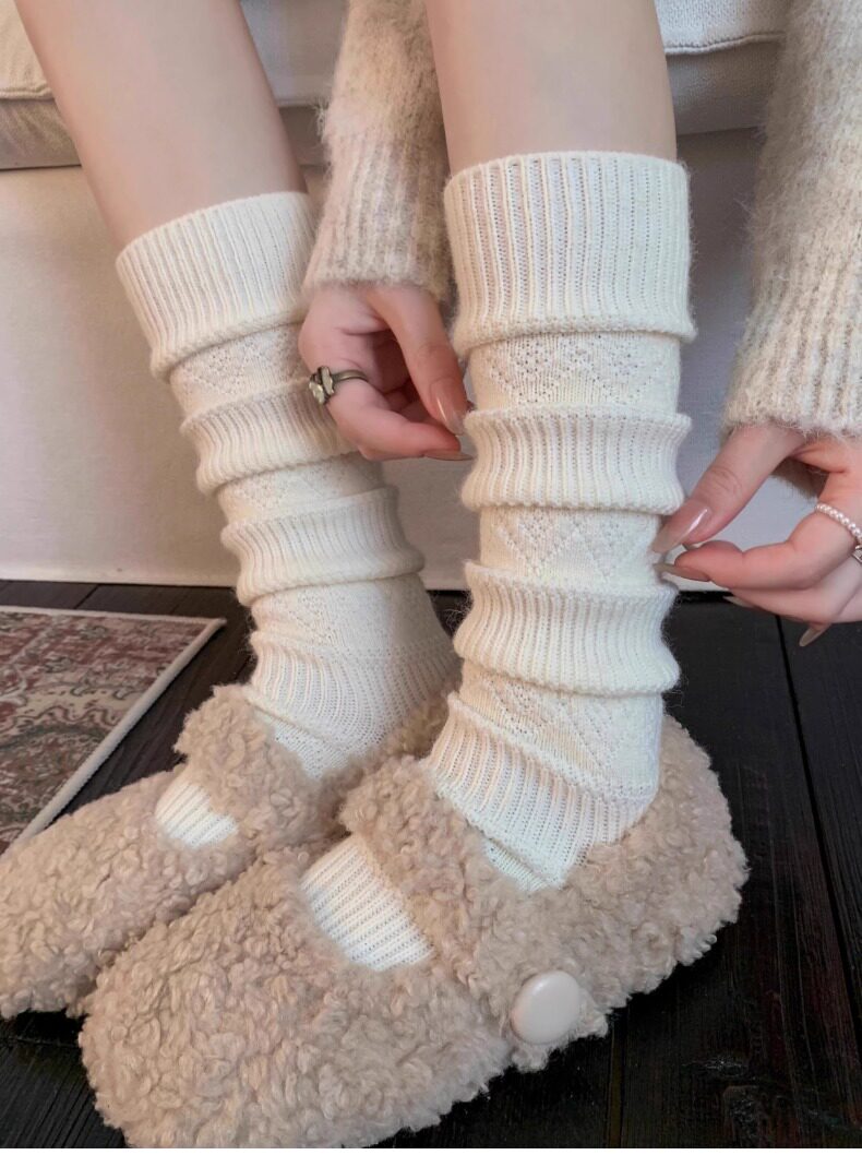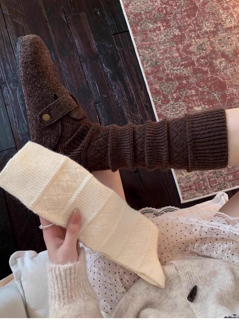 Ethnic Style Diamond Pattern Slouch Socks for Women, Autumn and Winter Warm Knitted Wool Calf Socks, Thickened for Warmth, Slimming Long Socks