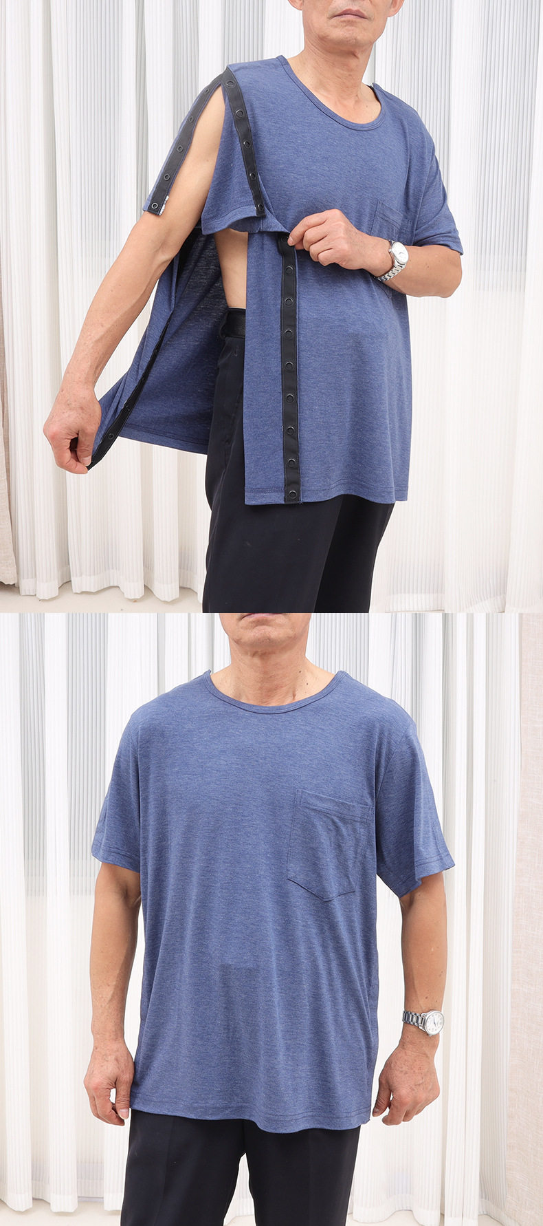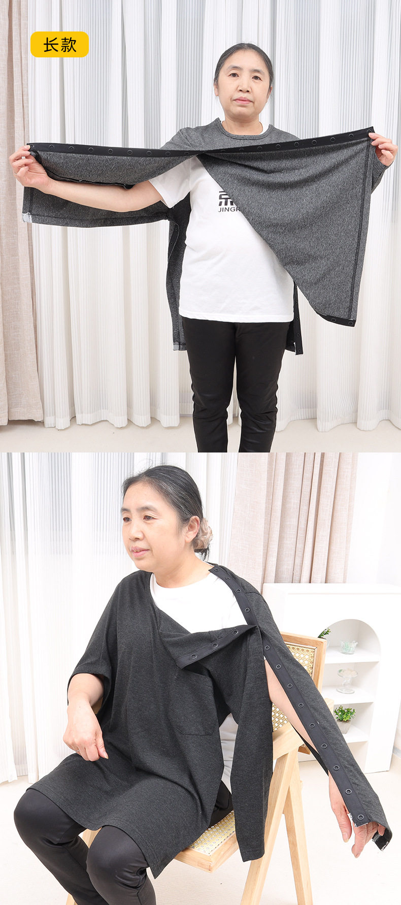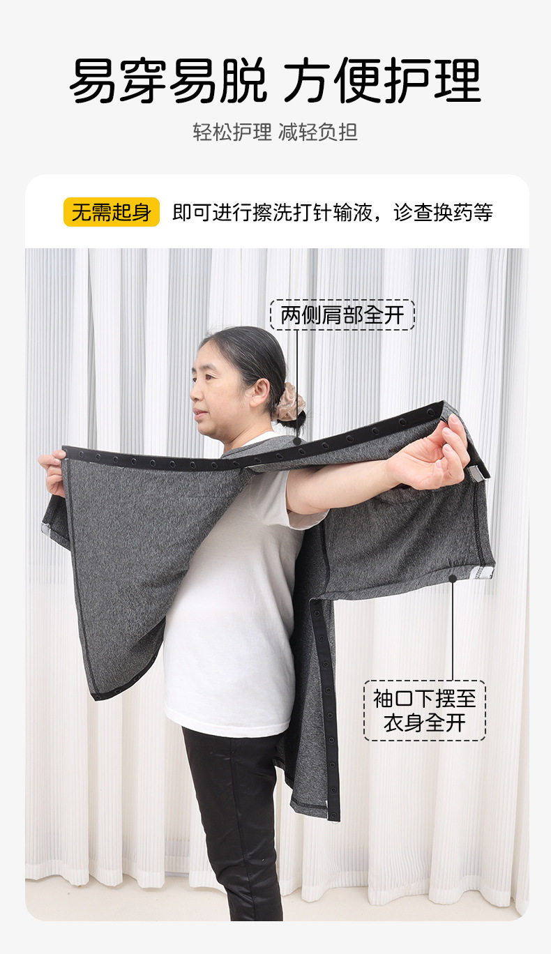 Easy-To-Wear Nursing Top T-Shirt for Arm Injuries, Broken Arms, or When Wearing a Cast, Loose-Fitting Long or Short Sleeves