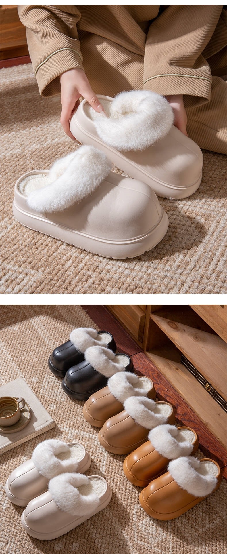 Waterproof Cotton Slippers for Women, Autumn and Winter, with Covered Heel, Thick Sole, Non-Slip, Detachable, Thickened, Warm Cotton Slippers for Women, Suitable for Outdoor Wear