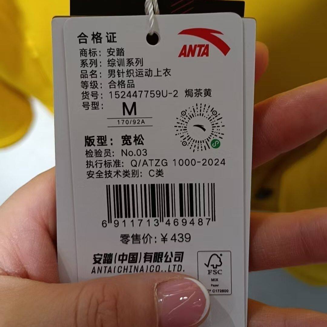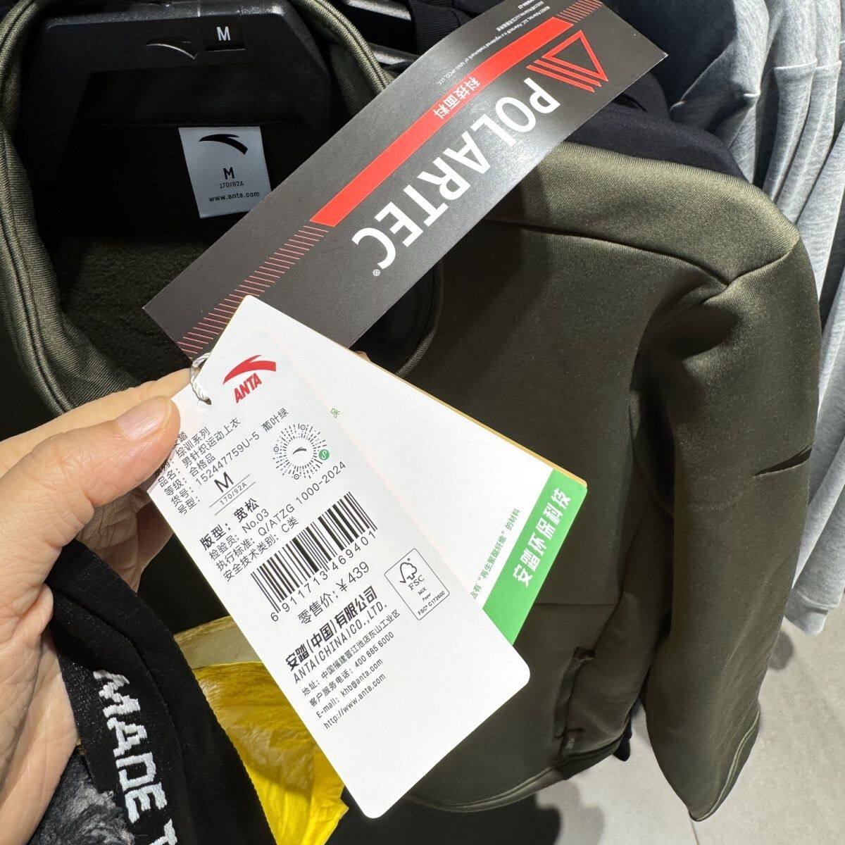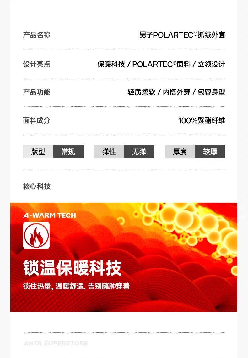 Anta Fleece Jacket Men's Autumn and Winter Outdoor Polartec Fleece Stand-Up Collar Work Clothing Sports Top 152447759U