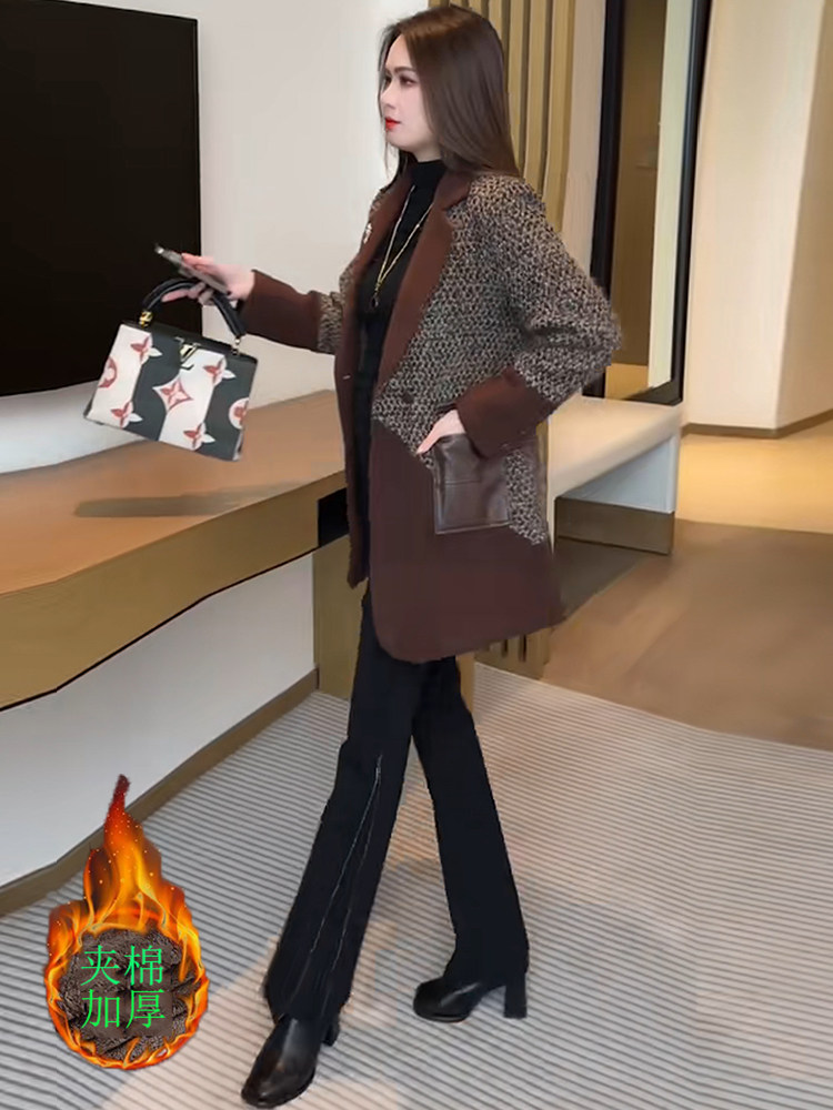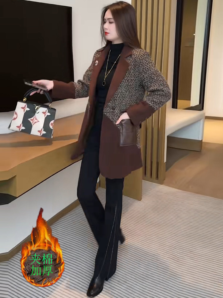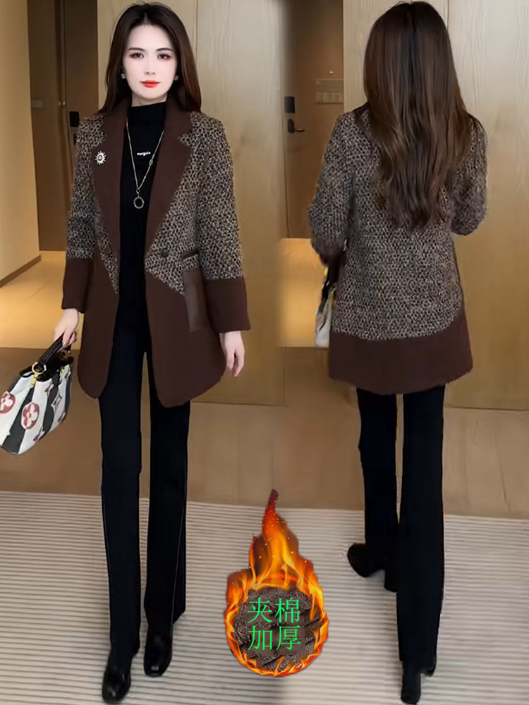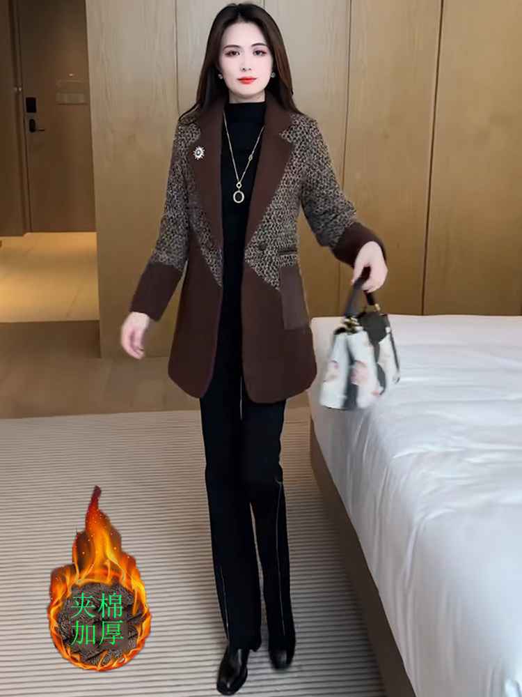 Sort by color Brown color with cotton to keep warm,Brown + black bootcut pants suit