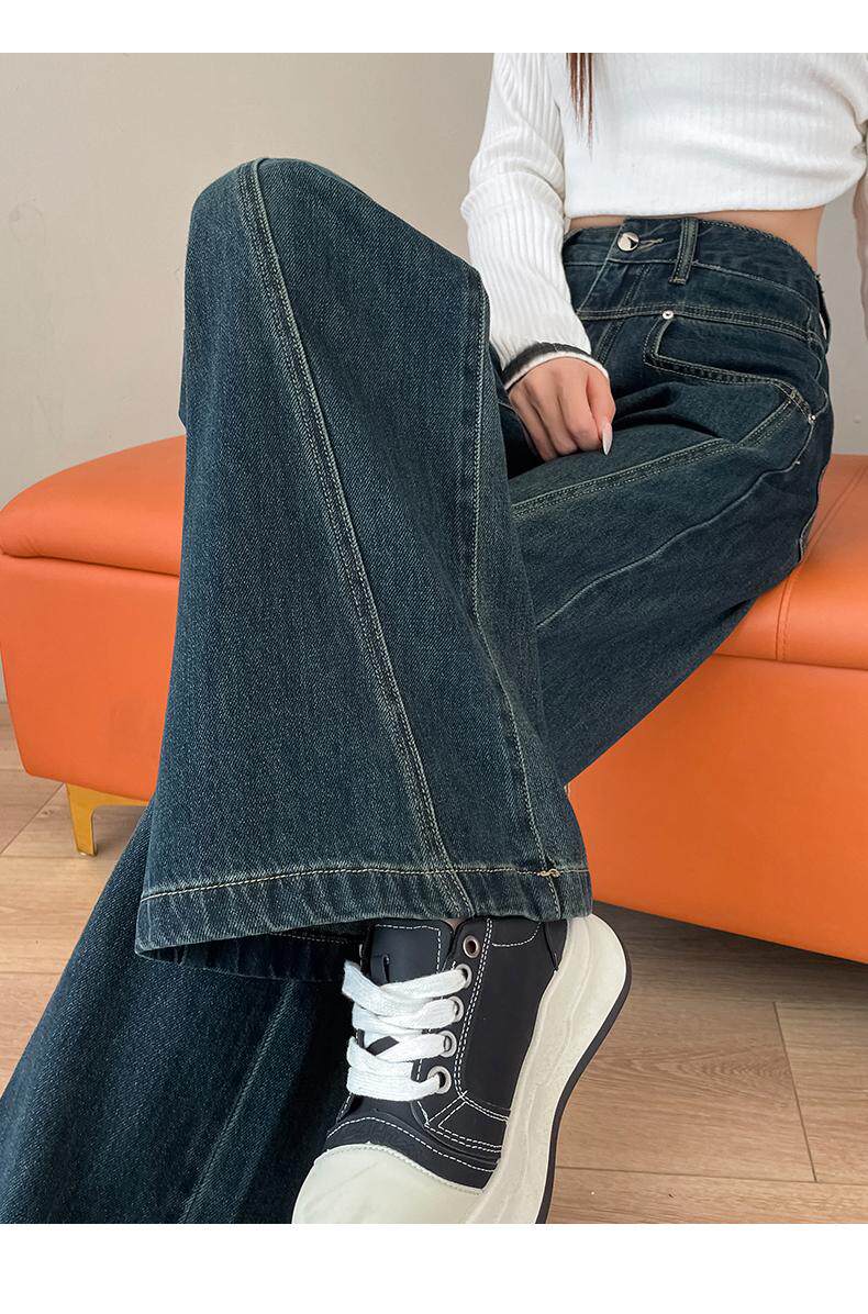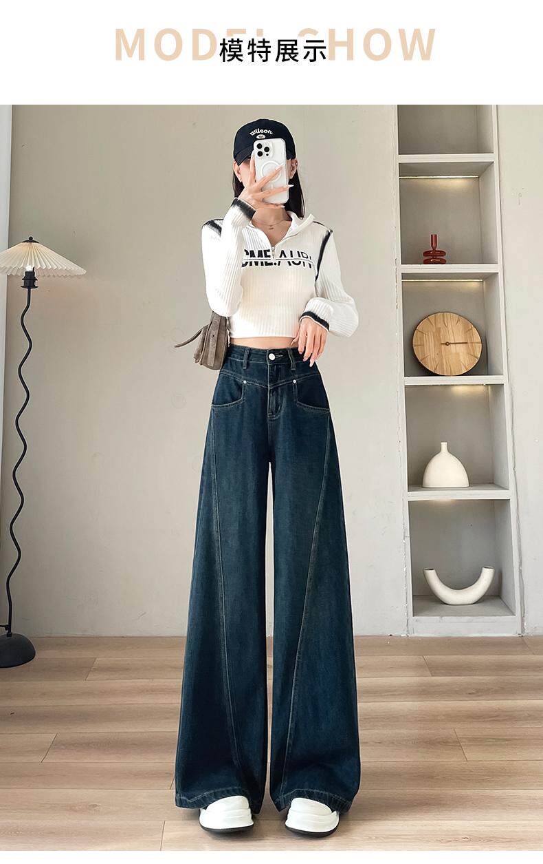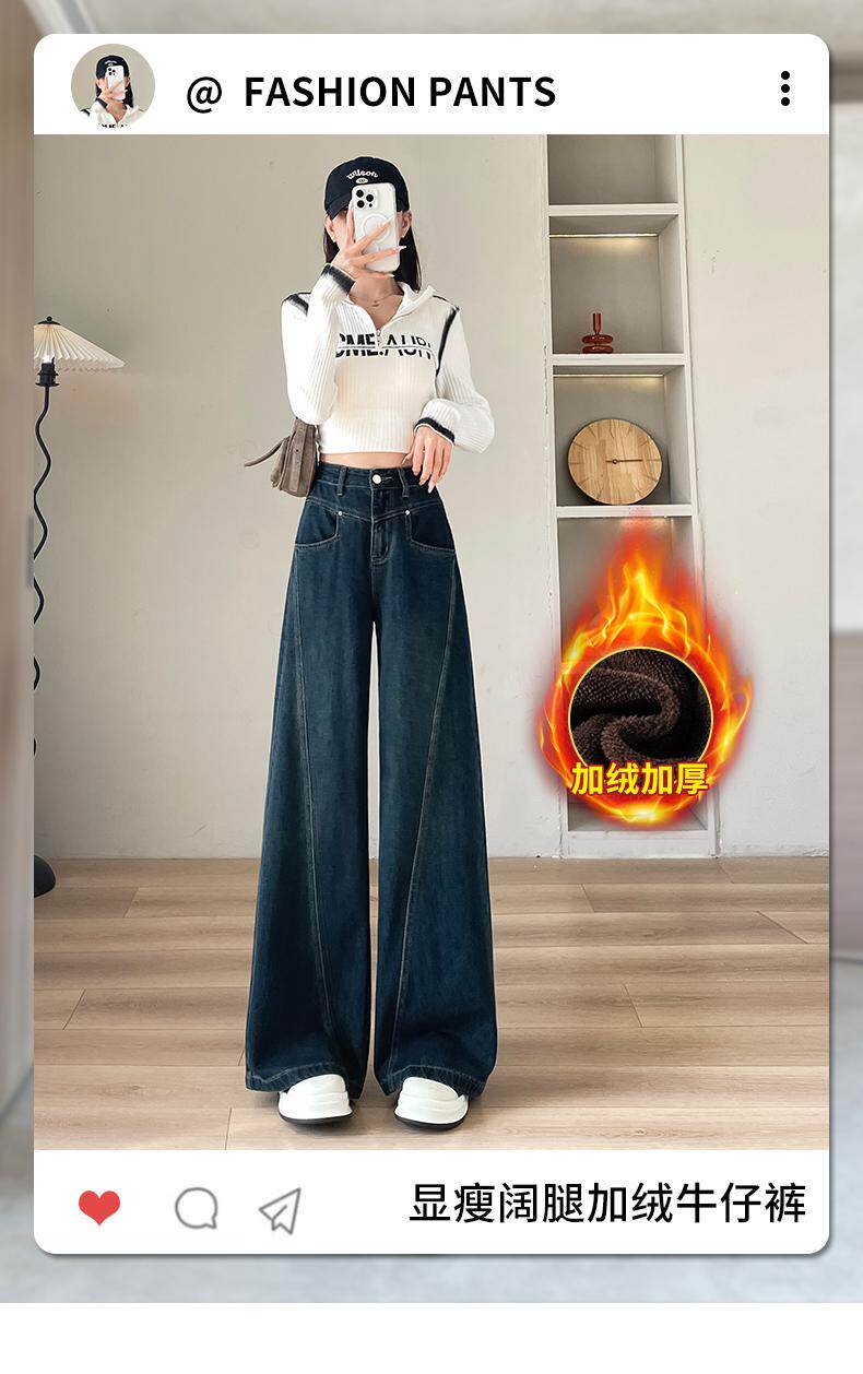 Counter velvet jeans for women 2025 autumn and winter new fashion high waist slimming thickened wide leg pants versatile warm trend