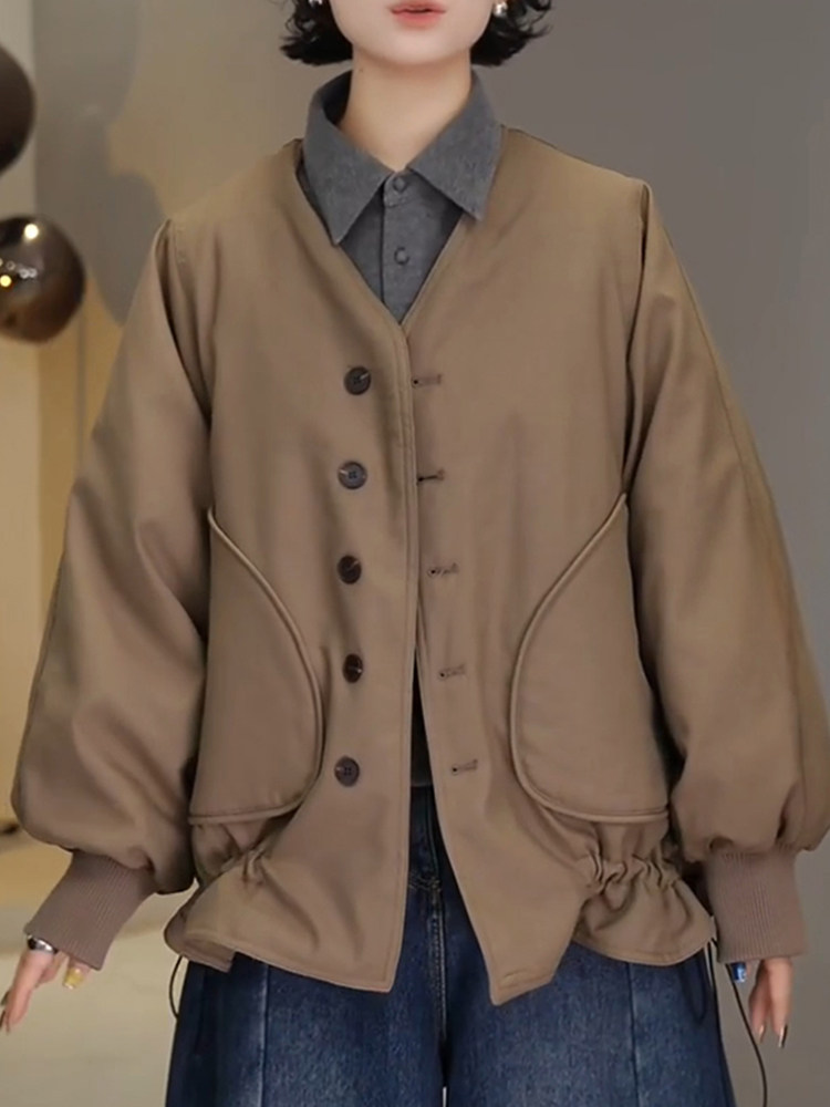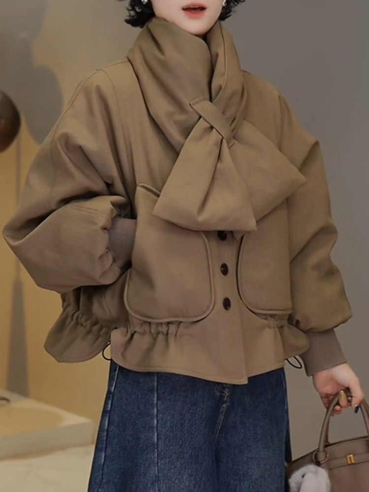 Retro knotted design cotton coat and scarf 2025 winter style, unique style, relaxed winter fashion sense