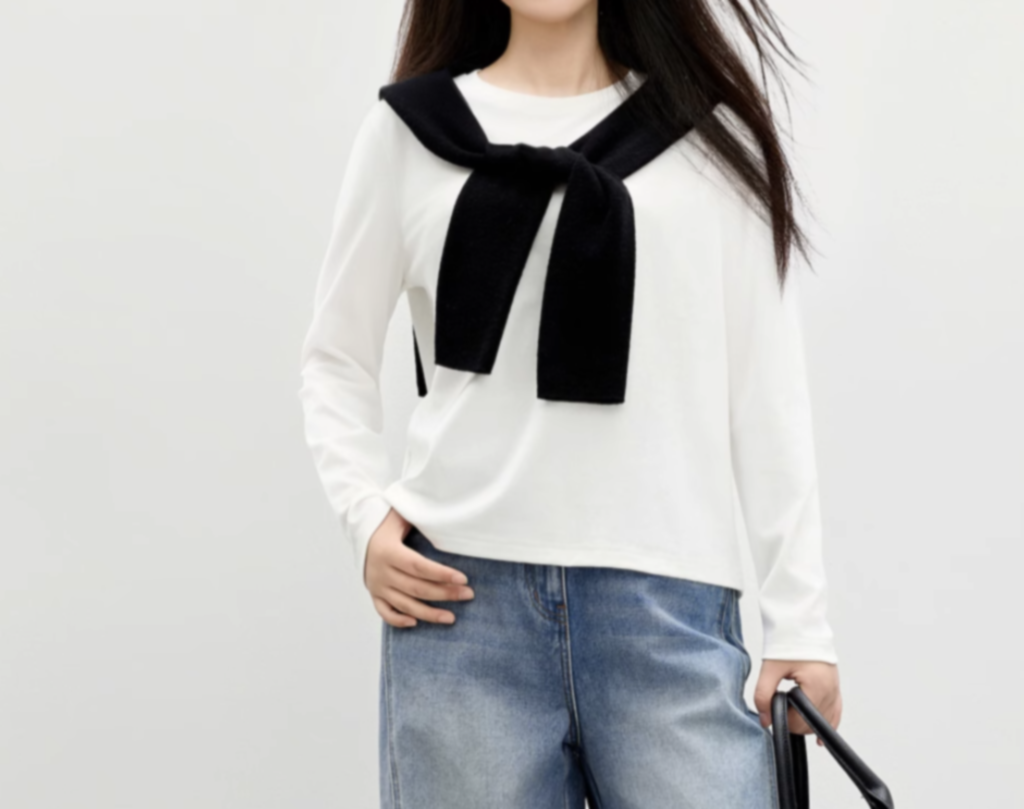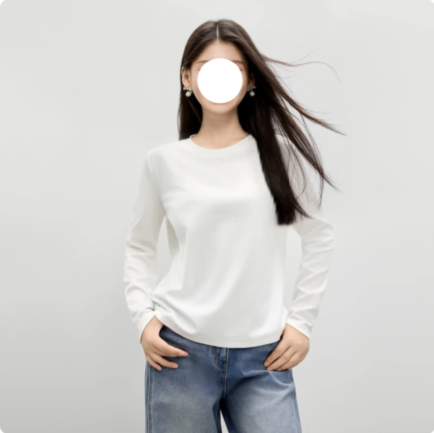 Round Neck White Long-Sleeved T-Shirt for Women 2025 Autumn and Winter New Style Simple Work Clothing Versatile Fashionable Top