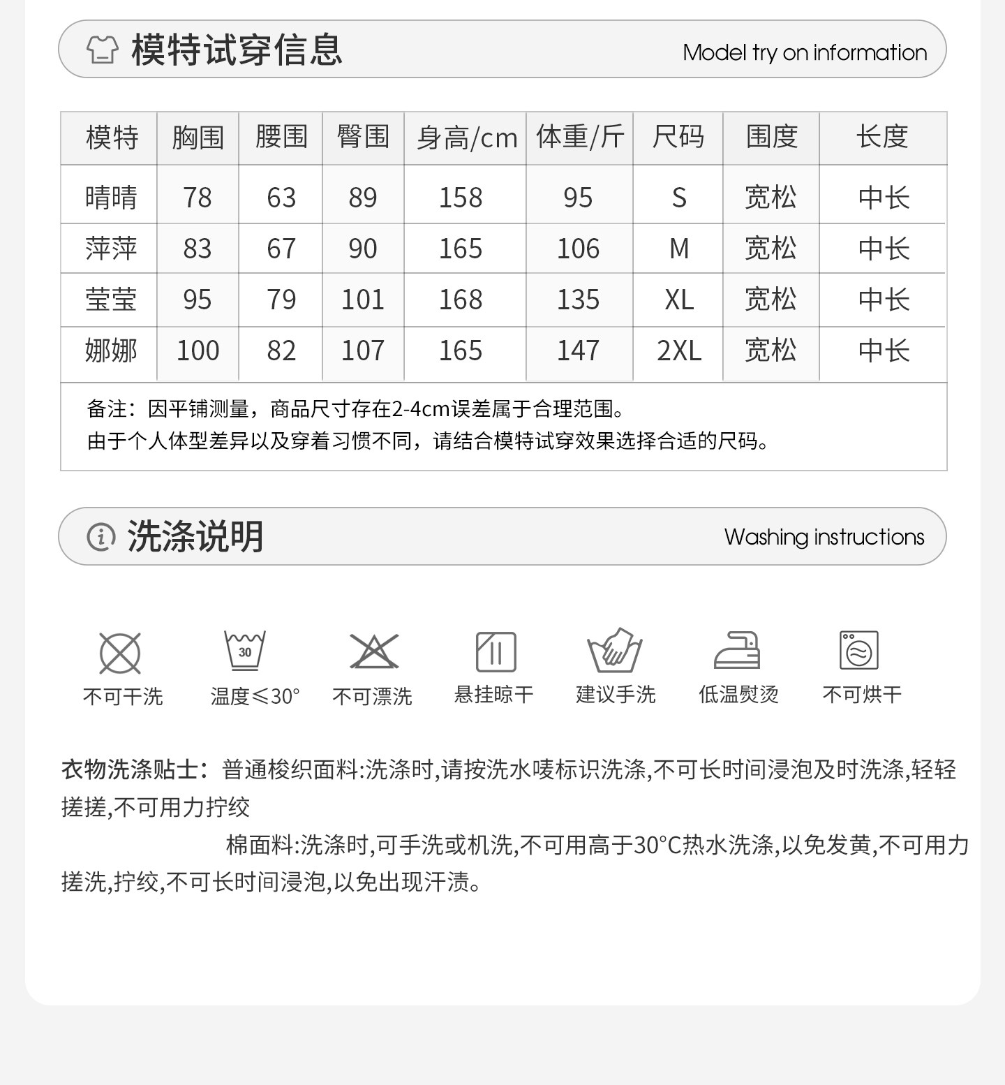 China (cm) 160-165/84-86 165-170 / 88-90 167-172 / 92-96 168-173 / 98-102 170-176 / 106-110