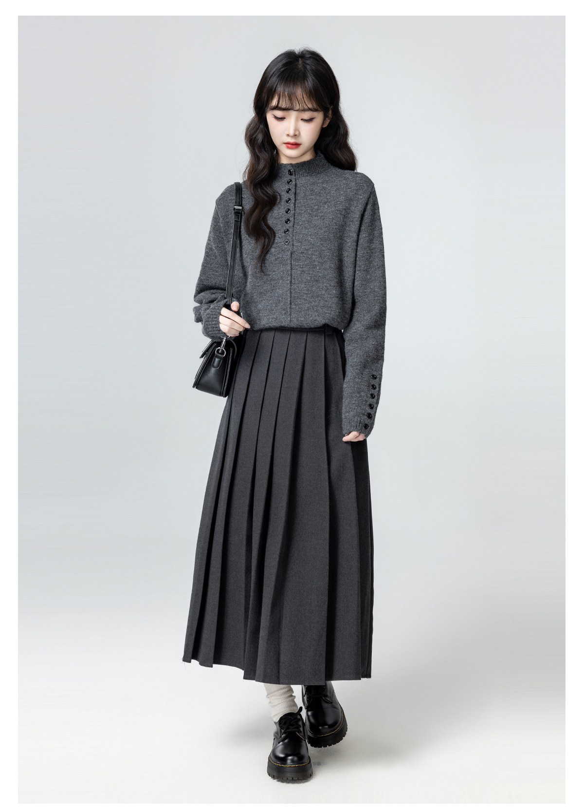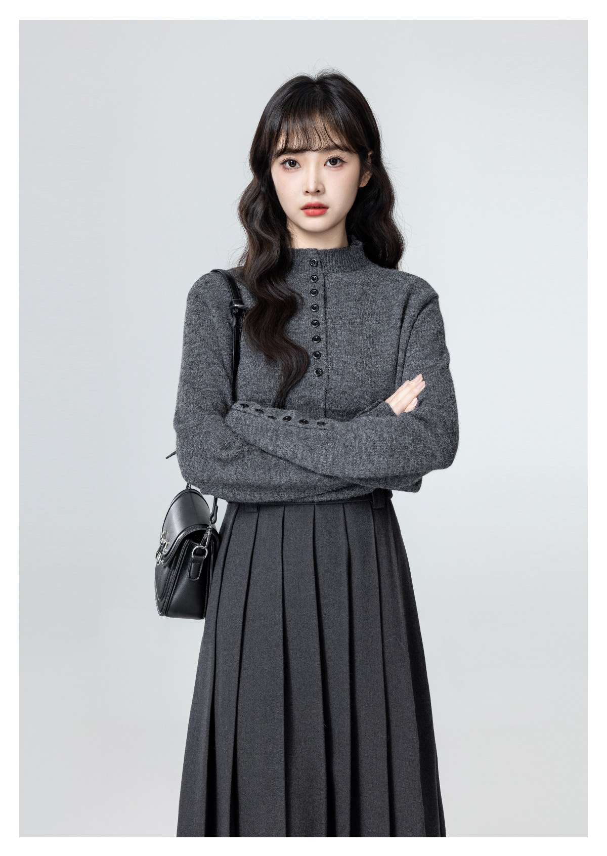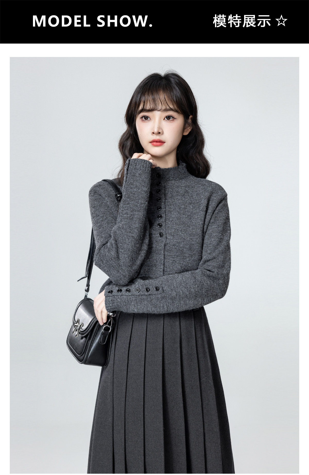 Dark gray half turtleneck sweater for women autumn and winter 2026 winter new loose warm inner knitted bottoming shirt top