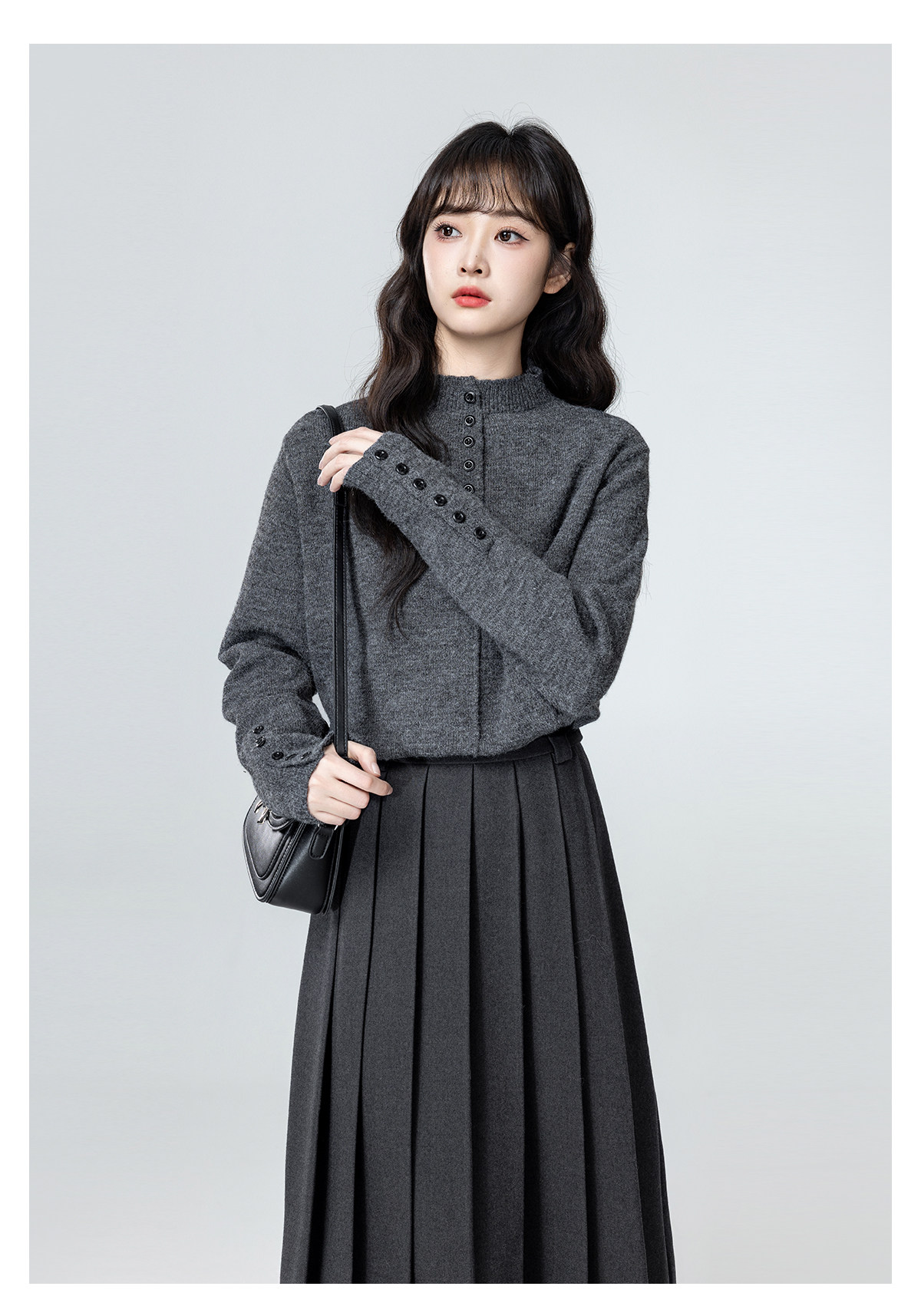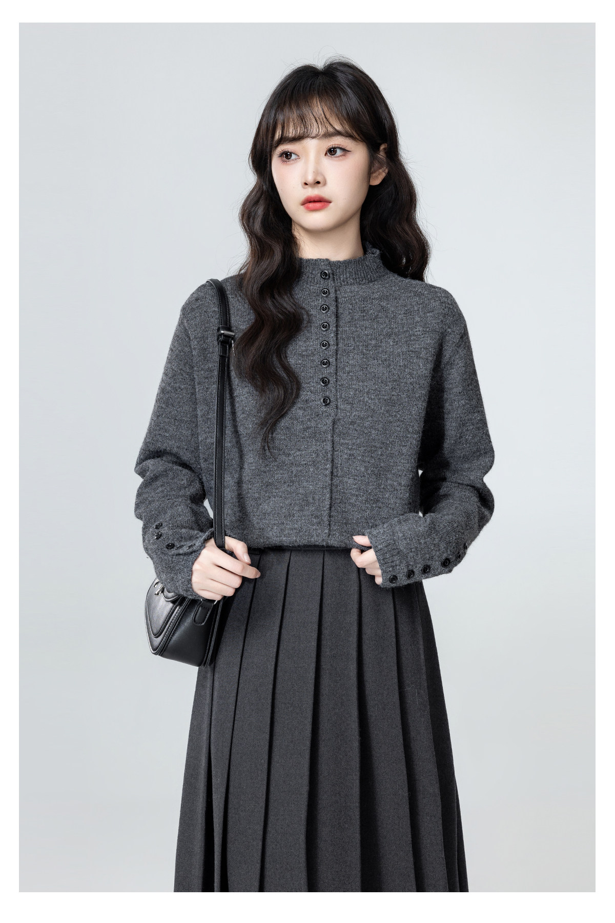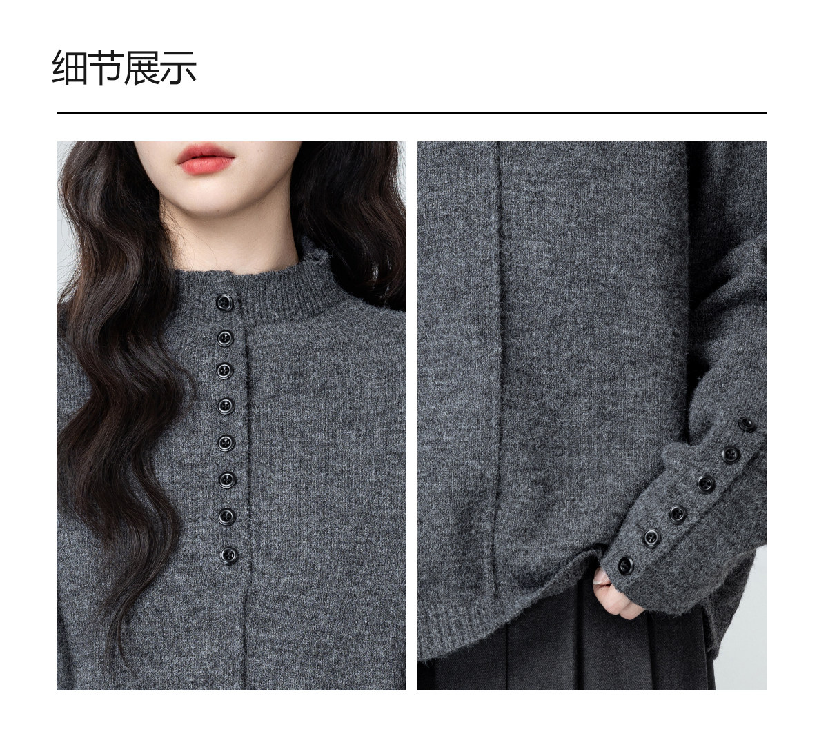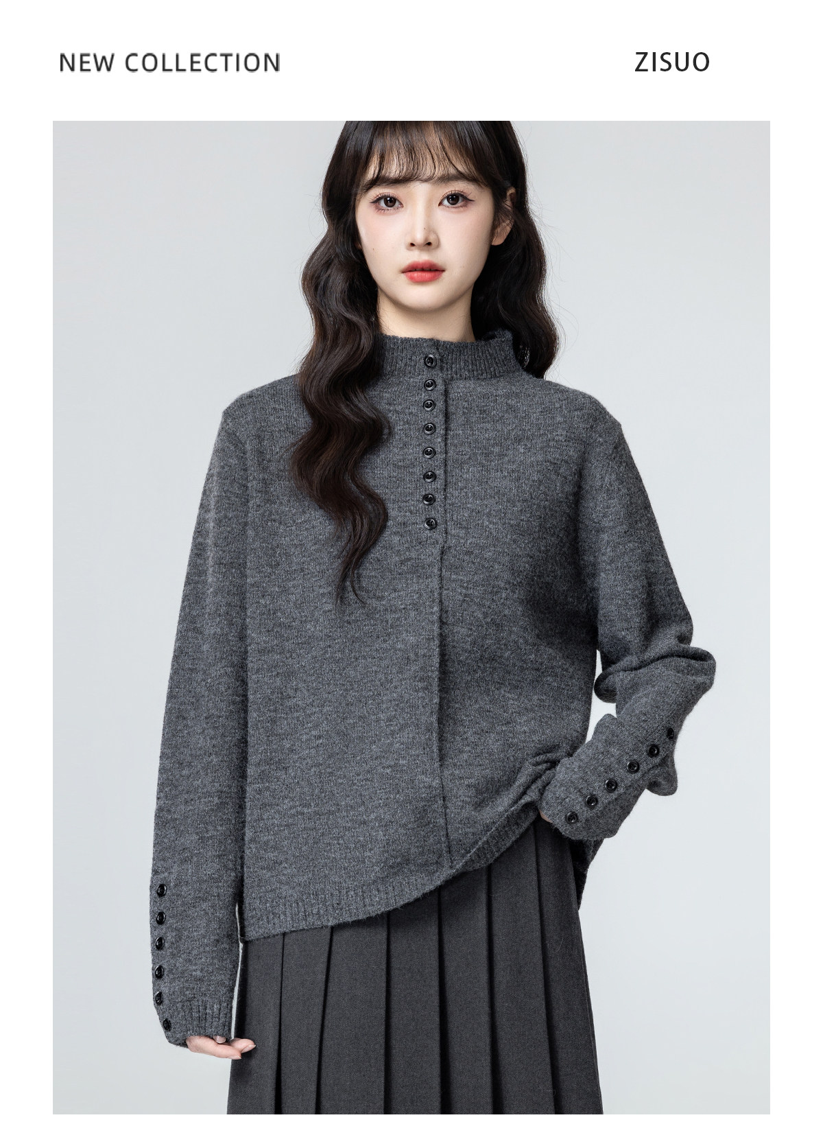 Dark gray half turtleneck sweater for women autumn and winter 2026 winter new loose warm inner knitted bottoming shirt top
