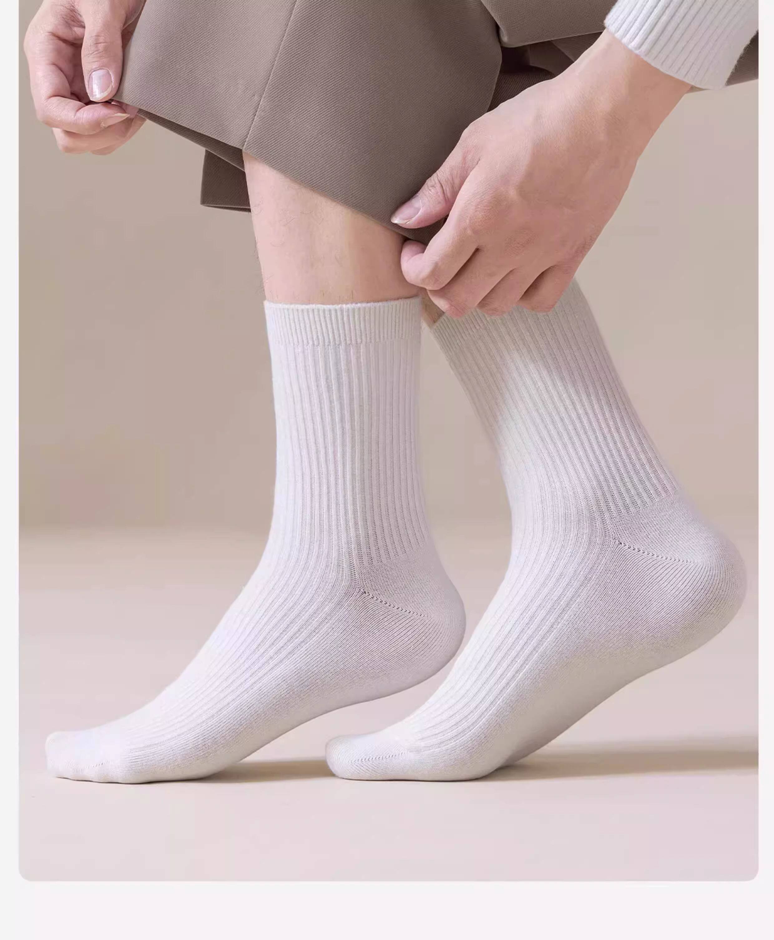 High-Quality Pure Cotton Socks for Men, Autumn and Winter Mid-Calf Socks, Antibacterial and Odor-Resistant, Black and White, Women's Sports Long Socks, Thick